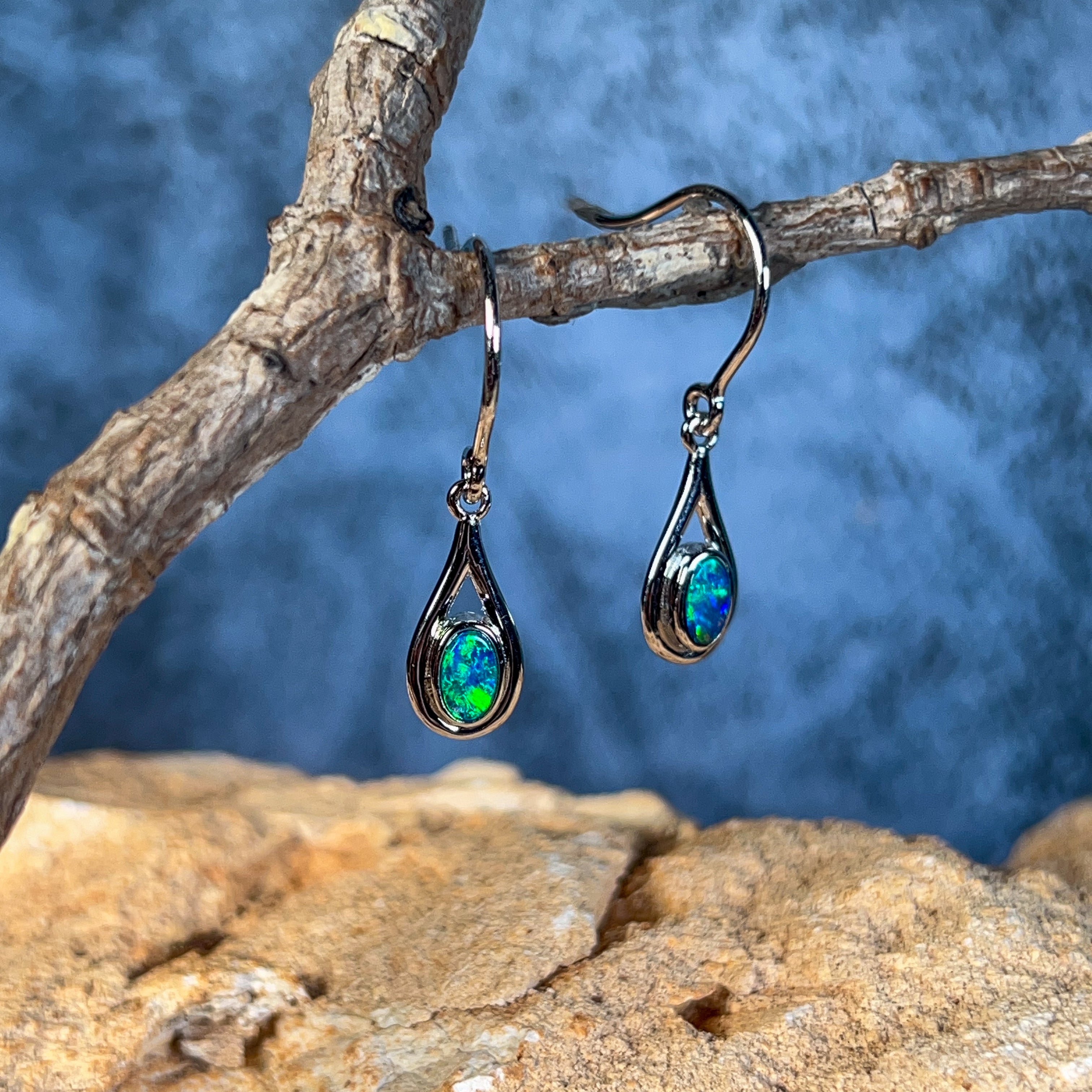 Sterling Silver 10x8mm Oval Opal triplets dangling earrings