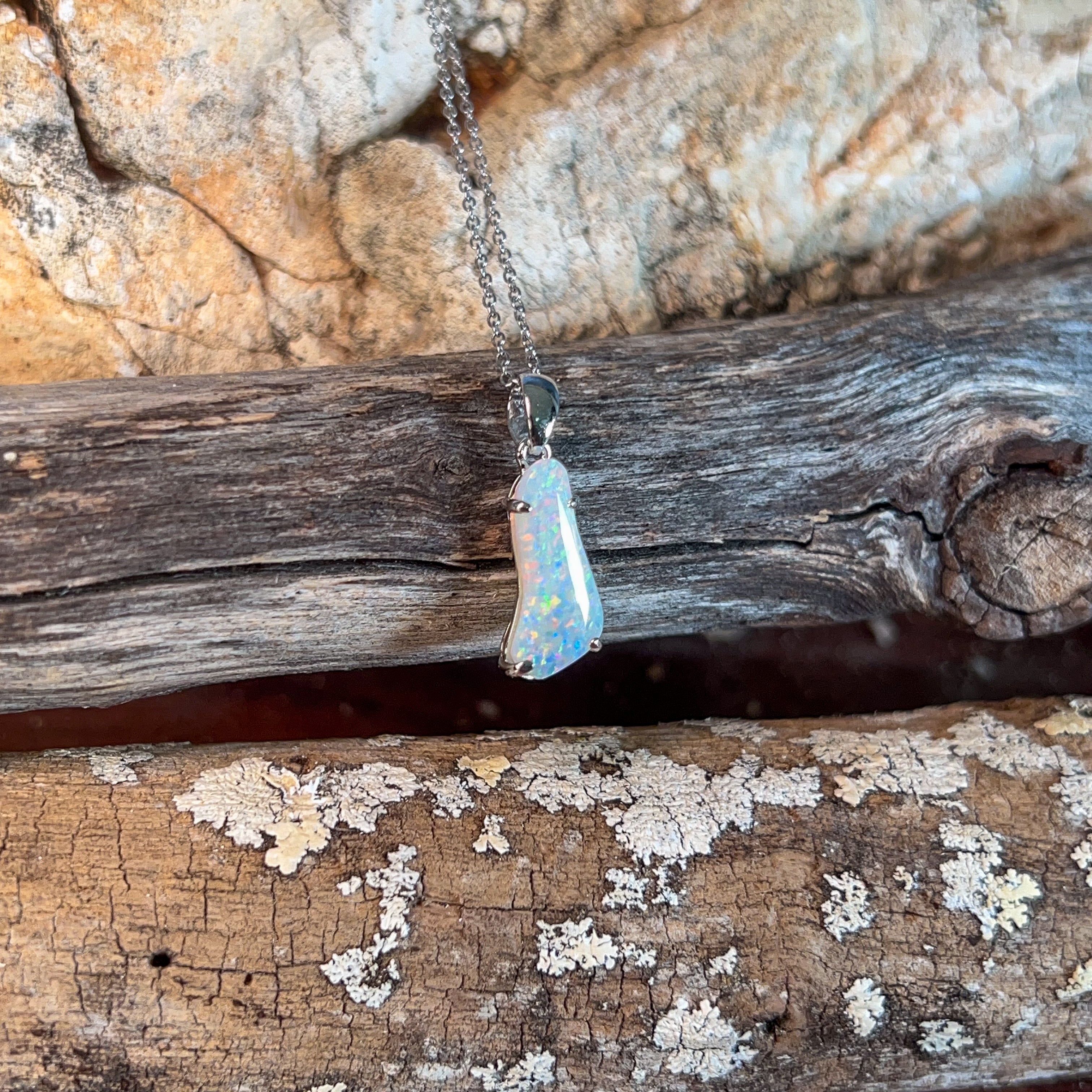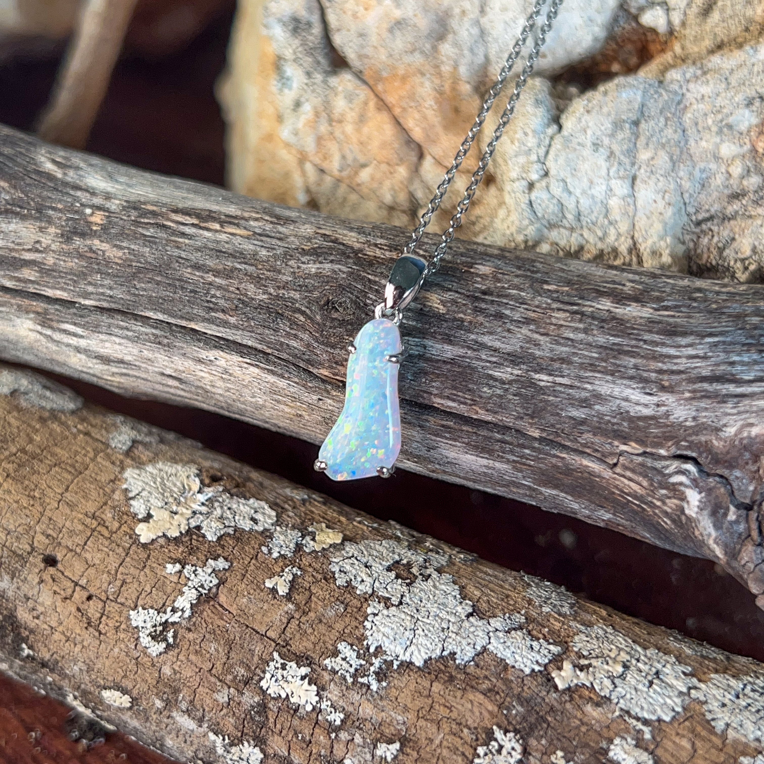 Sterling Silver White Opal 3.25ct freeform bezel set pendant