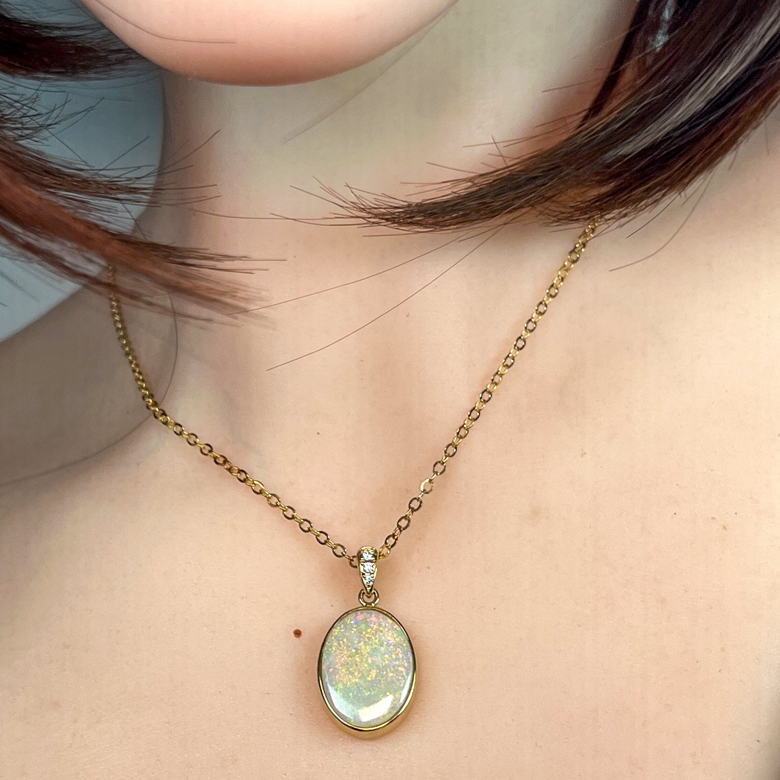 14kt Yellow Gold Oval 4.5ct White Opal pendant