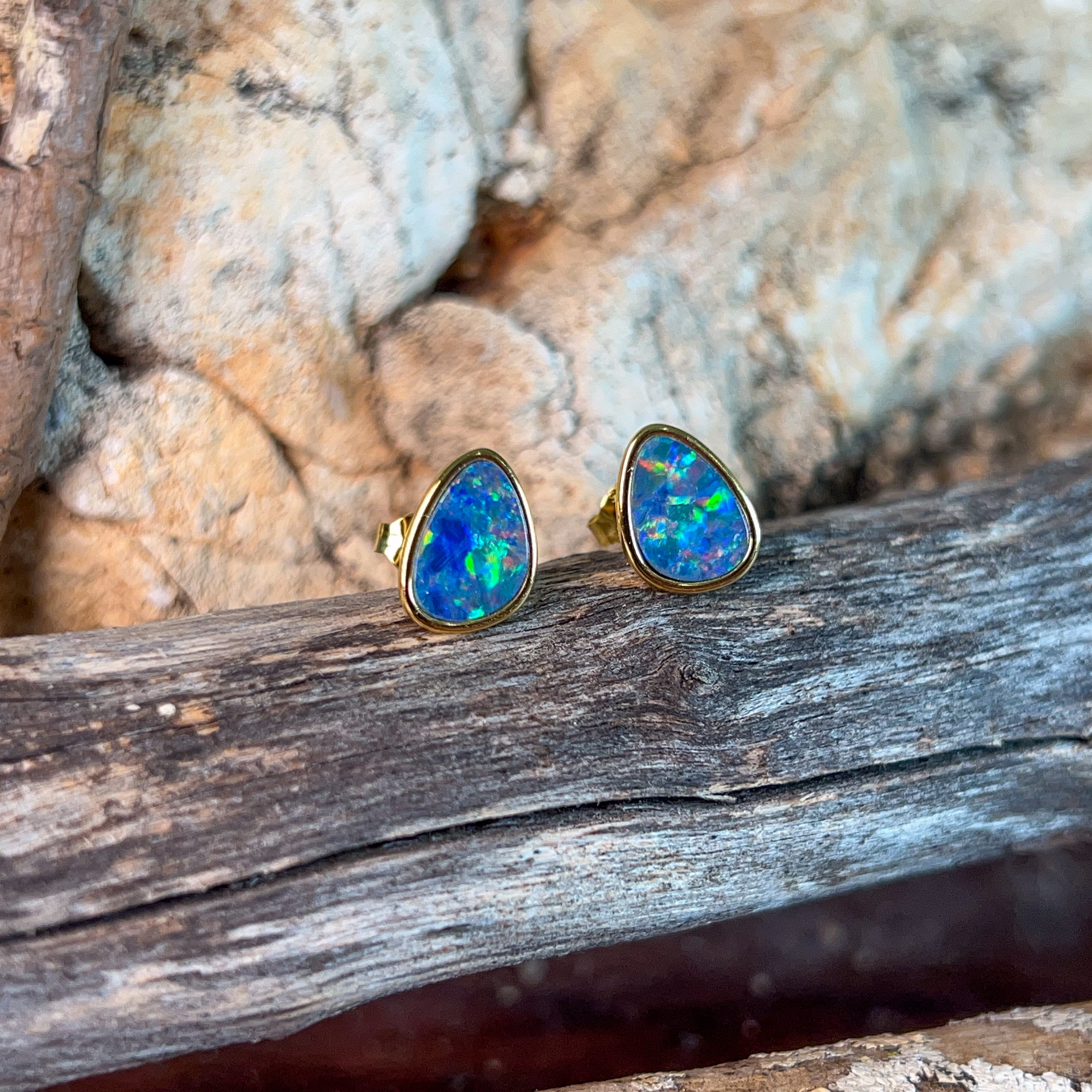 Elevate your everyday elegance with these stunning opal doublet studs, where precious opal meets lustrous gold-plated silver. The 11x8mm stones showcase the mesmerizing play of colour that makes opals truly captivating, while the secure stud setting keeps them perfectly in place. Ideal for adding a touch of sophistication to any occasion, these pieces combine timeless appeal with modern minimalism. A versatile investment that transforms both casual and formal looks with effortless grace.