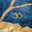 Elevate your style with these Gold Plated Silver dangling Opal cluster earrings, featuring a modern bezel setting that securely frames each vibrant opal. Measuring 8x6mm, their cluster design creates a captivating shimmer, while the hook style offers comfortable, effortless wear. Perfect for adding a touch of elegance to any outfit, these earrings combine contemporary design with timeless charm.