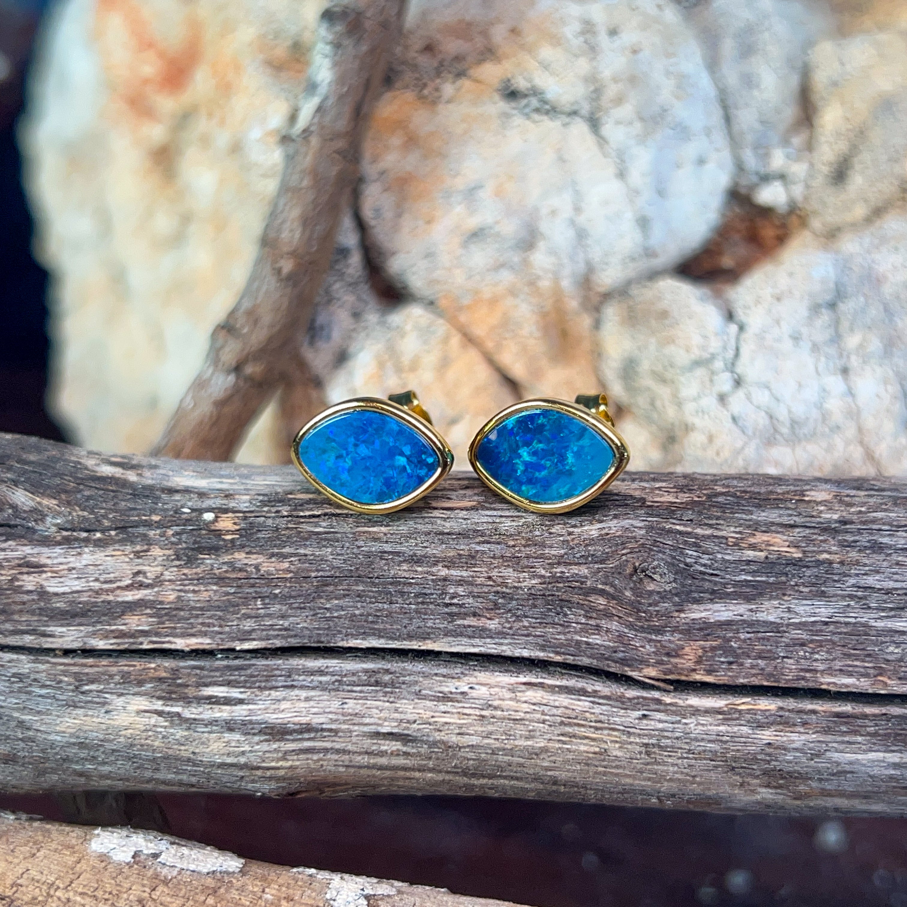 Dive into elegance with these captivating opal doublet studs, where ocean-inspired hues of blue and green dance across each 10x7mm stone. Crafted with a silver base and luxurious gold plating, these studs offer timeless sophistication at an accessible price point. Perfect for everyday wear or special occasions, the mesmerizing play-of-colour in each opal creates a unique statement that complements any complexion. Lightweight and comfortable, these studs deliver premium gemstone beauty without the premium price tag. Discover why opal jewellery remains a treasured choice for those seeking natural wonder and understated glamour.