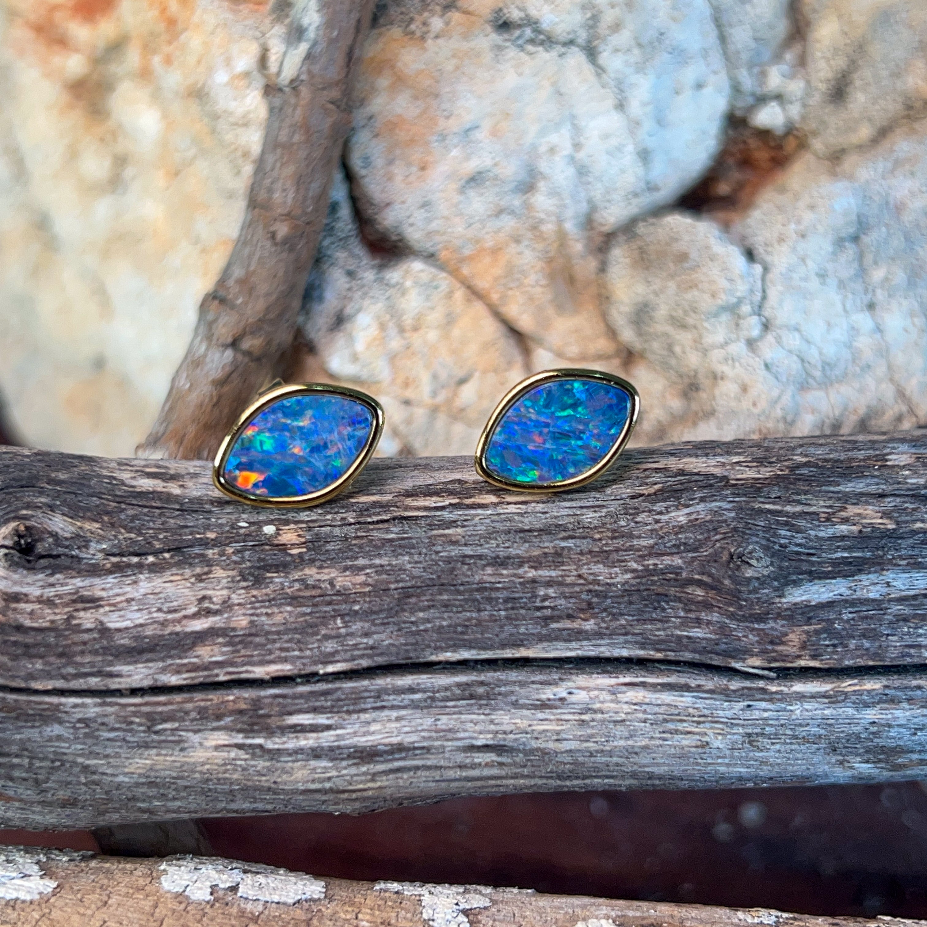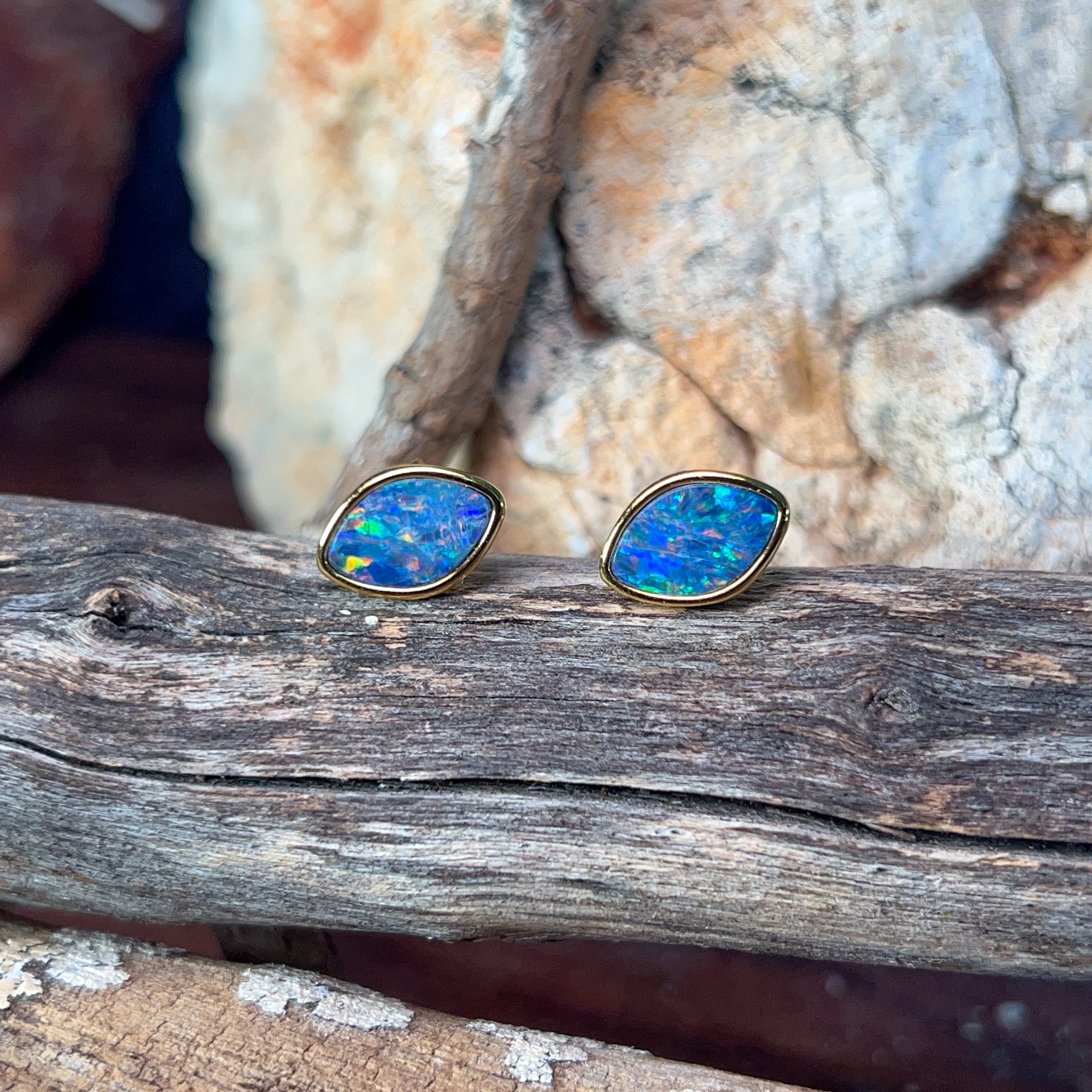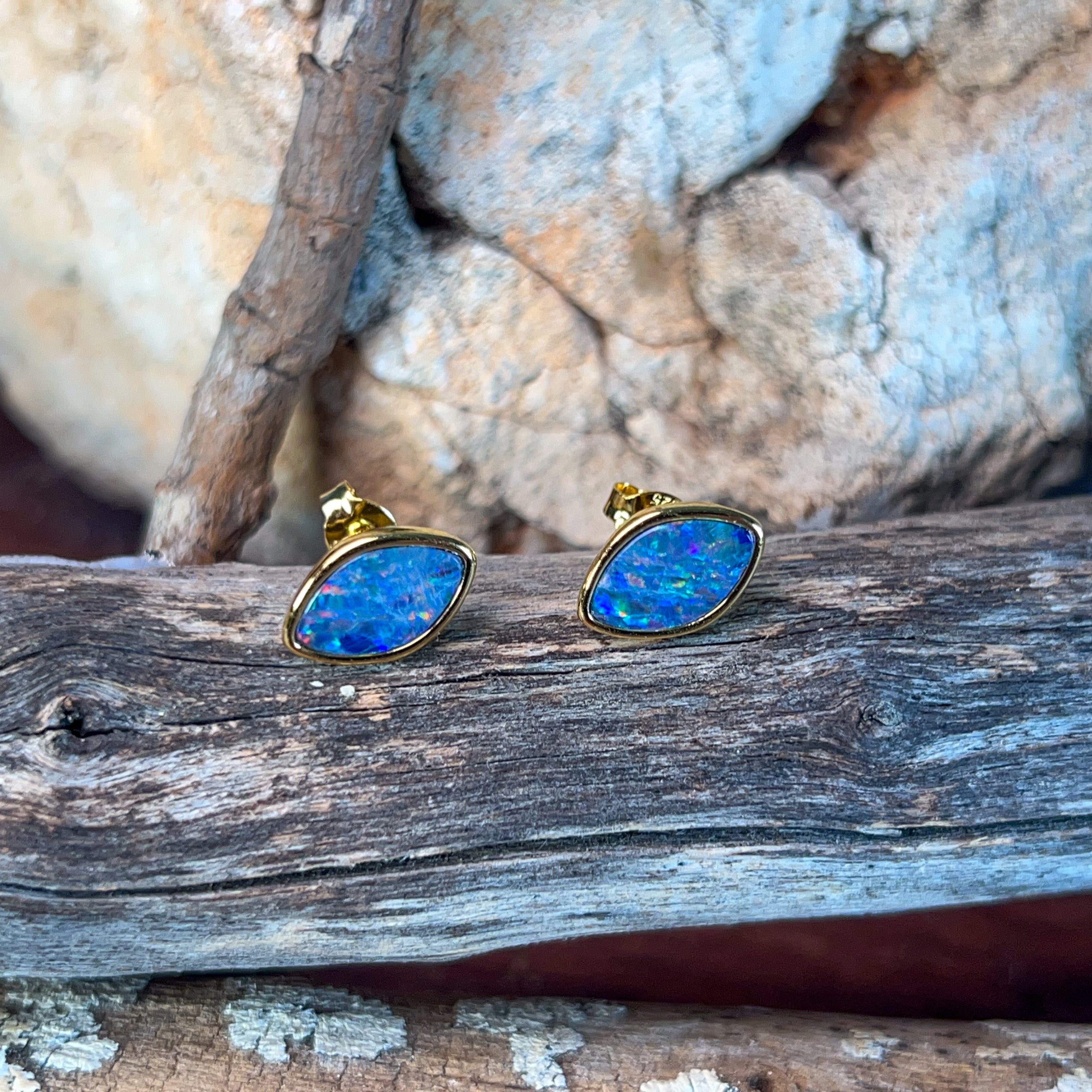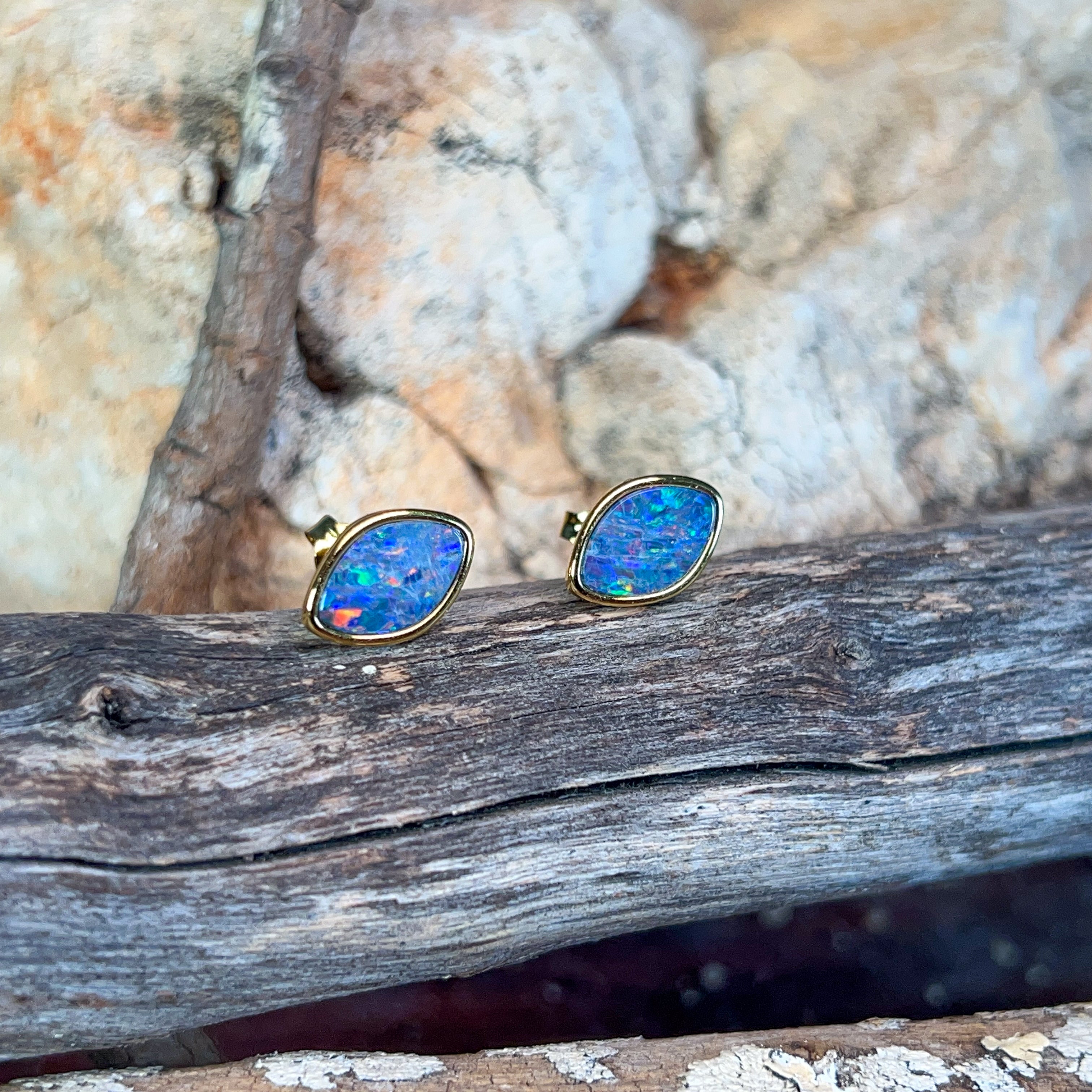 Elevate your everyday elegance with these stunning gold plated silver opal doublet earrings. Featuring captivating 12x9mm stones that showcase the mesmerizing play of colour opals are renowned for, these pieces strike the perfect balance between sophistication and wearability. The warm gold plating complements the opal's natural brilliance, while the secure silver setting ensures lasting durability. Ideal for those seeking genuine gemstone jewellery that transitions seamlessly from day to night, these earrings make a refined statement without overwhelming the senses.