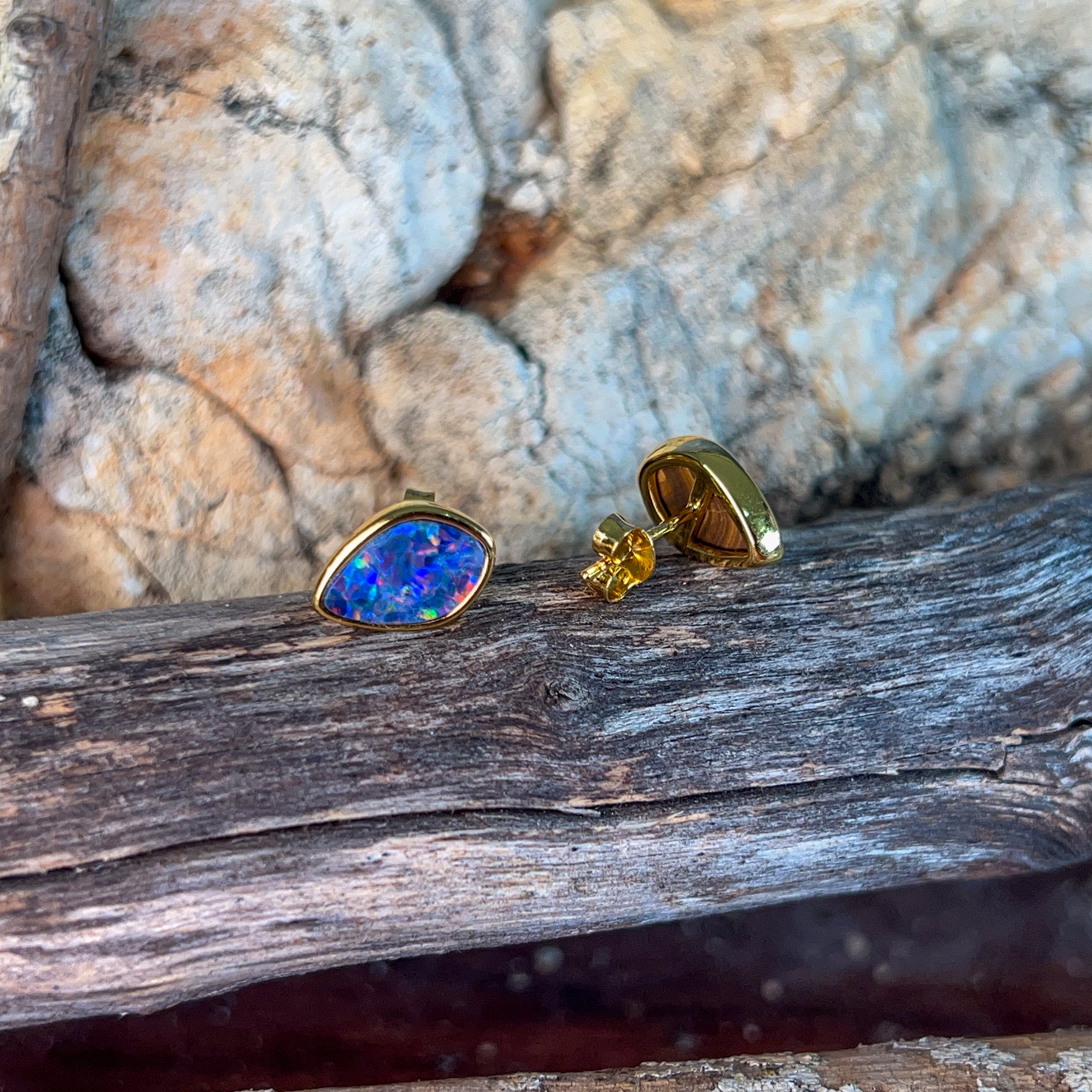 Gold Plated Sterling silver 11x8mm Opal doublet studs
