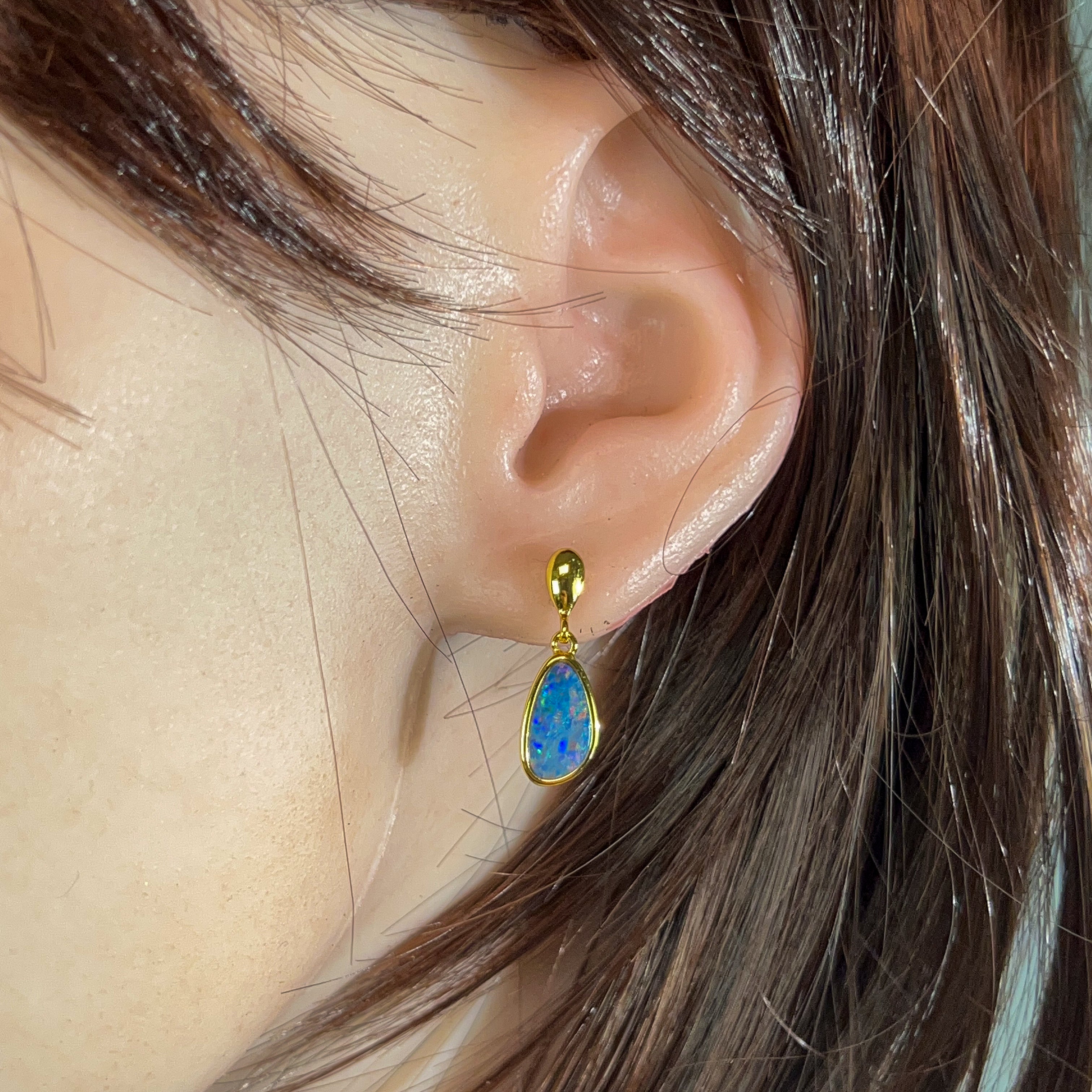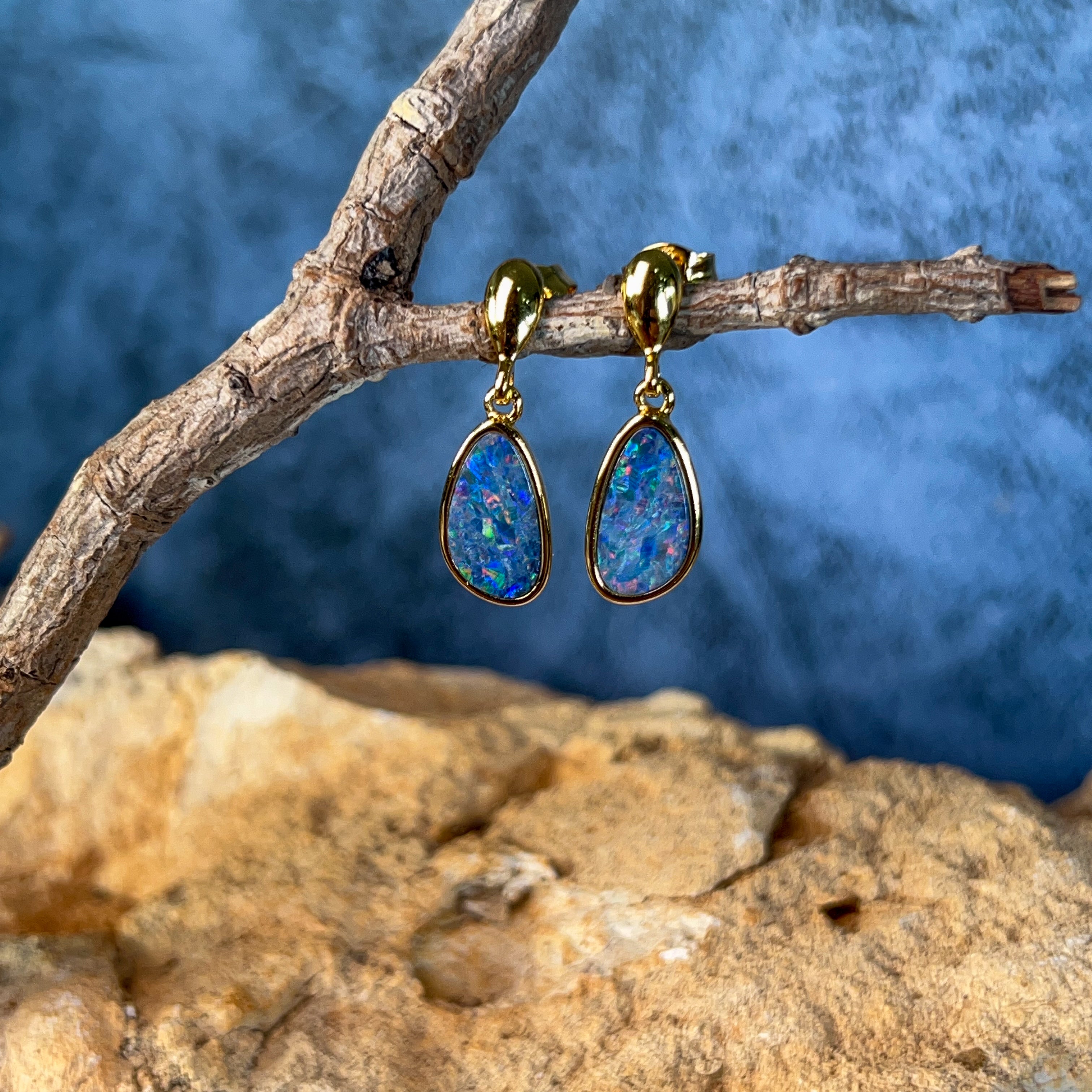 Elevate your everyday elegance with these stunning Gold Plated Sterling Silver Doublet Opal studs. Featuring vibrant 12x7mm opals set in premium sterling silver with luxurious gold plating, these earrings deliver timeless sophistication with a contemporary edge. The doublet construction showcases the mesmerizing play-of-colour opals are renowned for, while the secure stud design ensures comfortable all-day wear. Perfect for adding a touch of refined glamour to any occasion, from casual outings to special events. A versatile investment piece that celebrates the natural beauty of Australian opals.