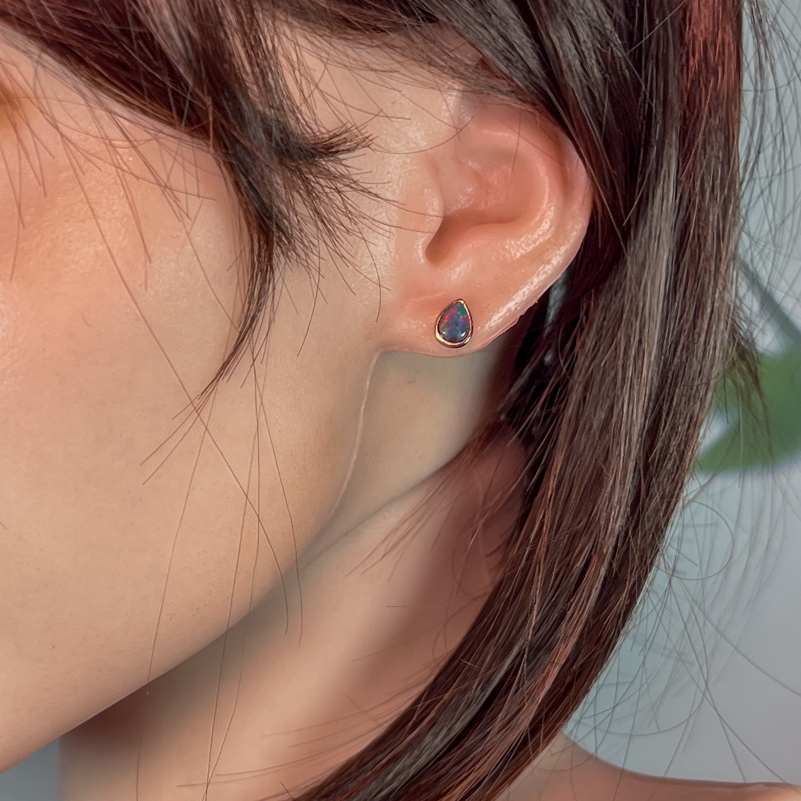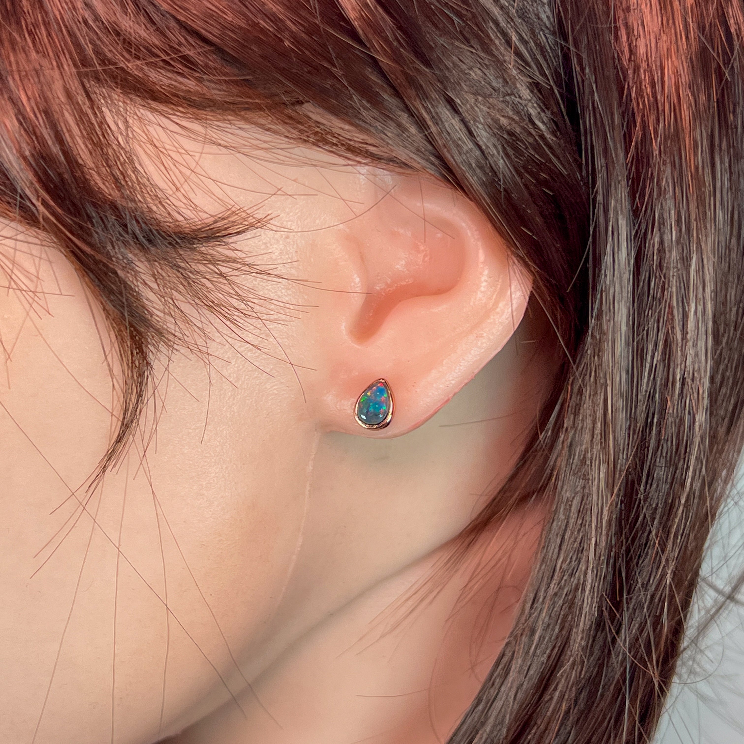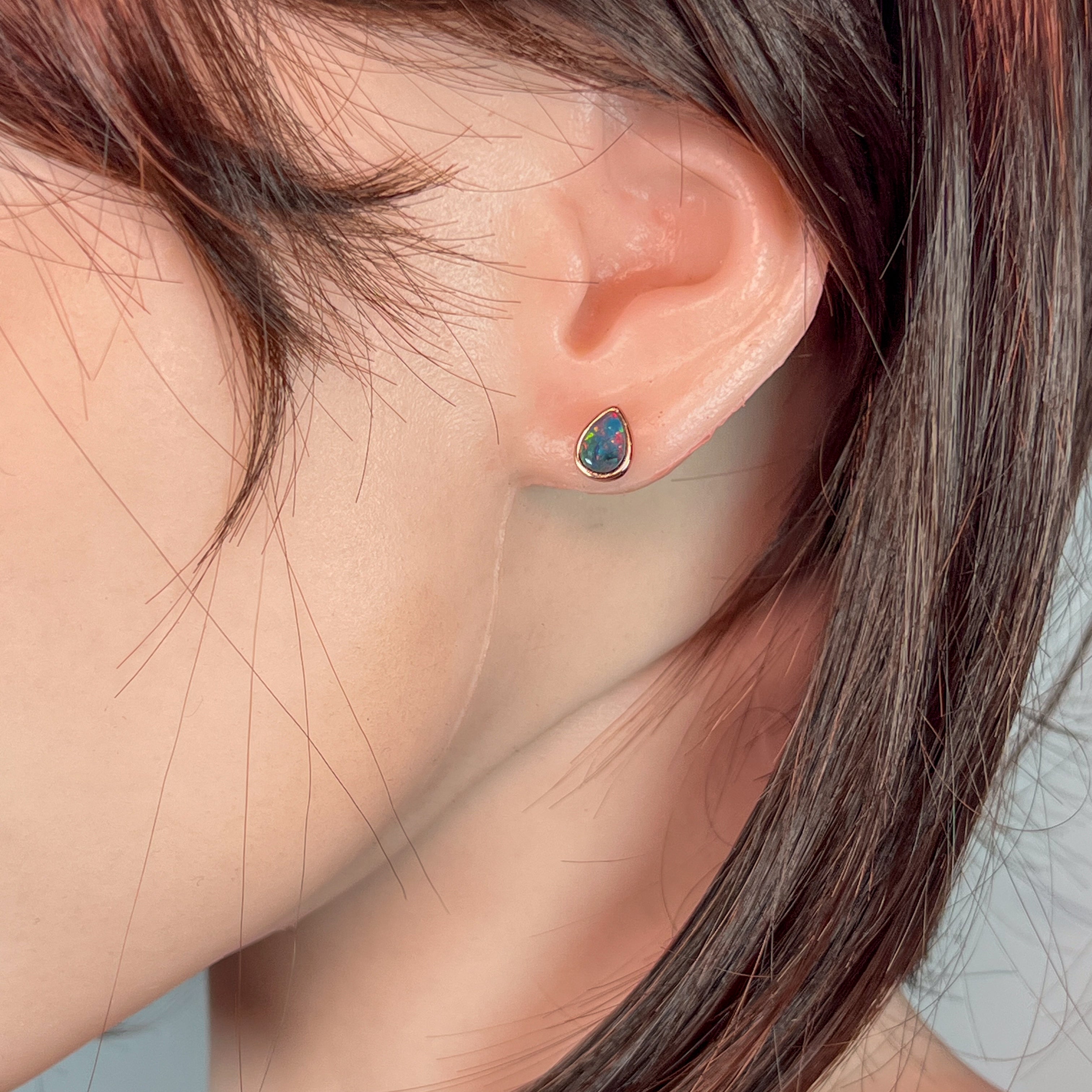 Rose Gold plated 8x5mm Opal Triplet pear shape bezel studs