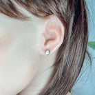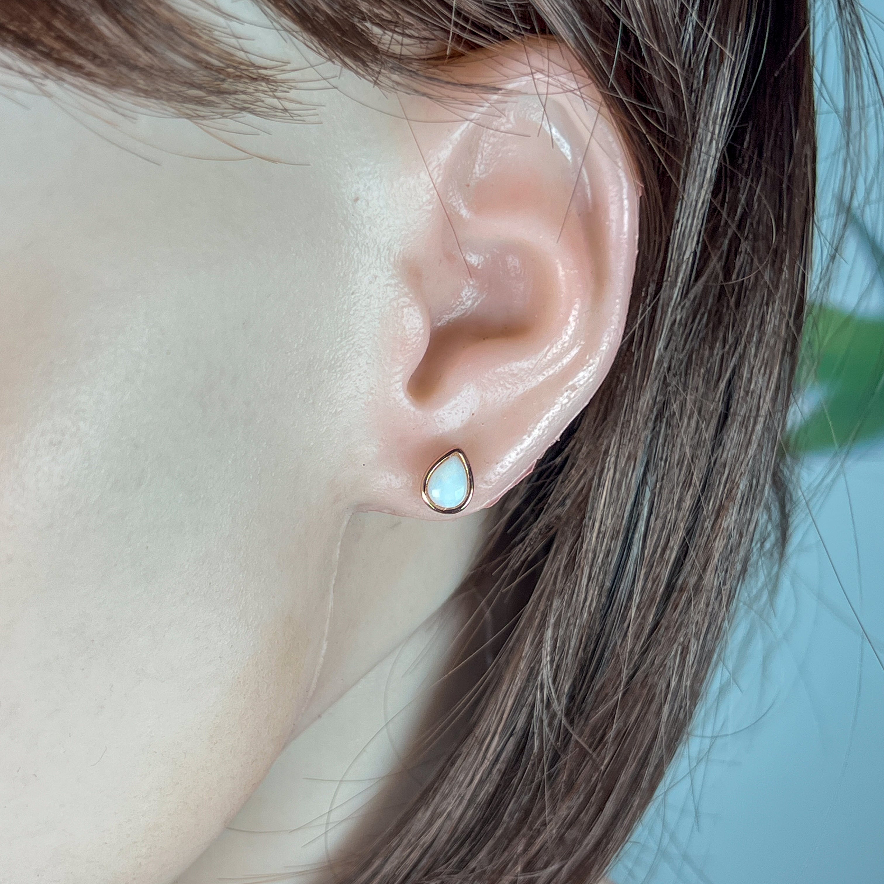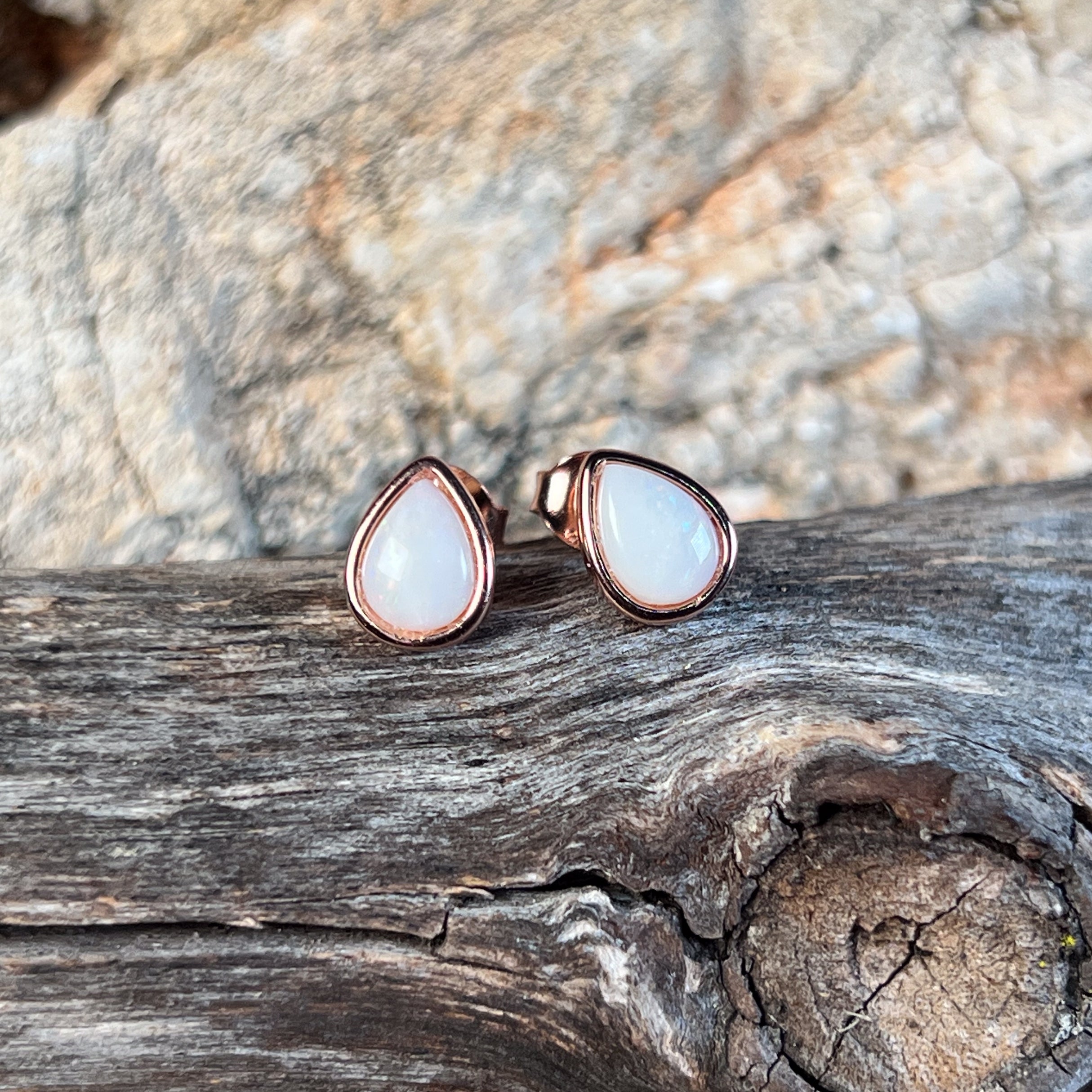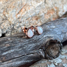 Rose Gold plated Silver 8x5mm White Opal bezel set studs
