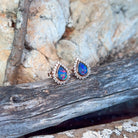 Rose gold plating elevates these elegant stud earrings, creating a warm, luxurious finish that complements any complexion. Each pear-shaped opal doublet measures 8x5mm, showcasing mesmerizing colour play and natural beauty. The classic cluster design features a silver base with rose gold plating, offering timeless sophistication that transitions seamlessly from everyday wear to special occasions. Perfect for those seeking understated elegance with genuine opal's captivating iridescence. These versatile studs make an ideal gift or personal treasure that never goes out of style.