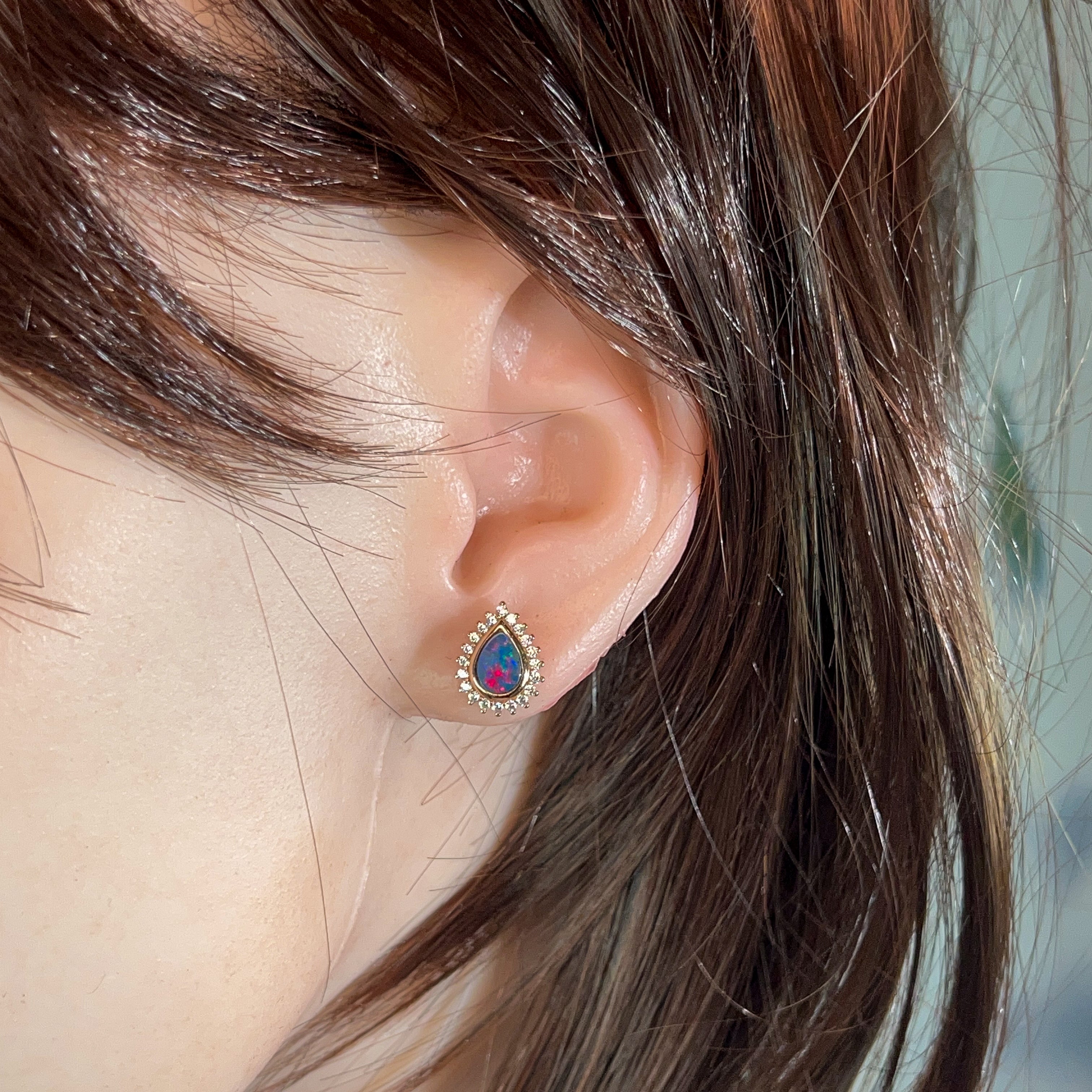 Rose Gold Plated Silver cluster pearshape studs Opal doublets 8x5mm