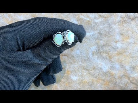Sterling Silver 10x8mm White Opal fancy studs floral