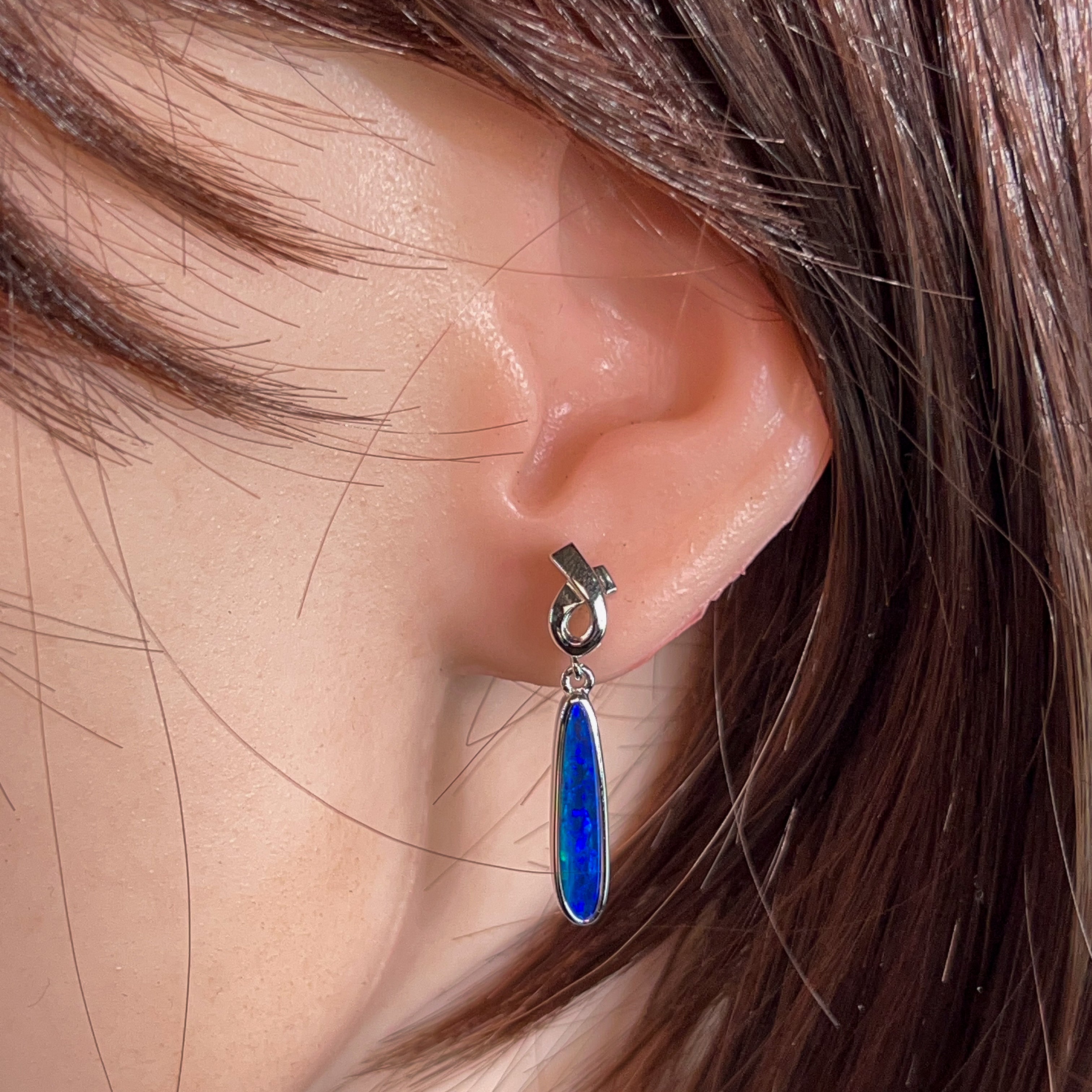One pair of Sterling Silver dangling Opal earrings bezel set