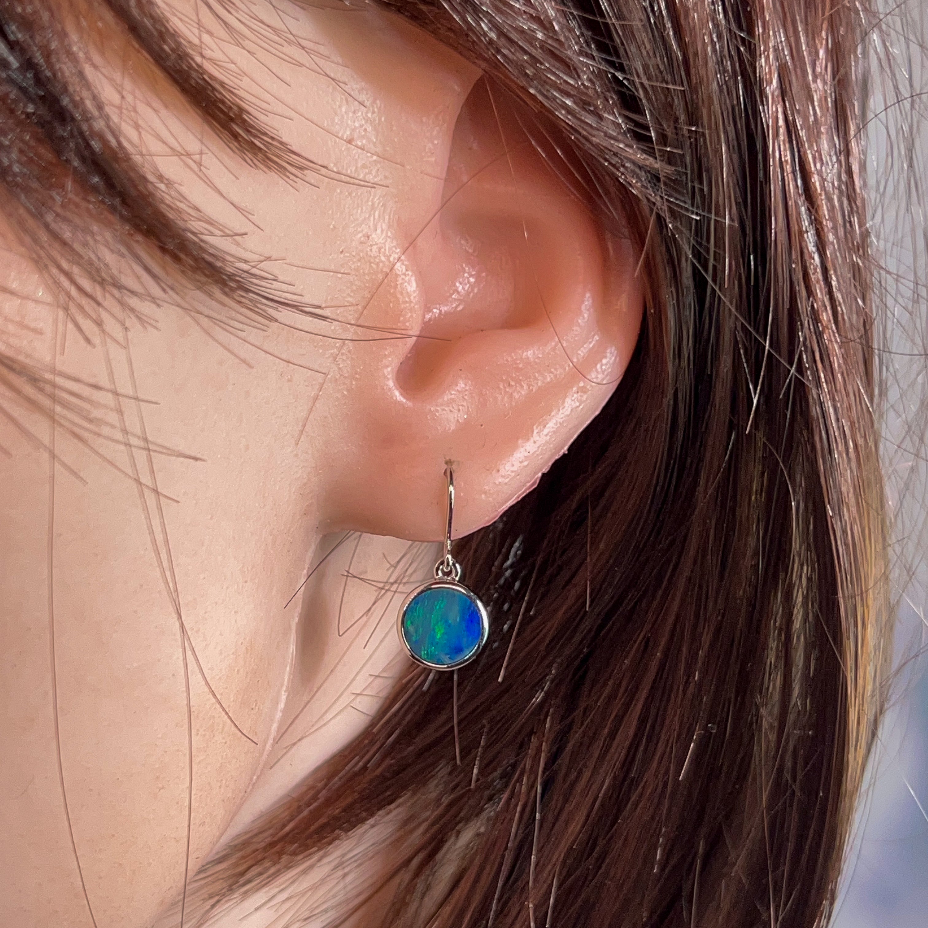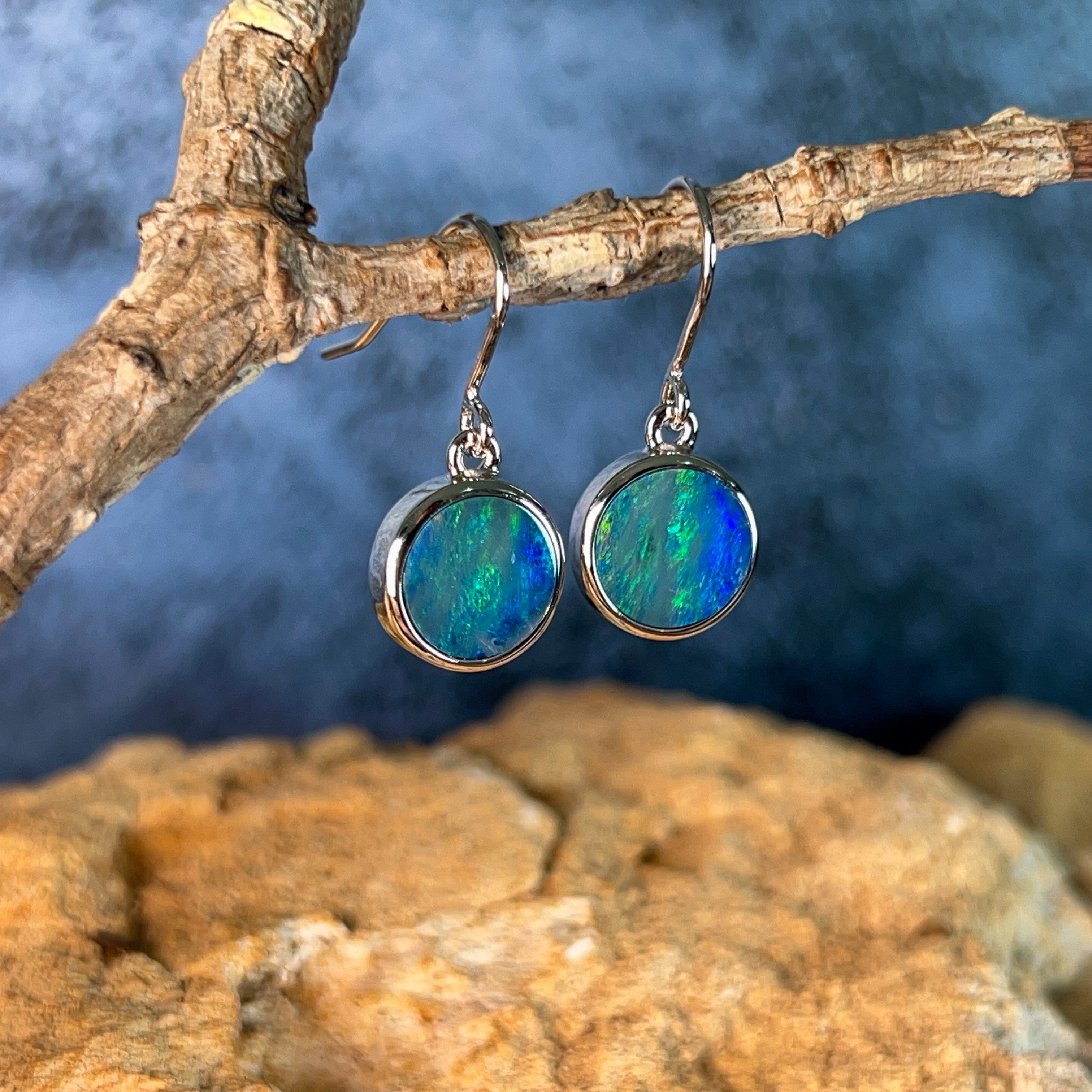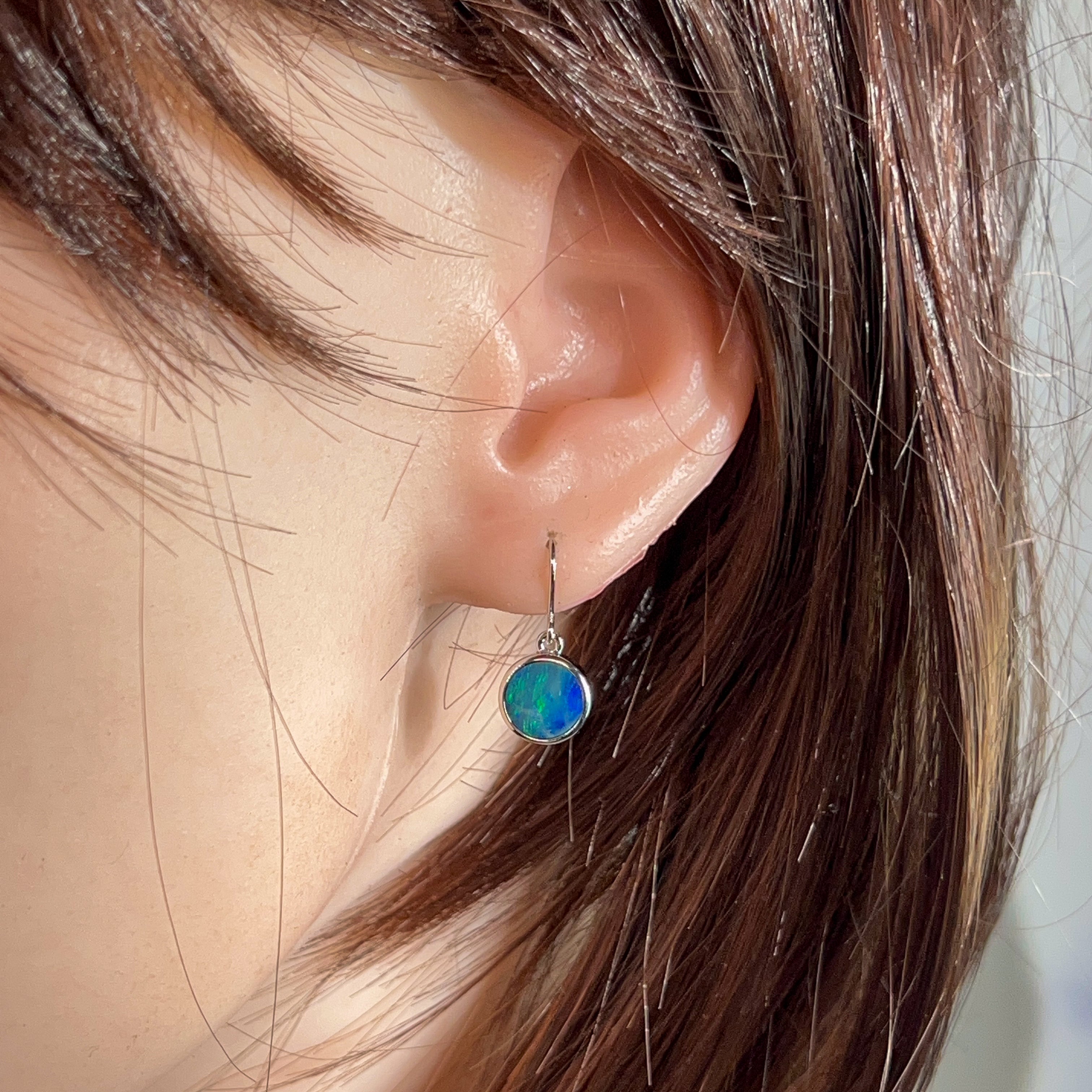 Sterling Silver dangling round Opal doublet 3ct earrings