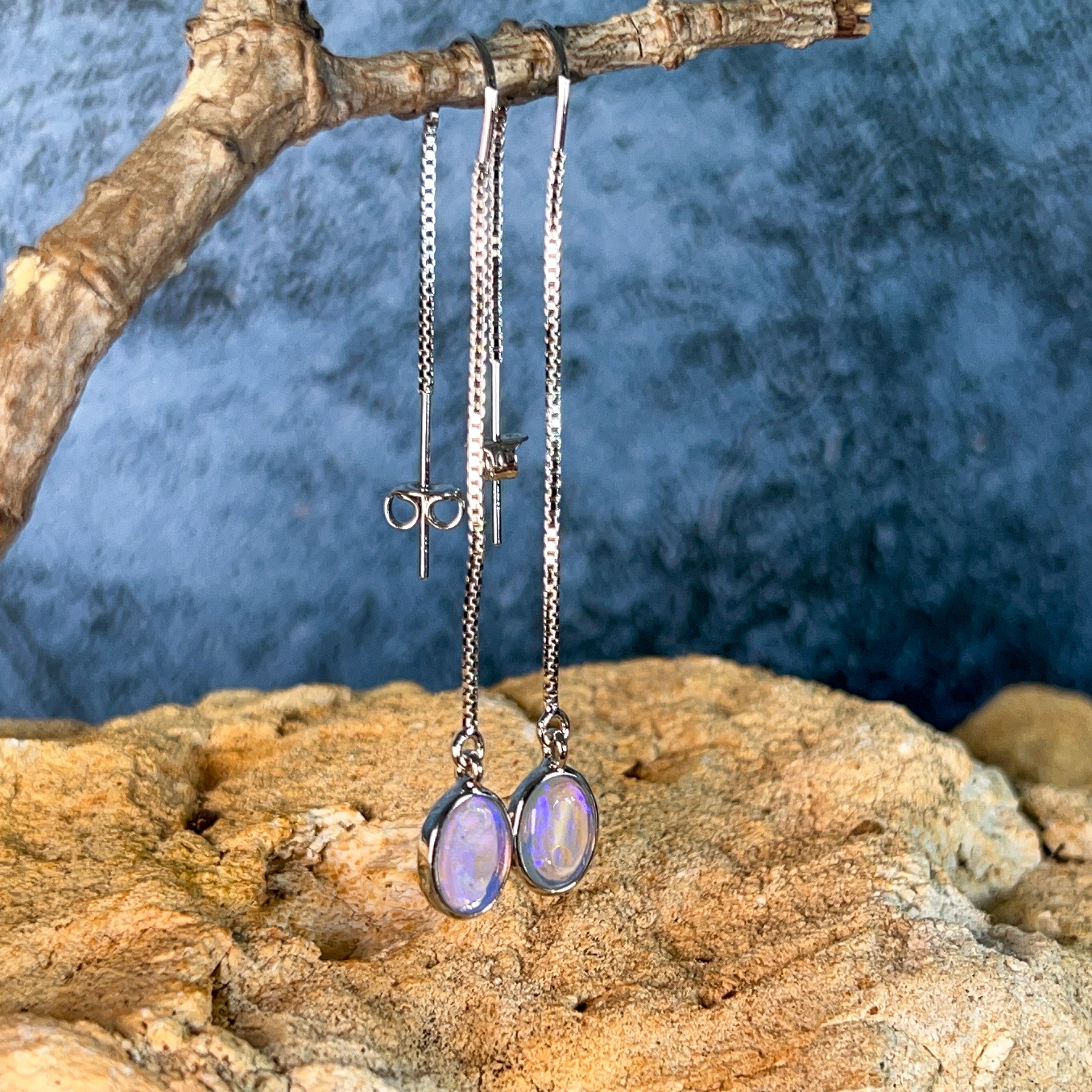 Elevate your everyday elegance with these stunning Sterling Silver dangling thread style Crystal Opal earrings. Each piece showcases the mesmerizing play of colour unique to genuine crystal opals, suspended delicately from fine silver threads that catch the light with every movement. Perfect for those who appreciate understated sophistication with a touch of natural brilliance, these earrings transition seamlessly from day to night. The lightweight design ensures all-day comfort, while the timeless aesthetic makes them an investment piece you'll treasure for years. Discover why opal jewellery remains a beloved choice for discerning jewellery lovers.