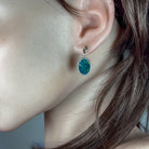 Make a bold statement with these large sterling silver dangling halo earrings featuring striking 14x10mm opal triplets. Their extensive halo design enhances the vibrant play of color in the opals, catching light beautifully with every movement. Perfect for adding a touch of elegance and sophistication to any outfit, these earrings combine classic craftsmanship with eye-catching size to elevate your style effortlessly.
