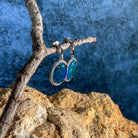 Sterling Silver large dangling halo earrings Opal triplets 14x10mm