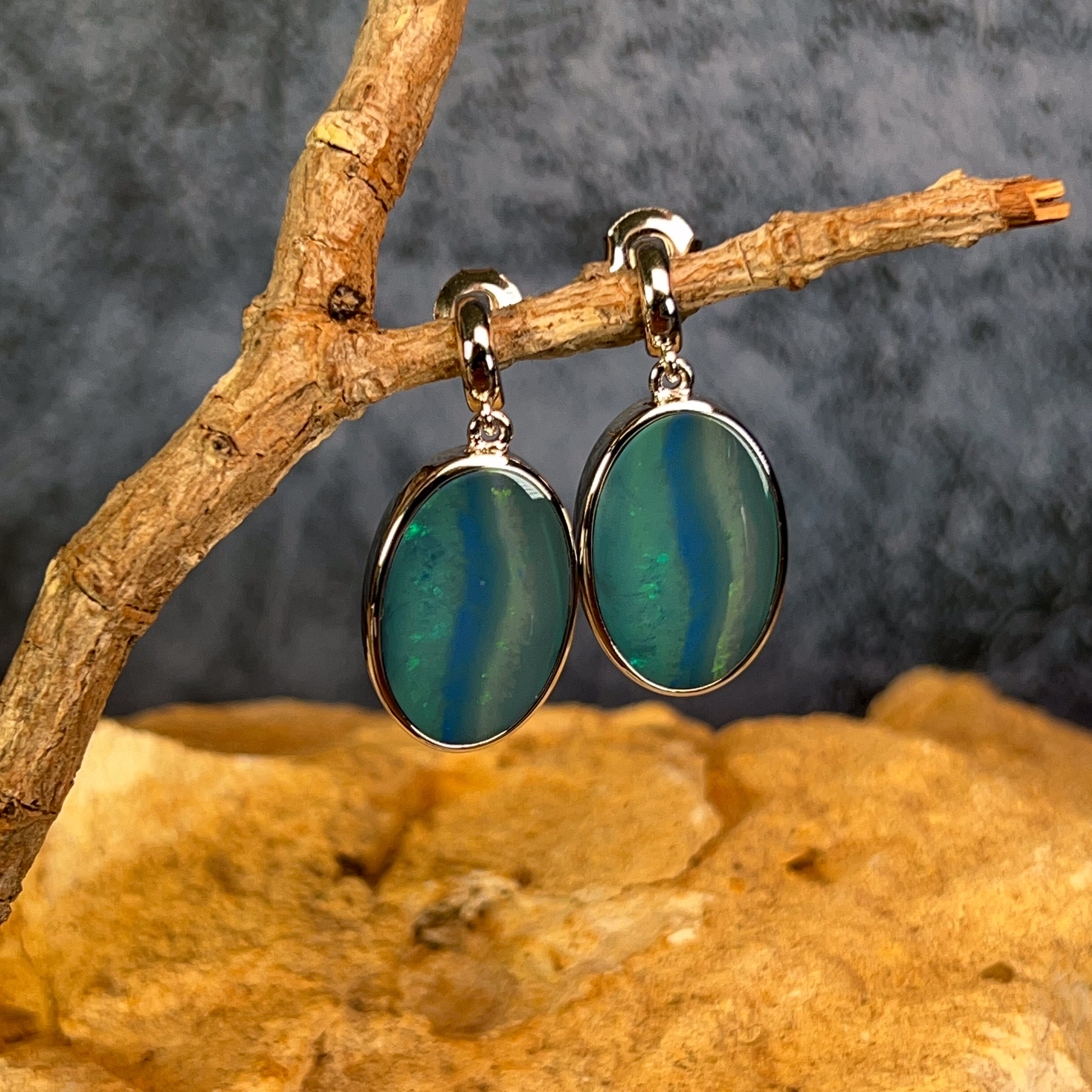 Sterling Silver large Oval Opal doublet earrings 10.4ct