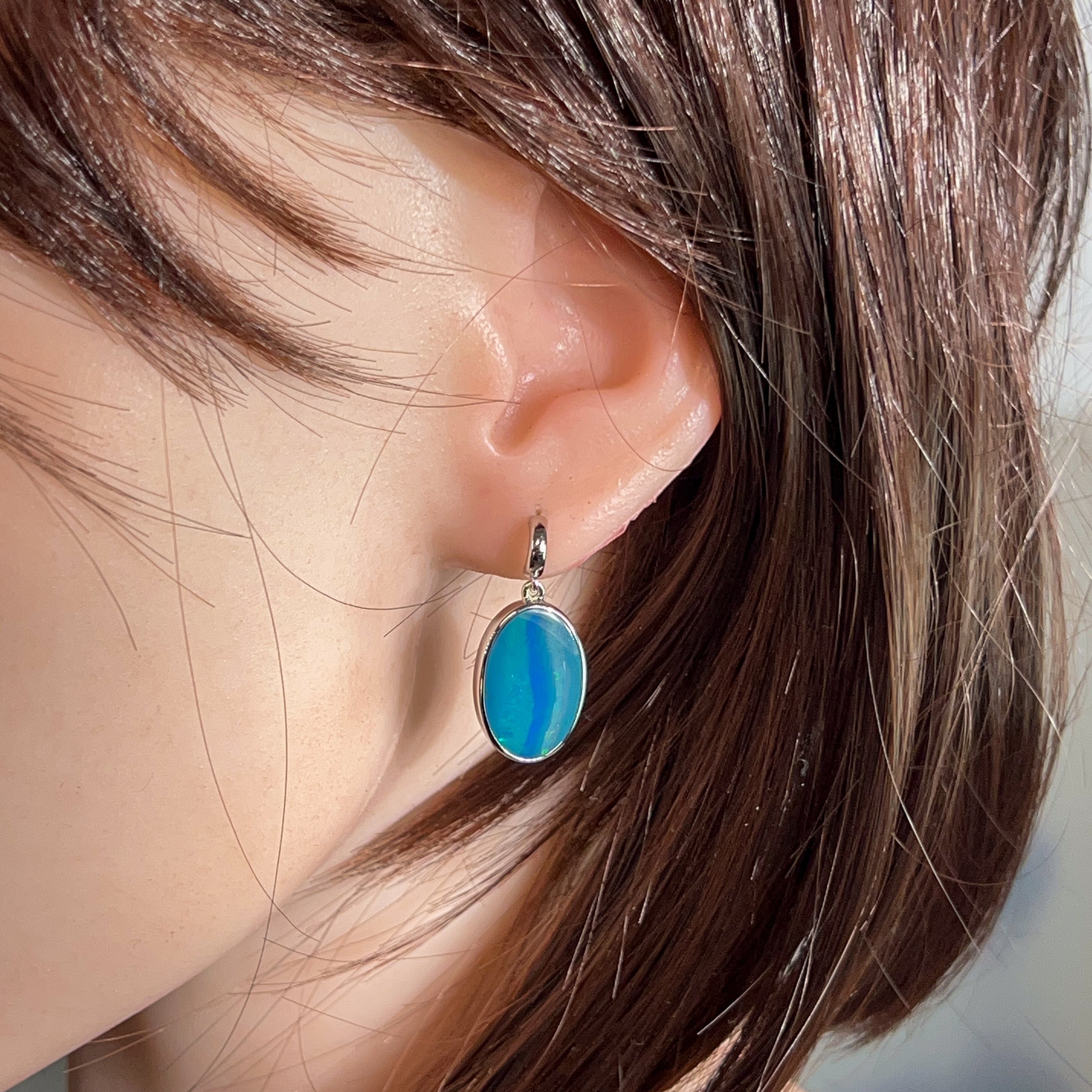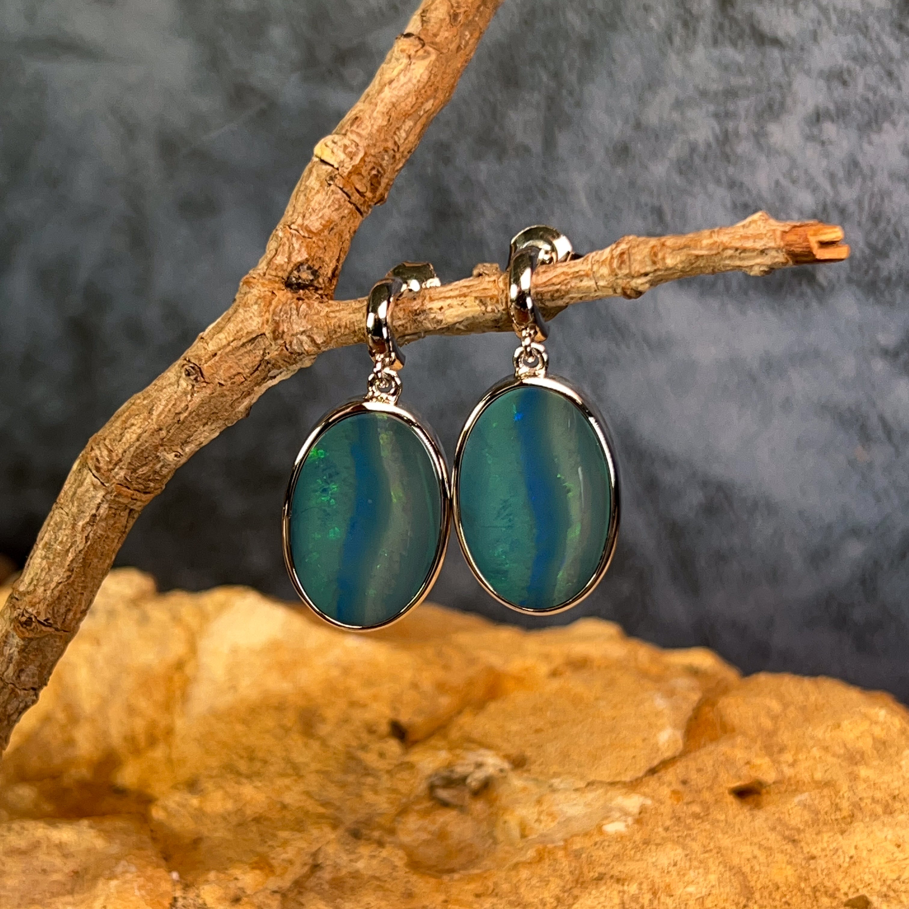 Make a statement with these stunning sterling silver oval opal doublet earrings, weighing an impressive 10.4 carats. Each piece showcases the mesmerizing play-of-colour that opals are renowned for, with the doublet construction ensuring durability and brilliance. The generous size commands attention while remaining elegantly wearable, perfect for those who appreciate bold, eye-catching jewellery. Crafted in quality sterling silver, these earrings combine timeless sophistication with contemporary flair. Ideal for special occasions or elevating your everyday style, they're a versatile investment piece that celebrates the natural beauty of Australian opals.