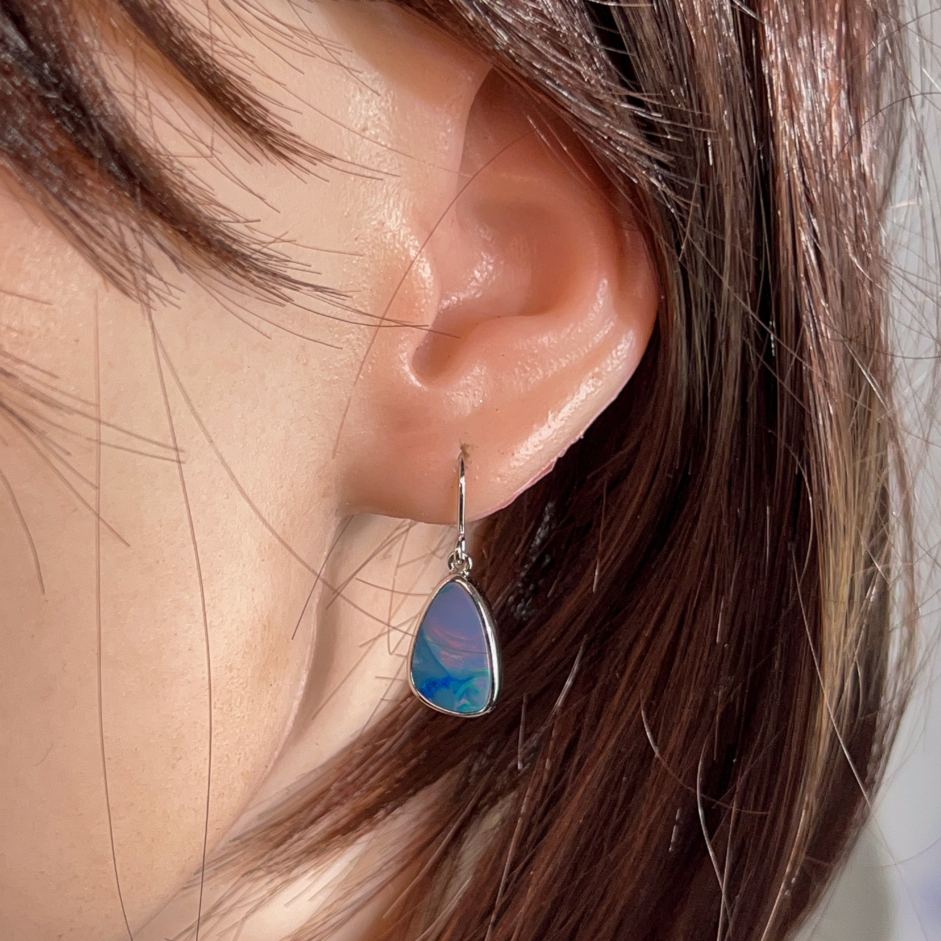 Sterling Silver Opal 5.54ct doublet dangling earrings