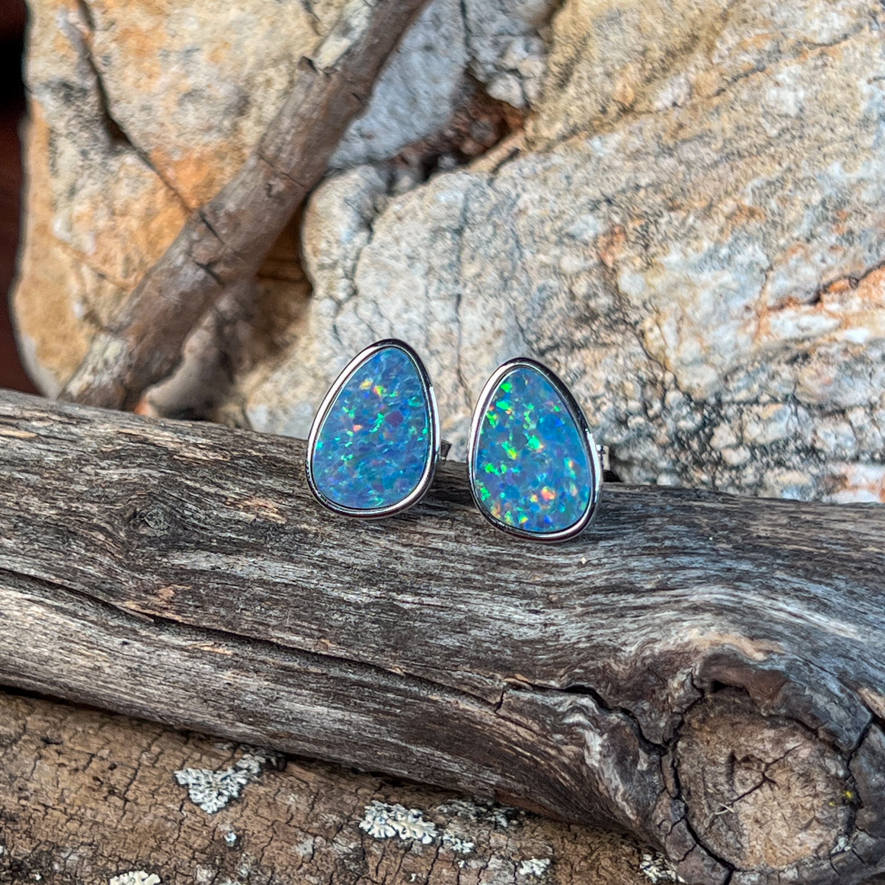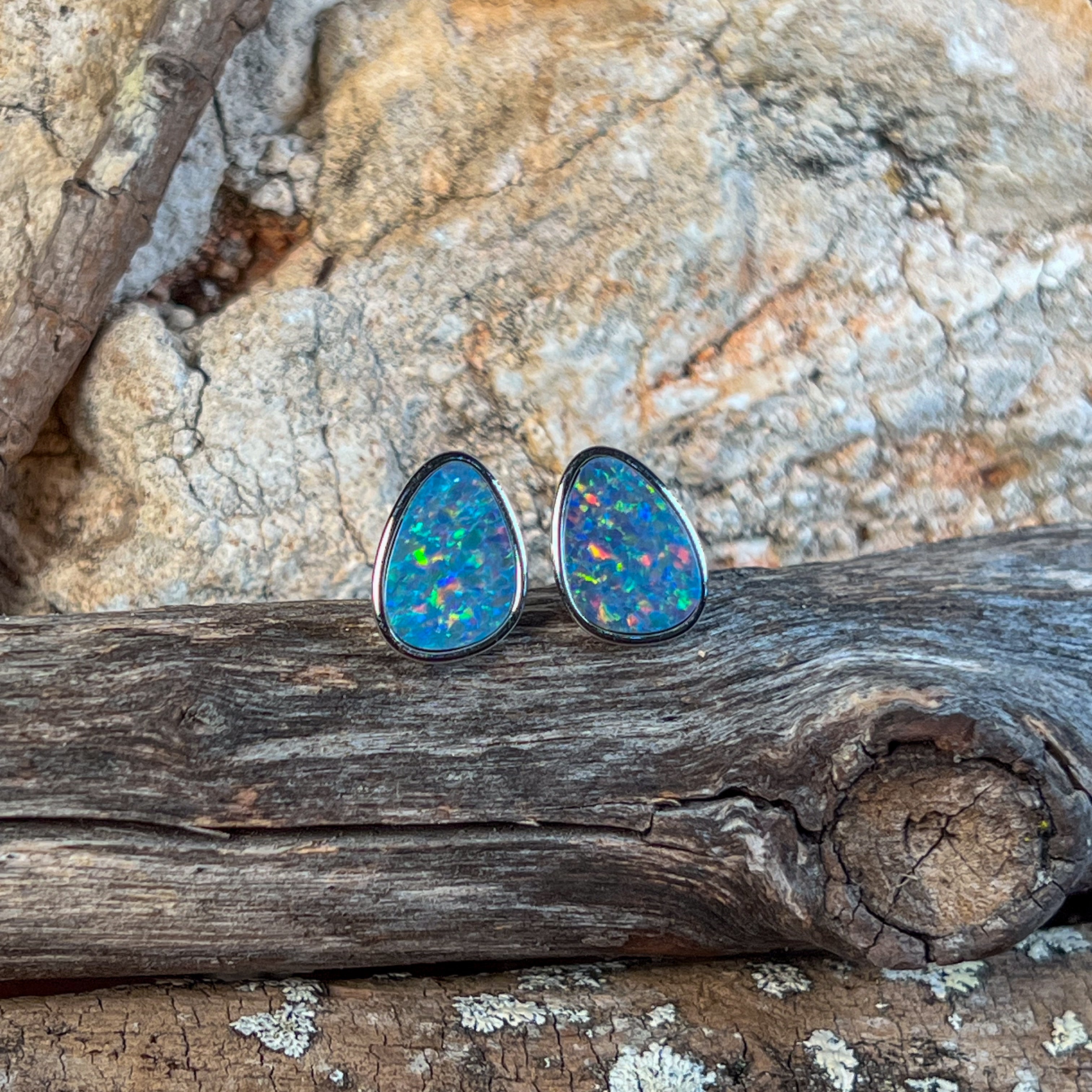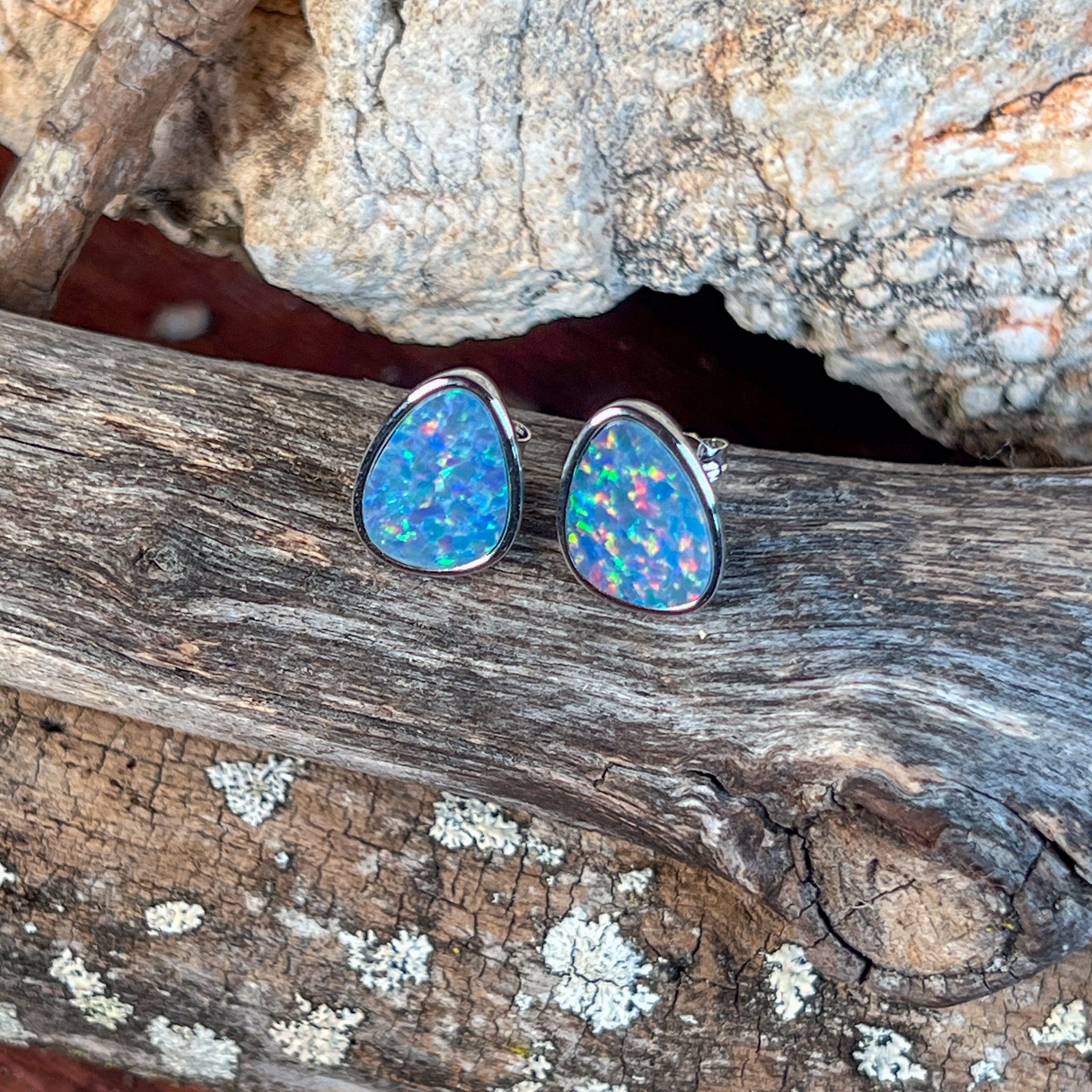 Make a striking statement with these sterling silver triangular studs featuring mesmerizing soft blue and yellow opal doublets. The geometric design catches light beautifully, while the generous size ensures these pieces command attention without overwhelming your look. Perfect for those who appreciate bold, contemporary jewellery that celebrates natural opal's enchanting colour play. Crafted from quality sterling silver for lasting wear and everyday elegance.