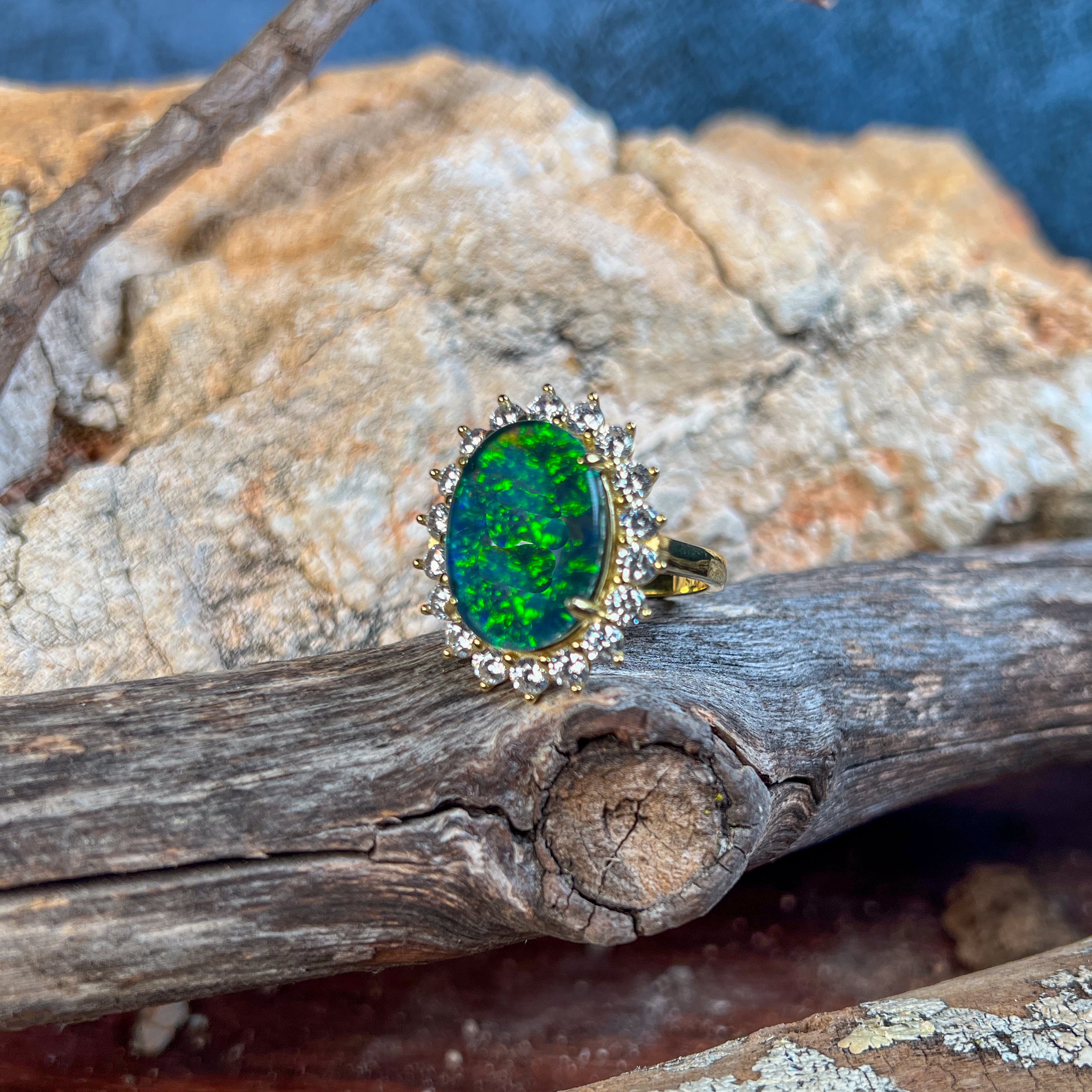 Gold Plated Sterling Silver cluster ring 18x13mm Opal triplet