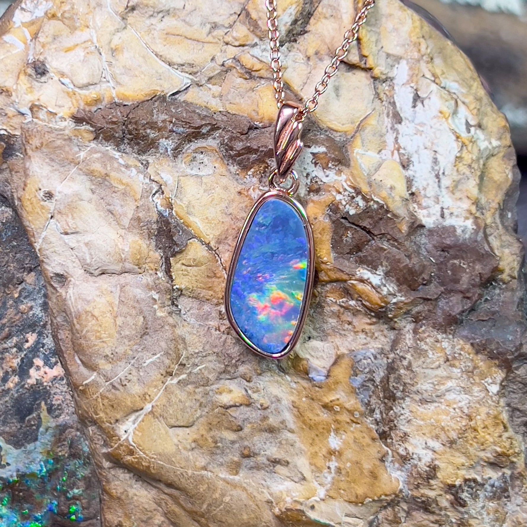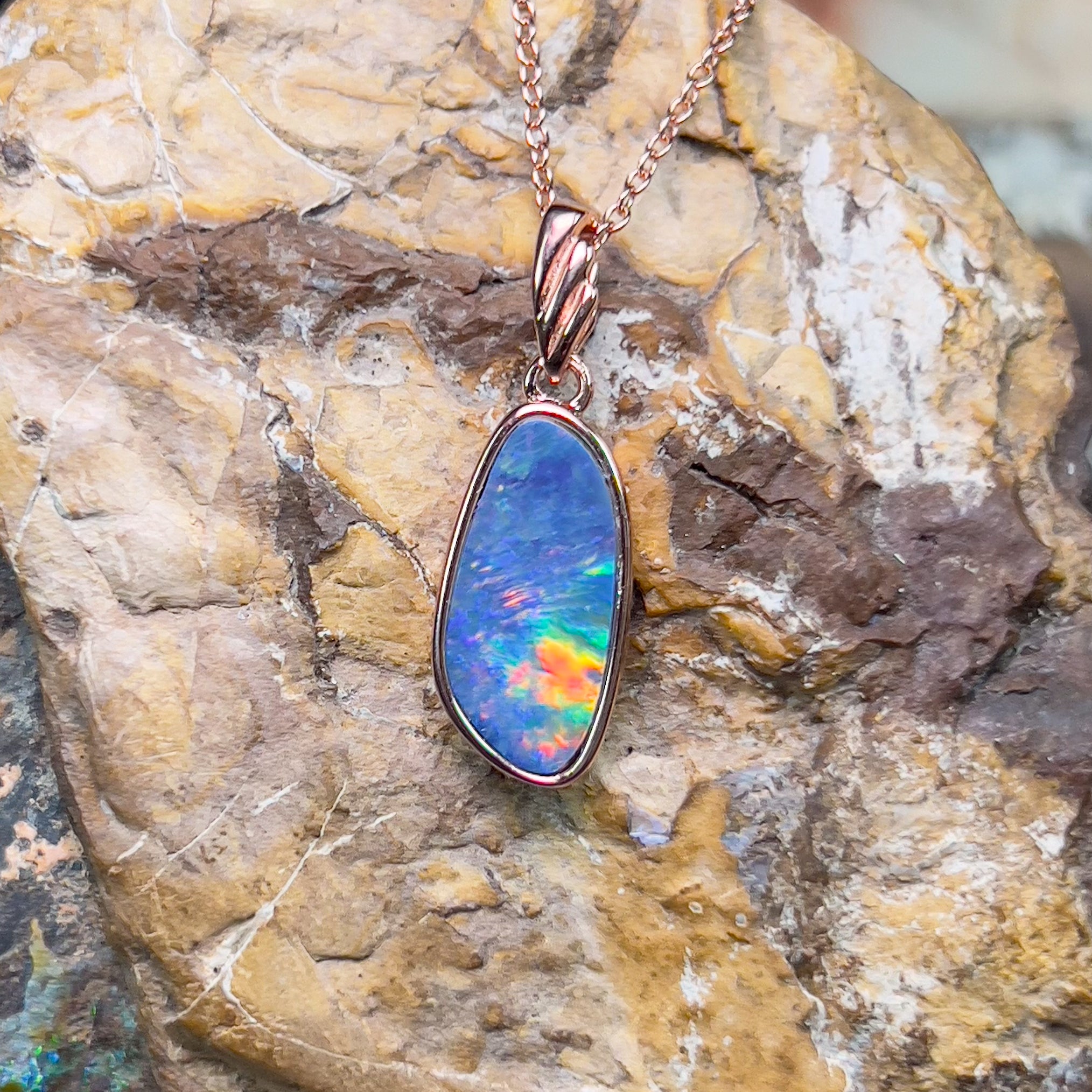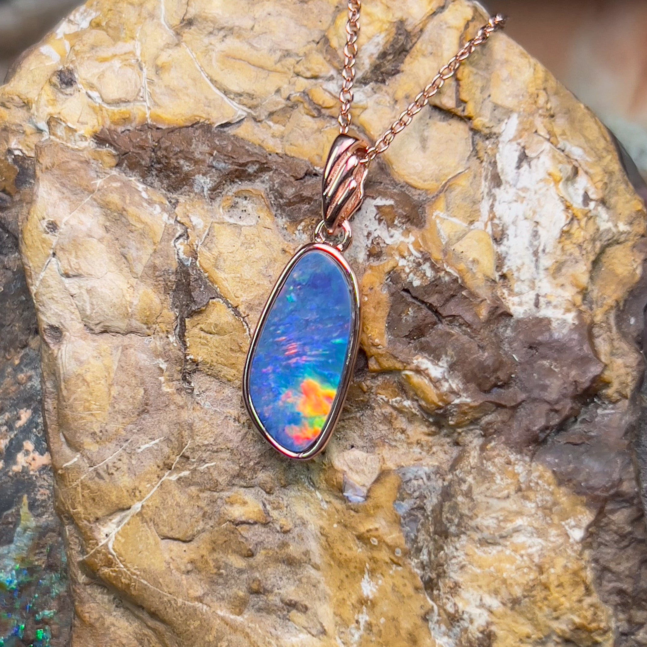 Rose Gold plated Sterling Silver Opal doublet pendant