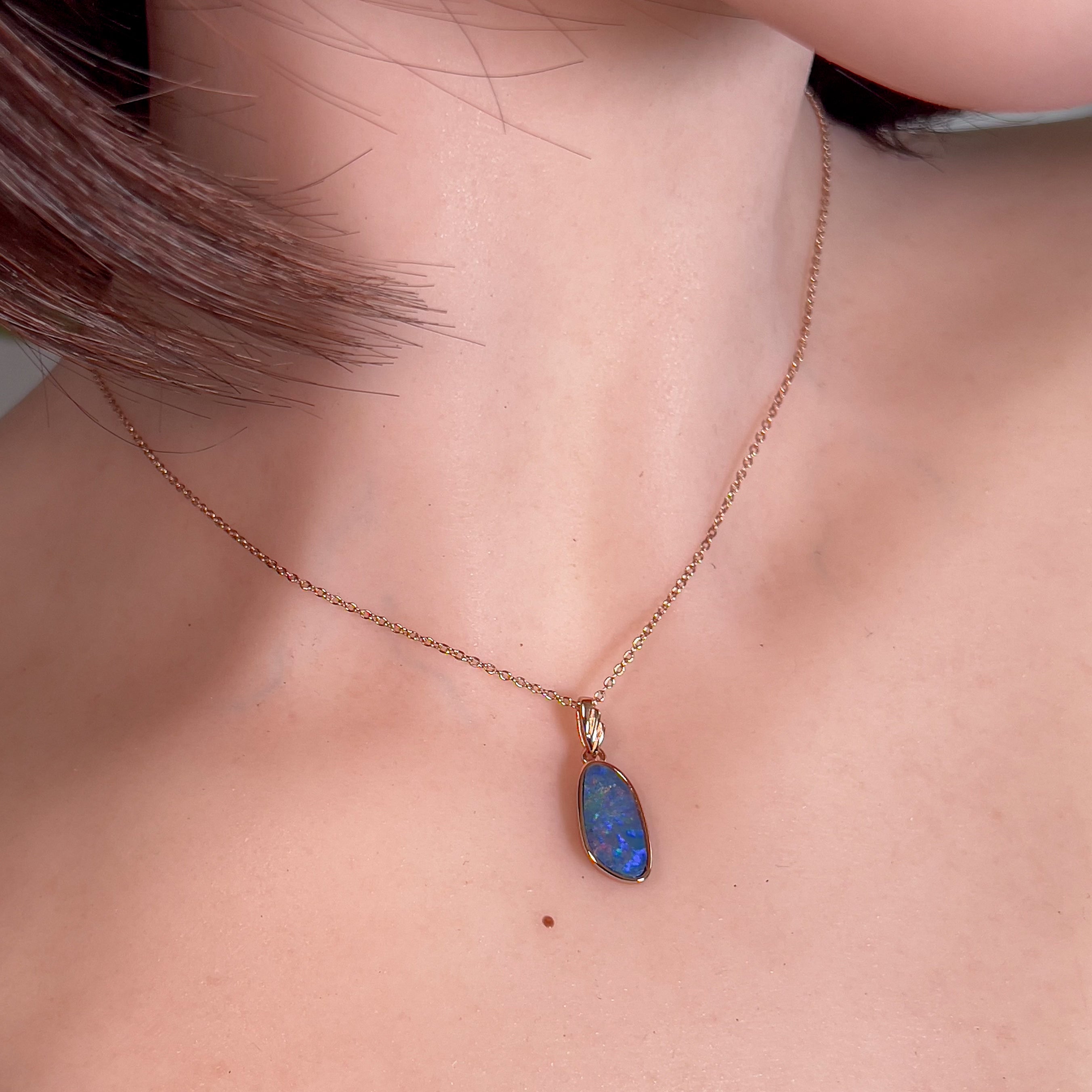 Indulge in the timeless elegance of our Rose Gold plated Sterling Silver Opal doublet pendant. The classic design adds a touch of sophistication to any outfit, while the Opal doublet stone creates a subtle yet stunning pop of color. Elevate your style and captivate with this beautiful pendant.