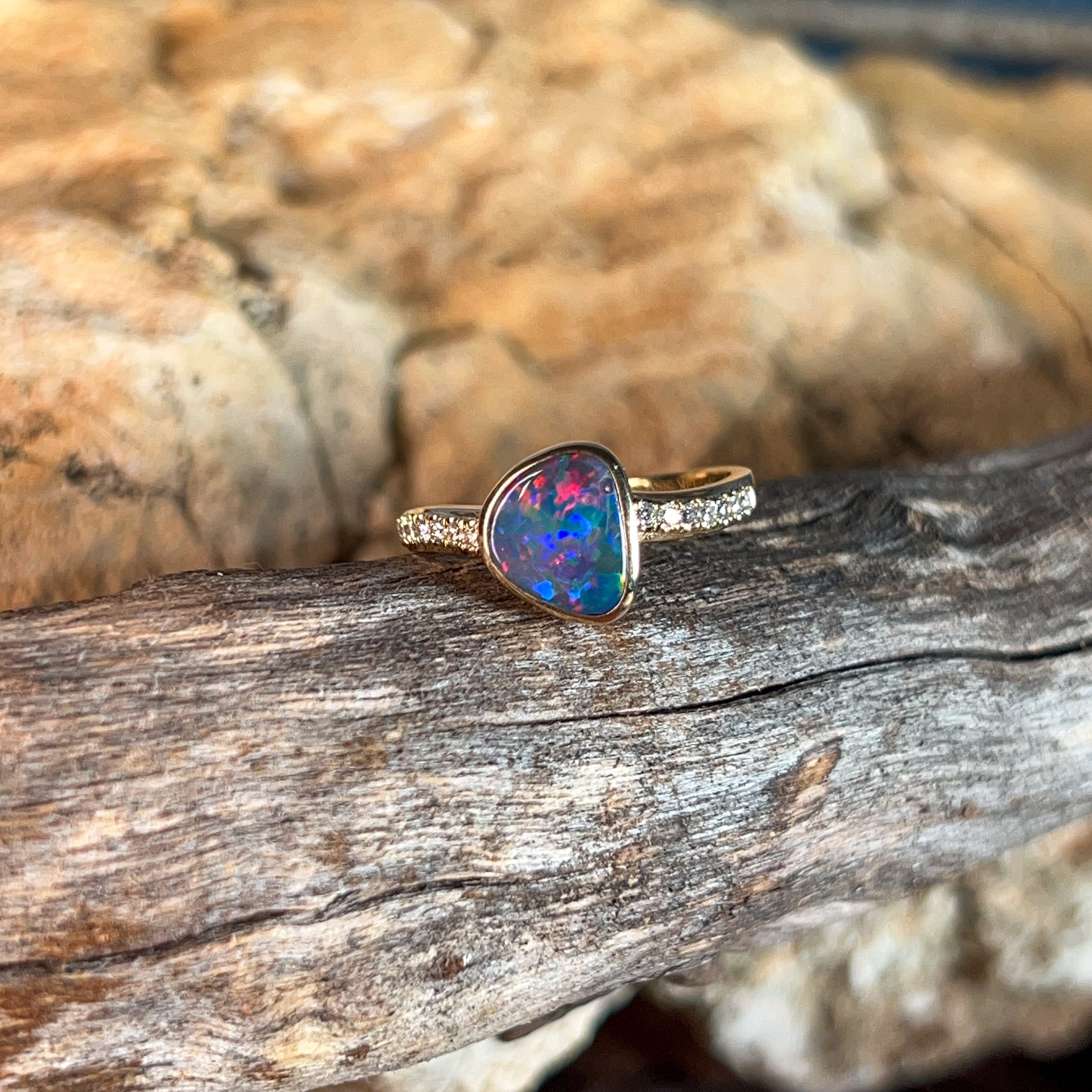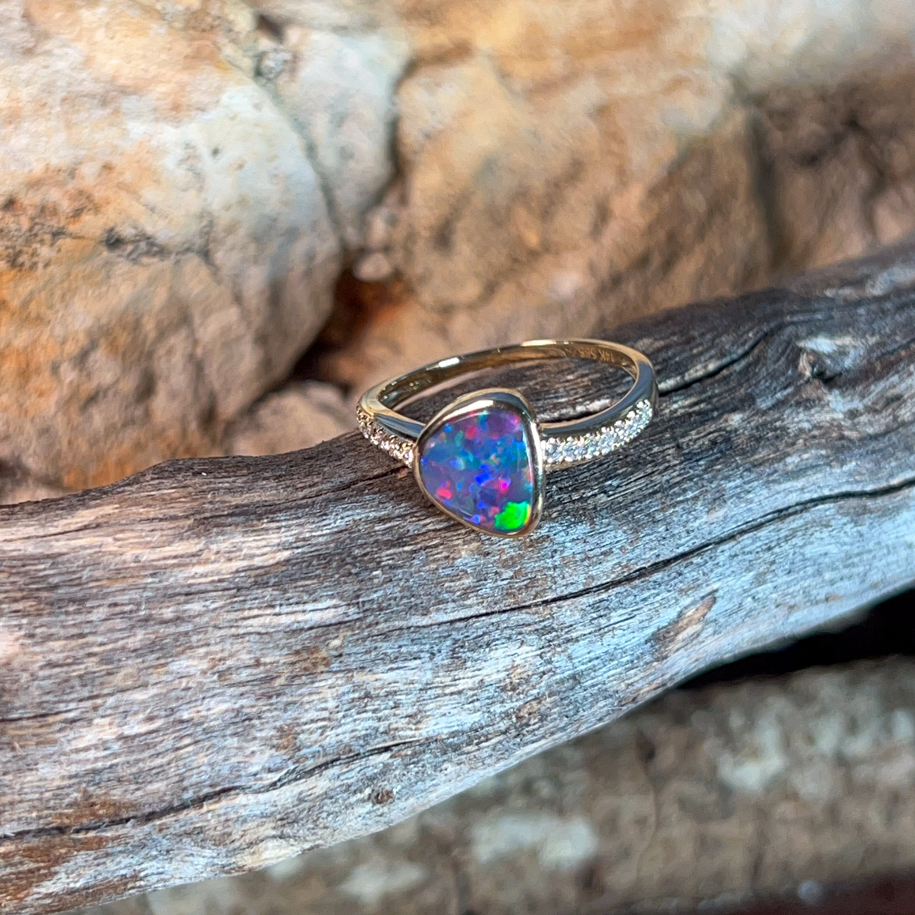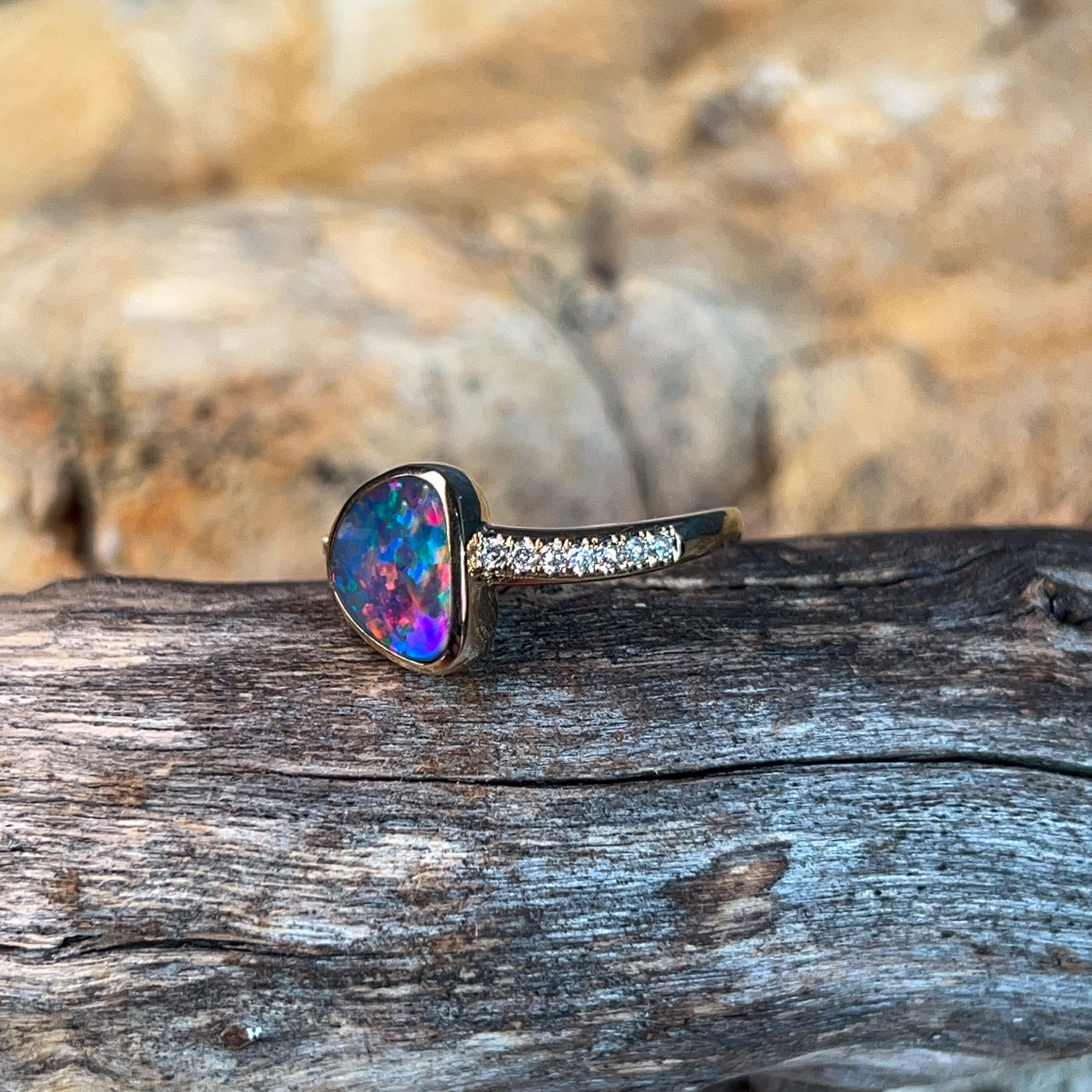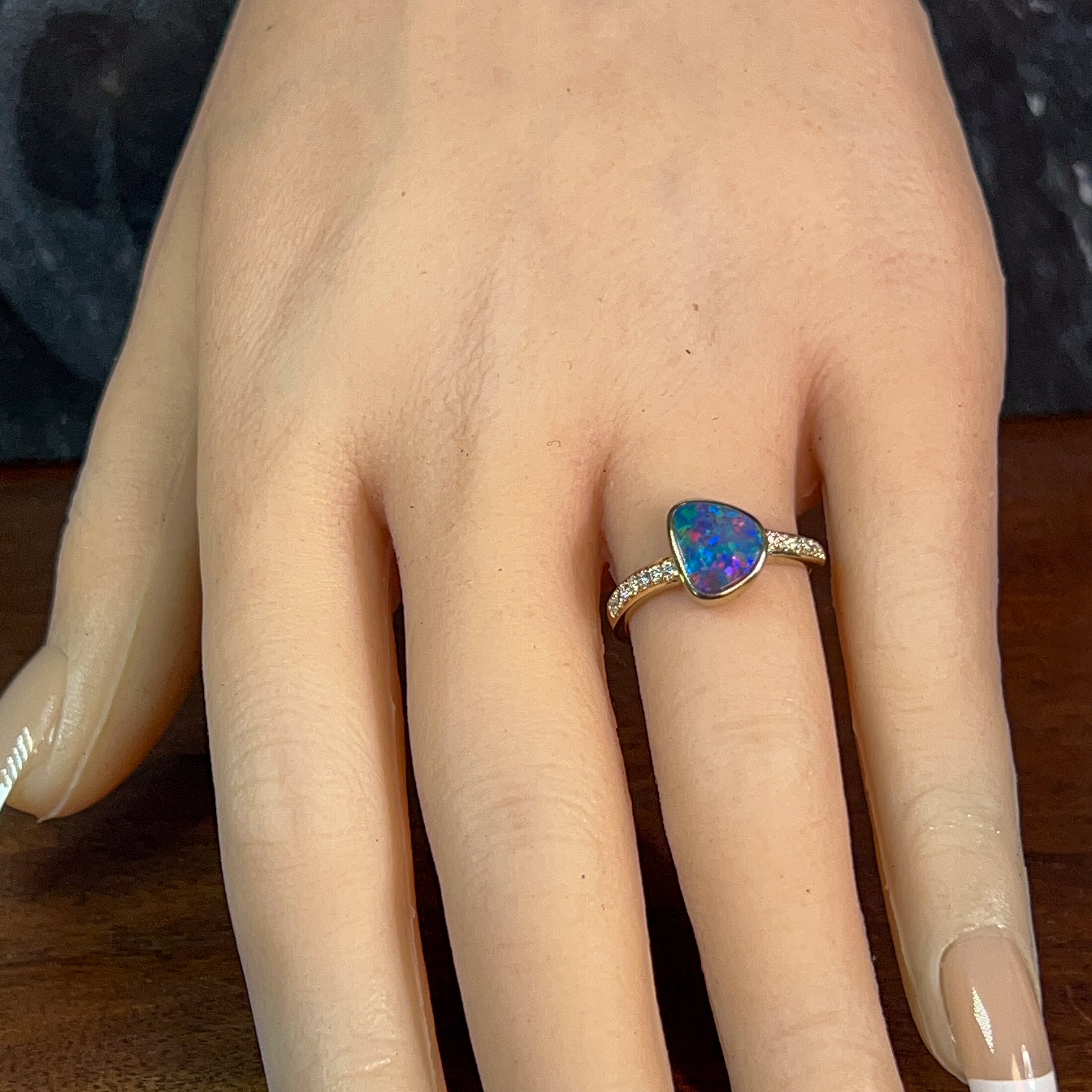 14kt Yellow Gold Opal doublet 1.45ct and diamond ring