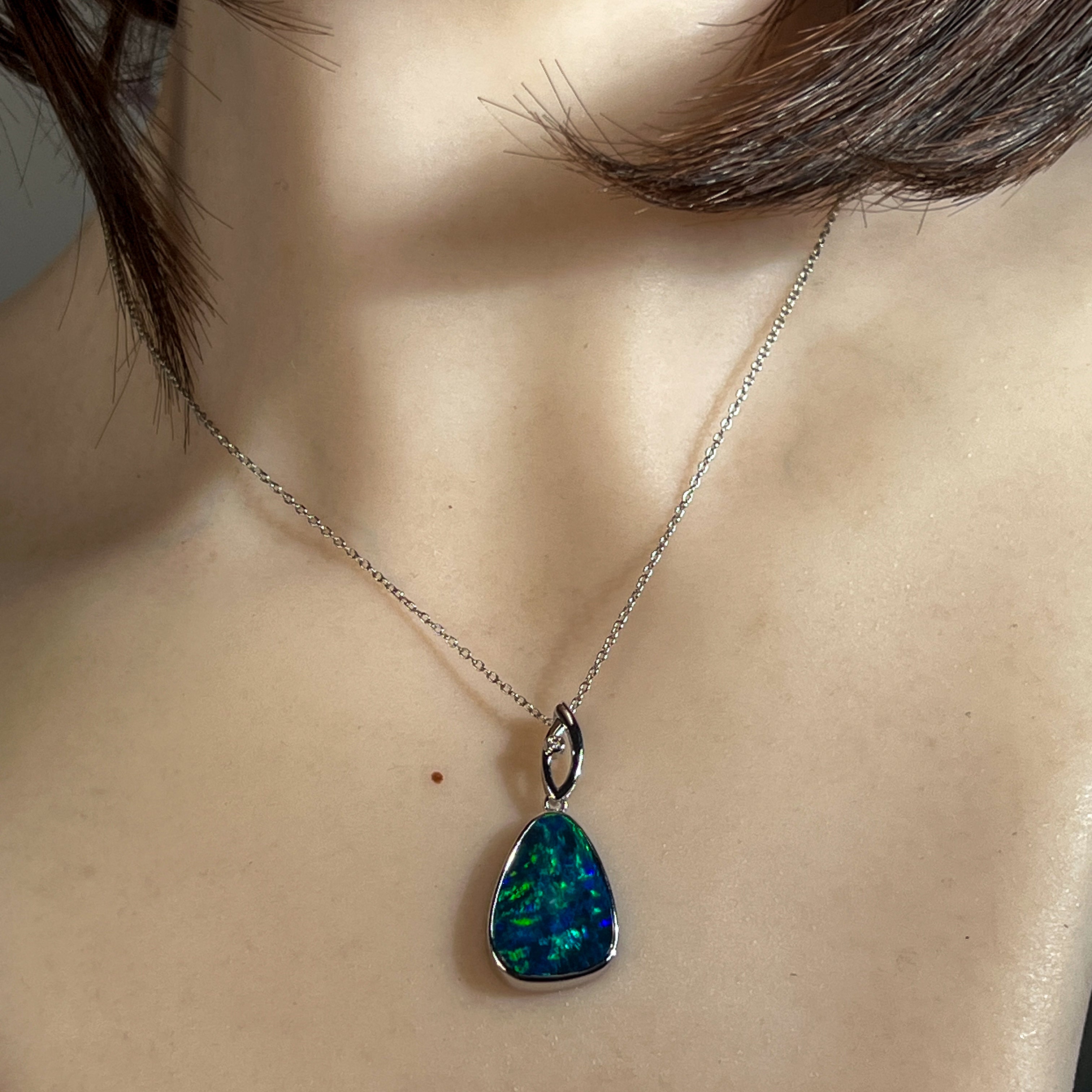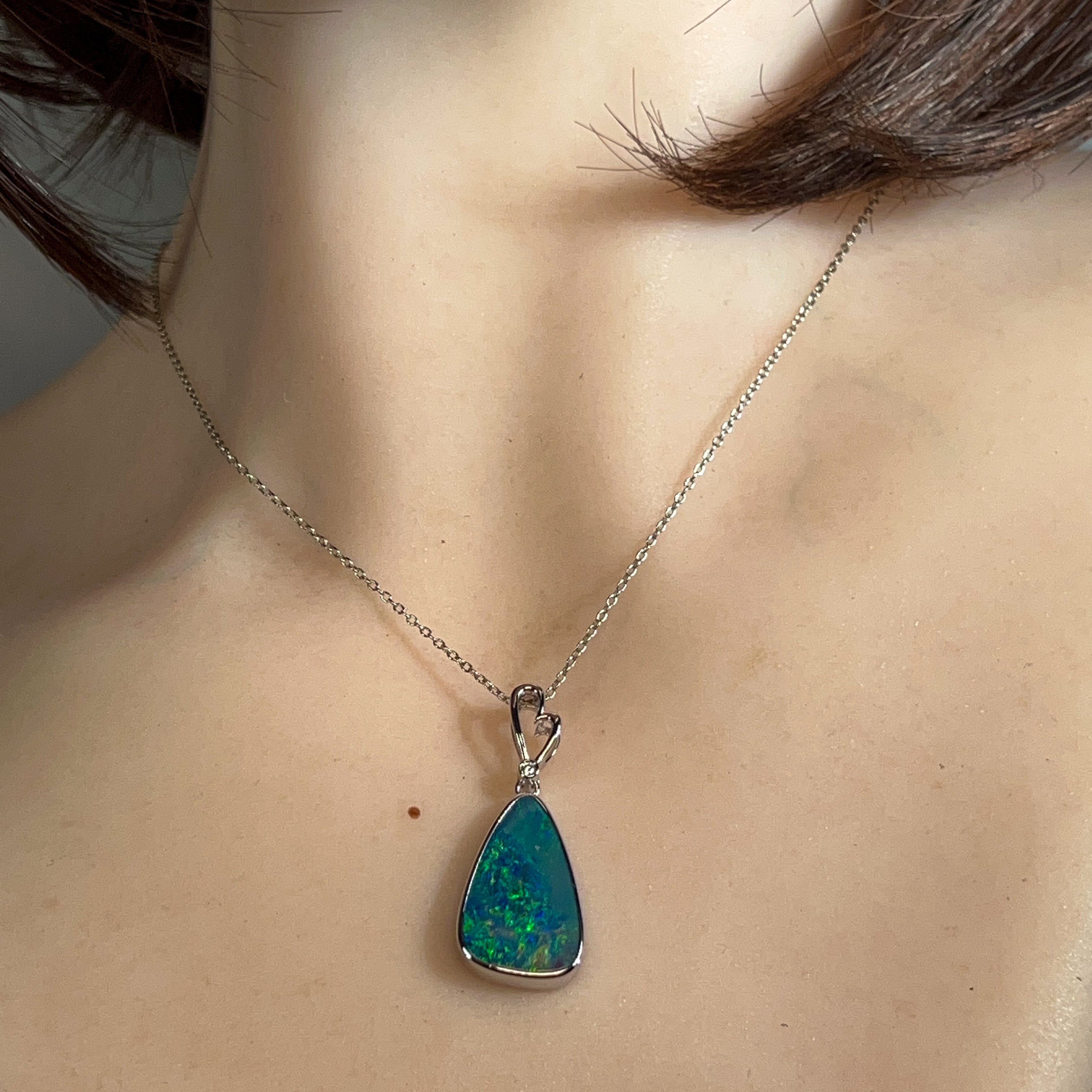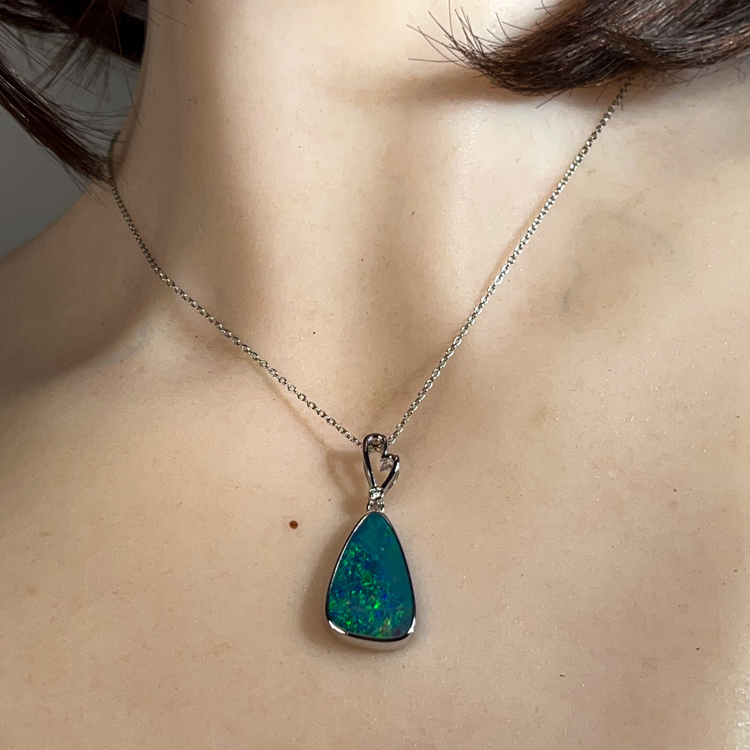 14kt White Gold Opal doublet 6.85ct and diamond pendant