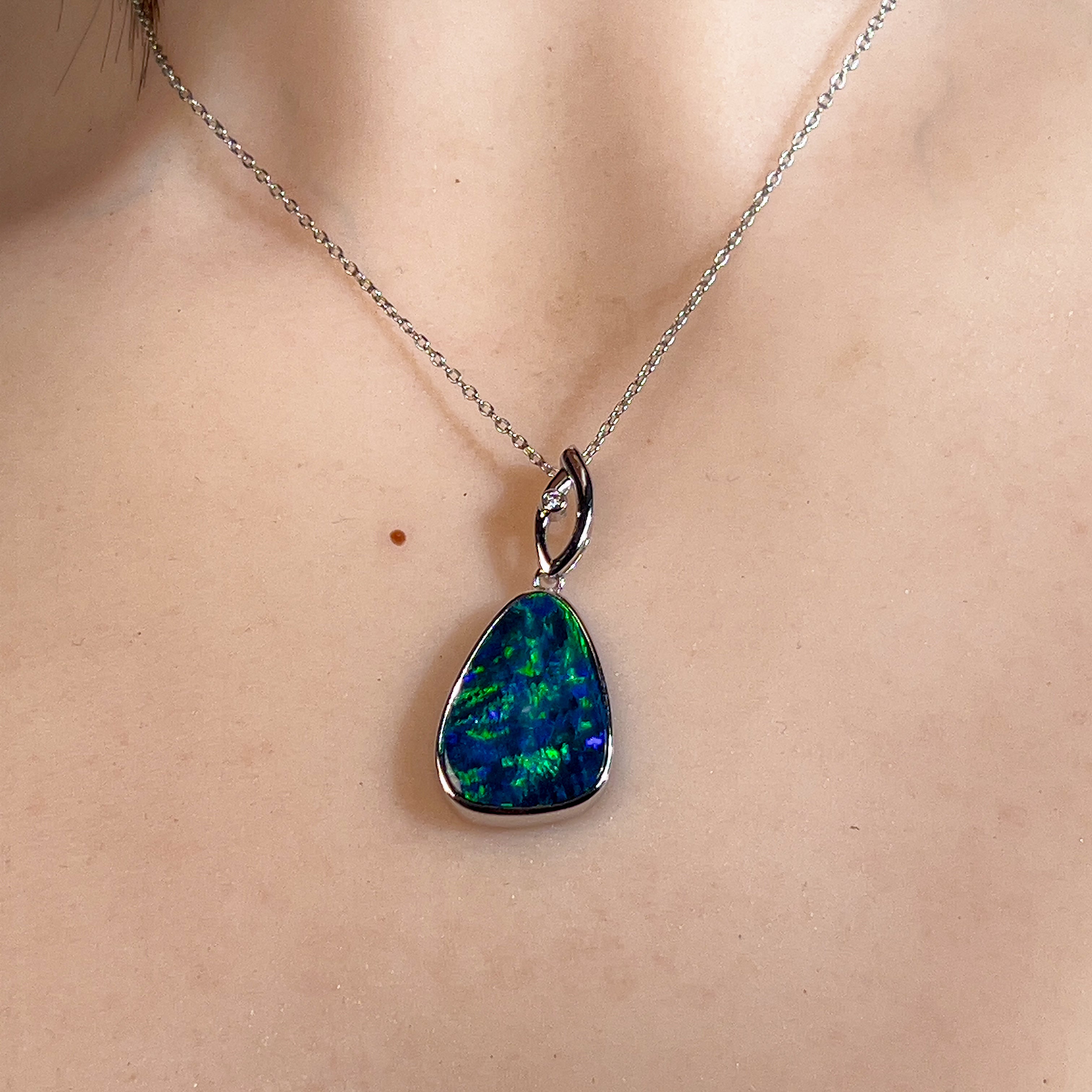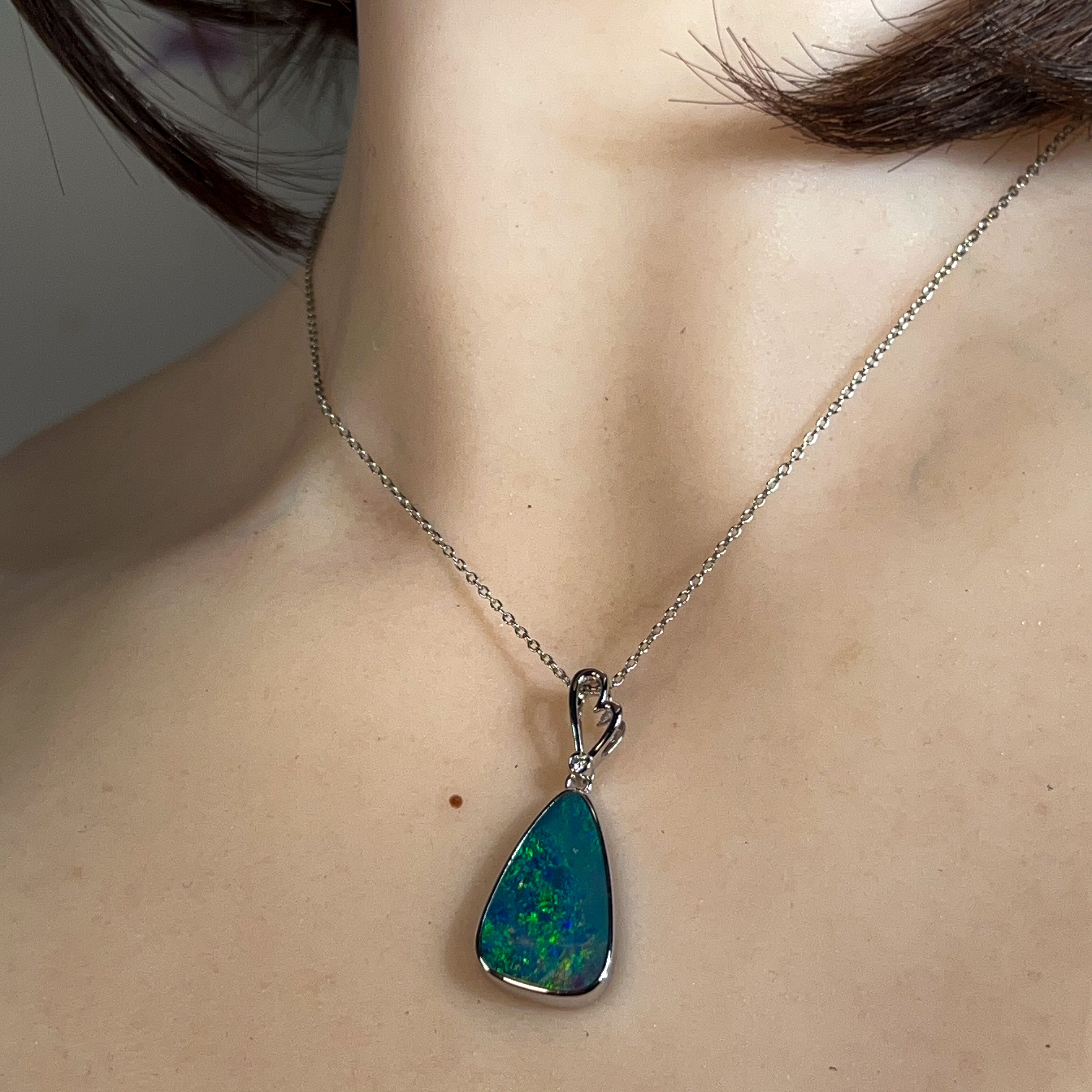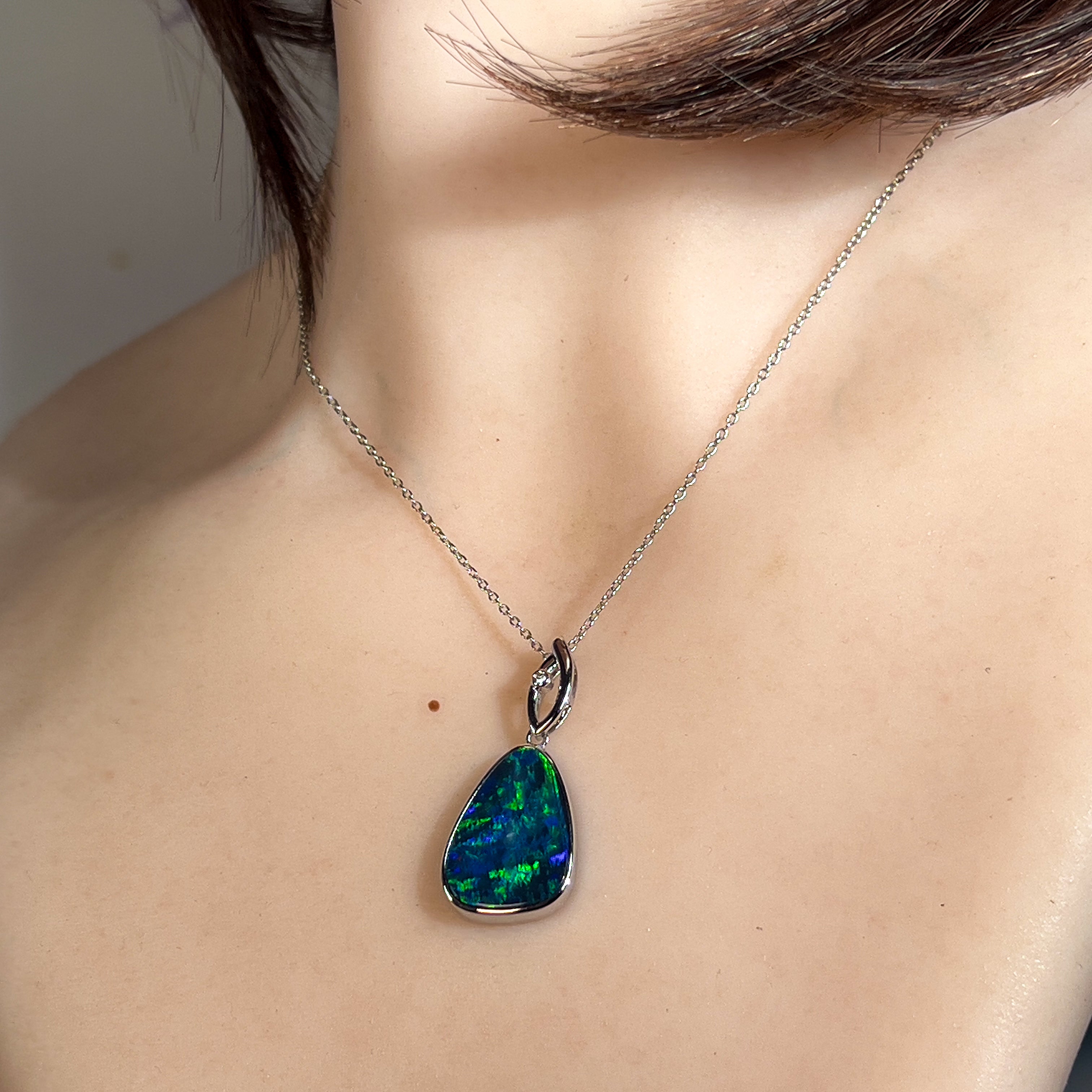 14kt White Gold Opal doublet 6.85ct and diamond pendant