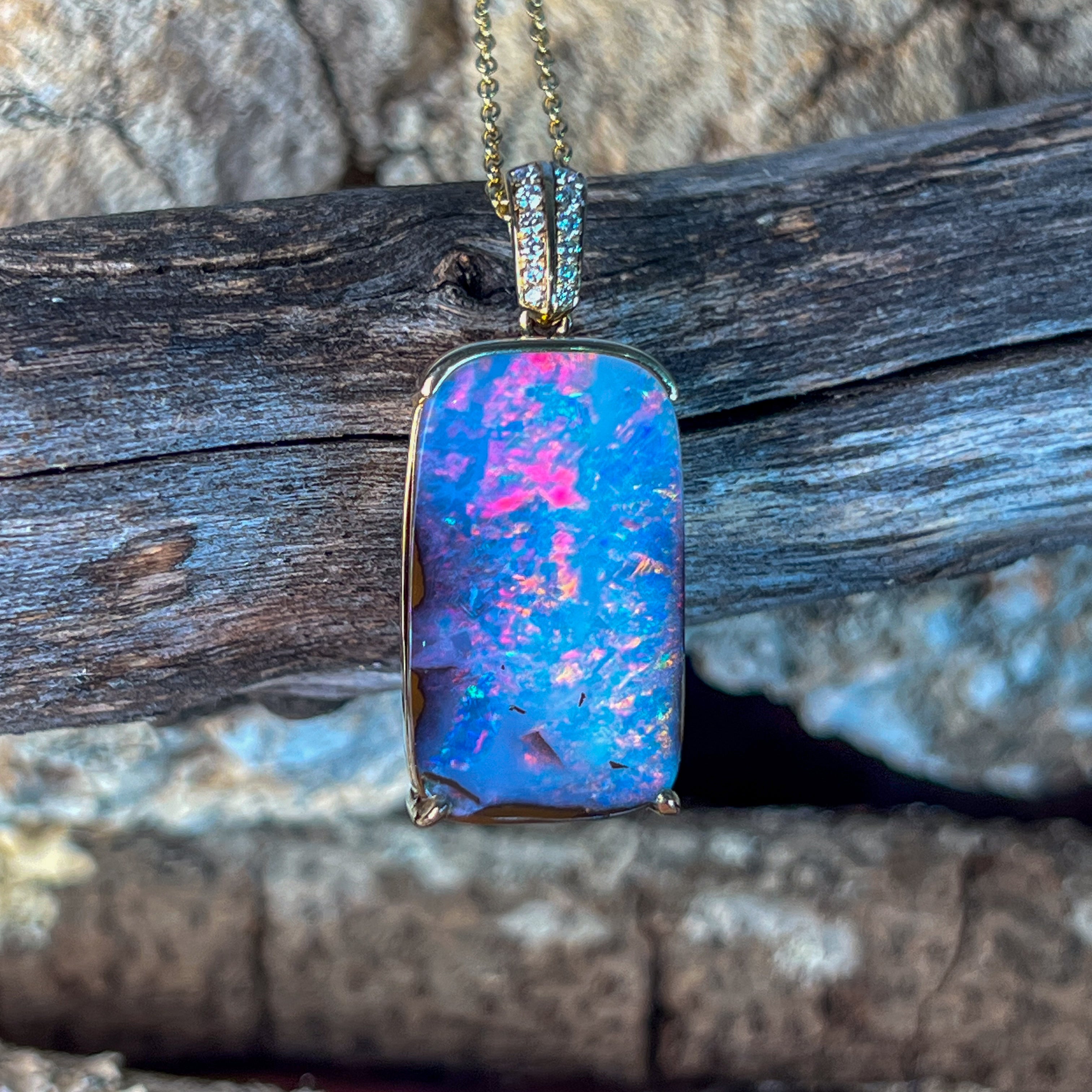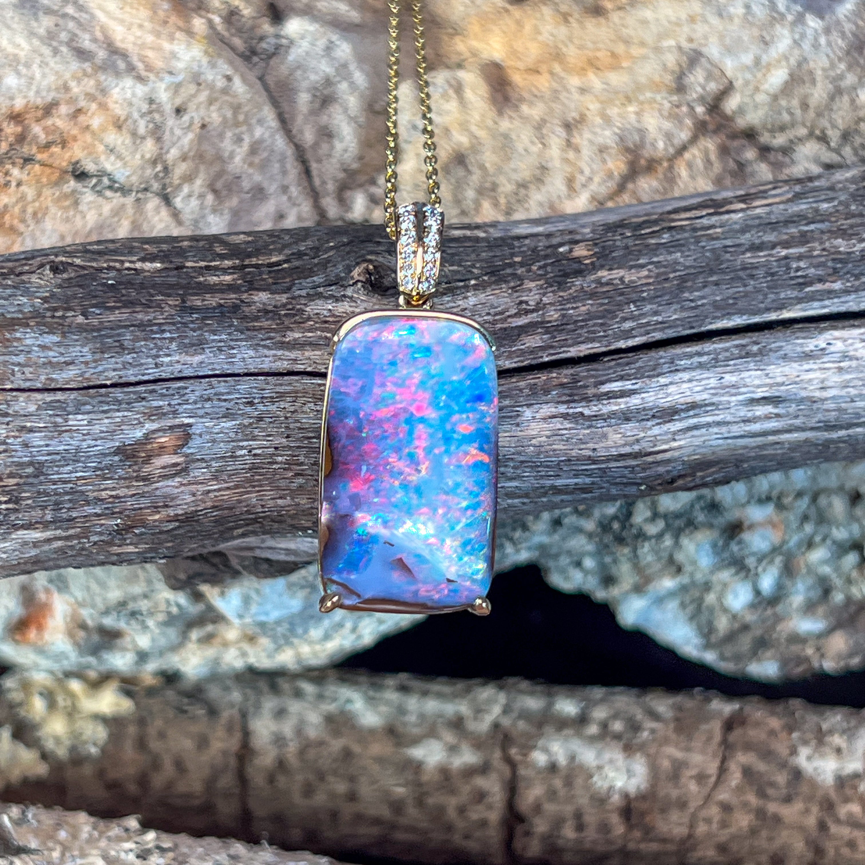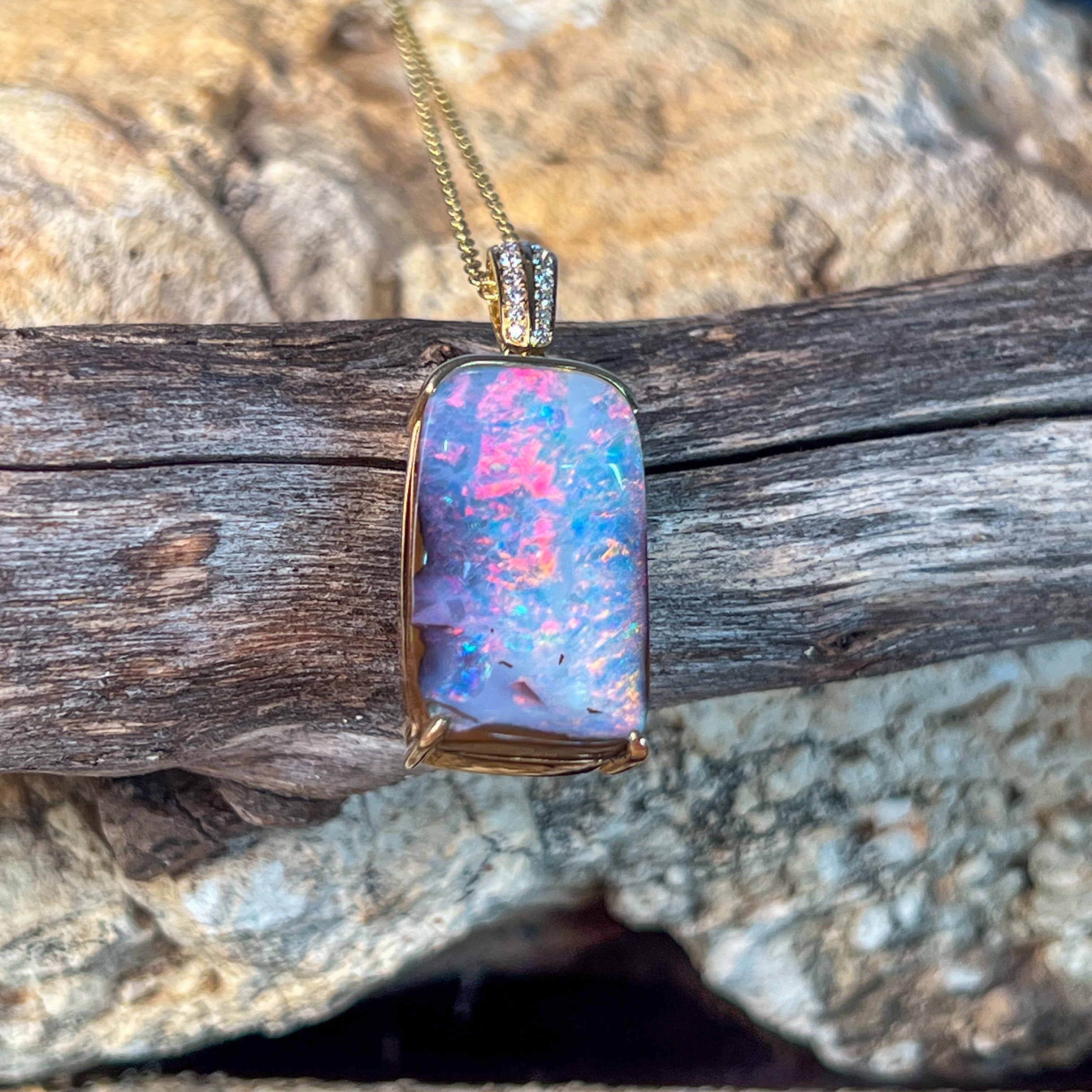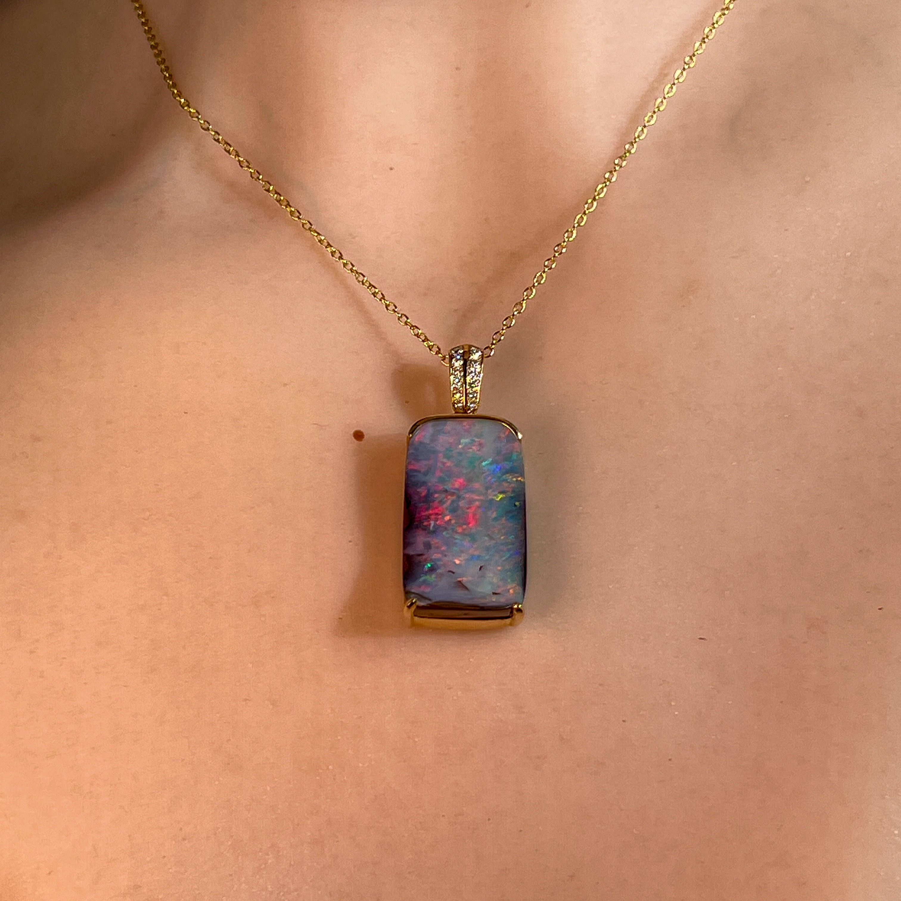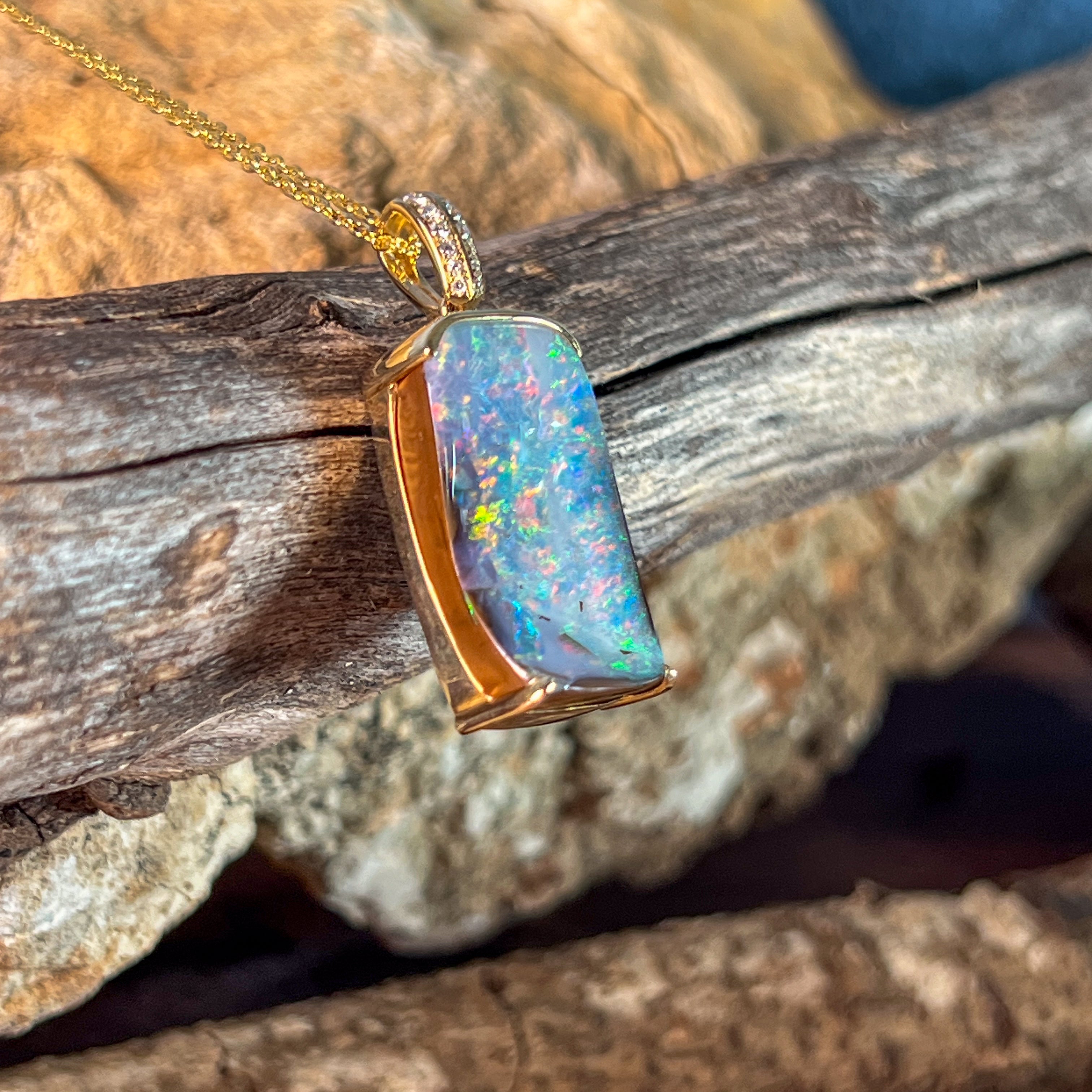 14kt Yellow Gold Boulder Opal 16.06ct rectangular pendant