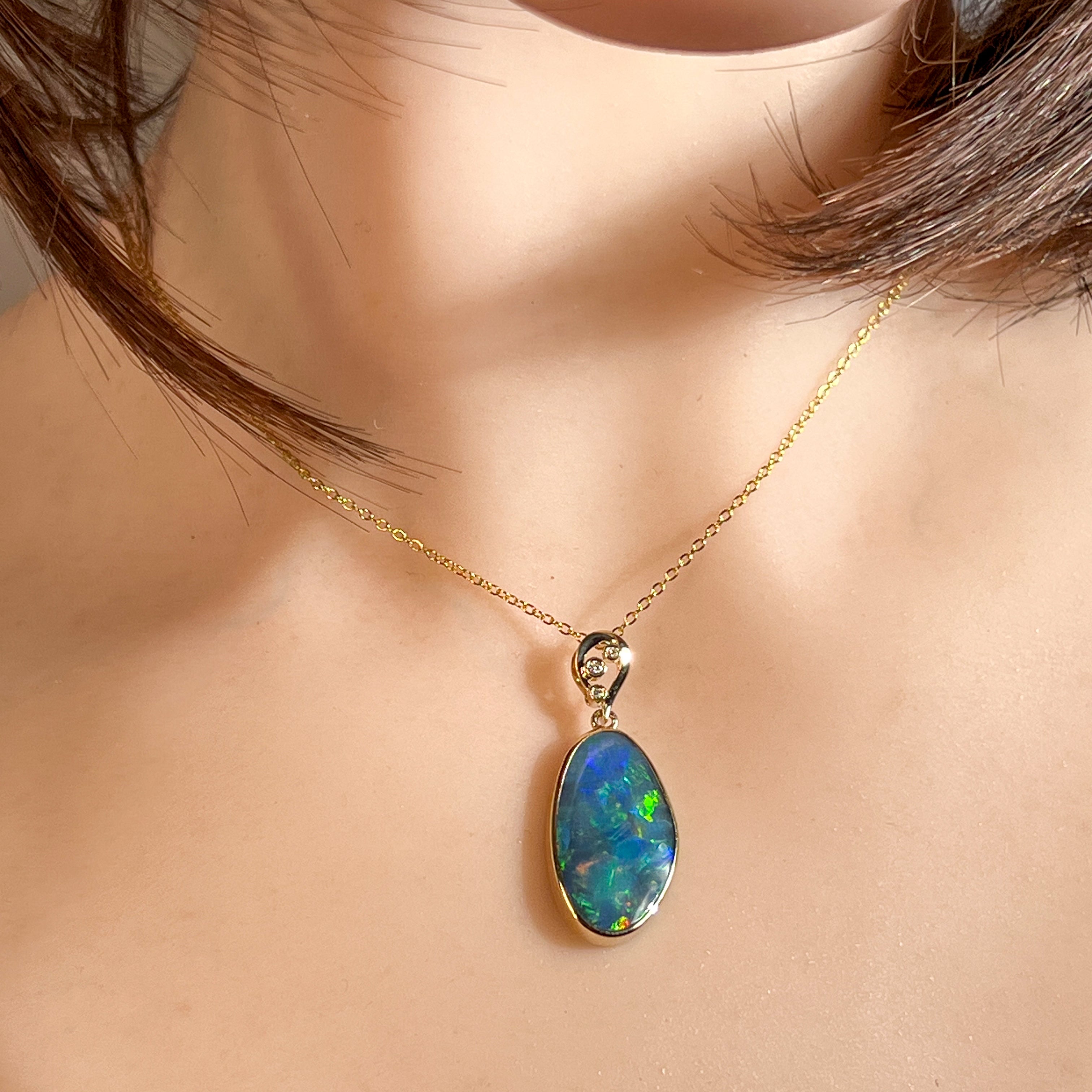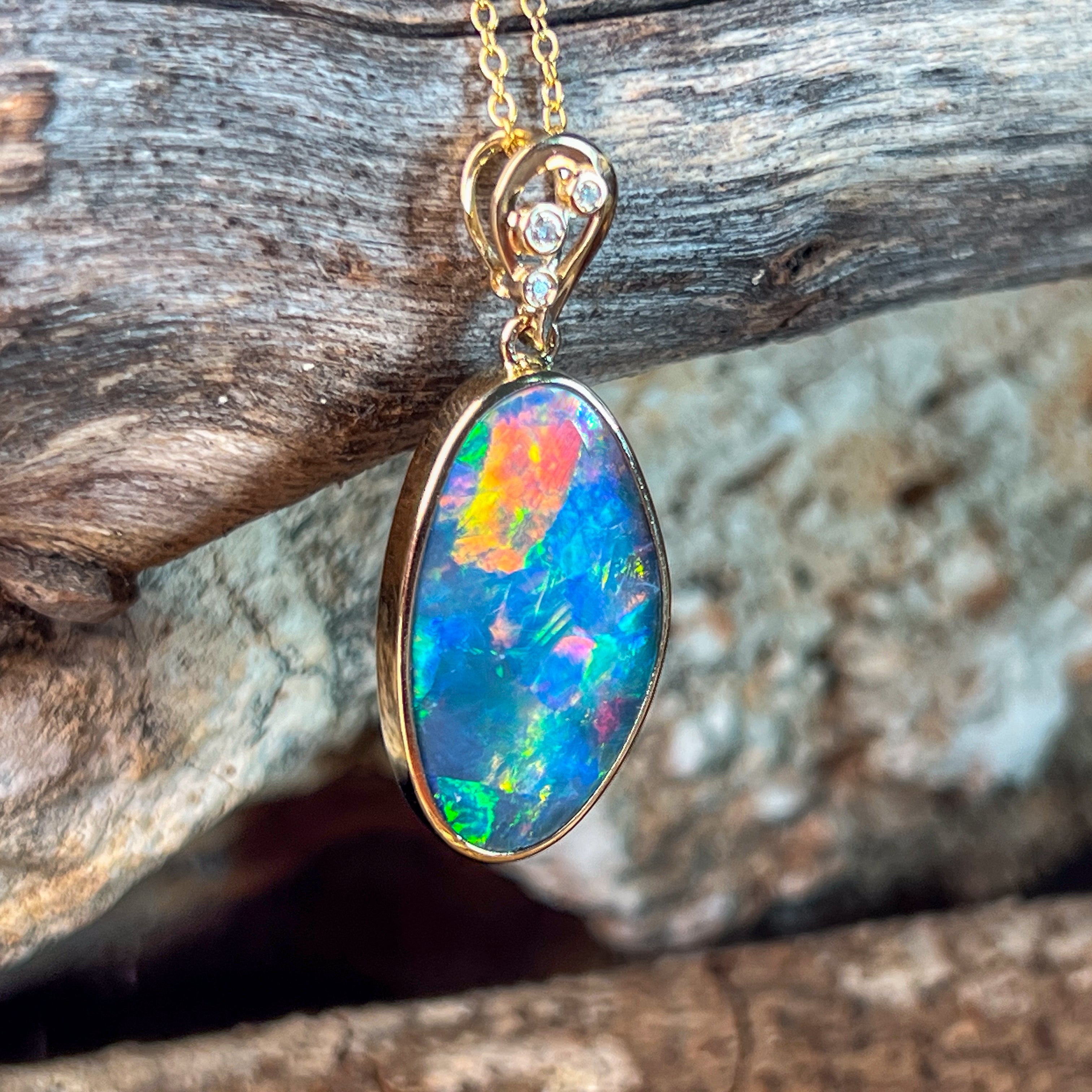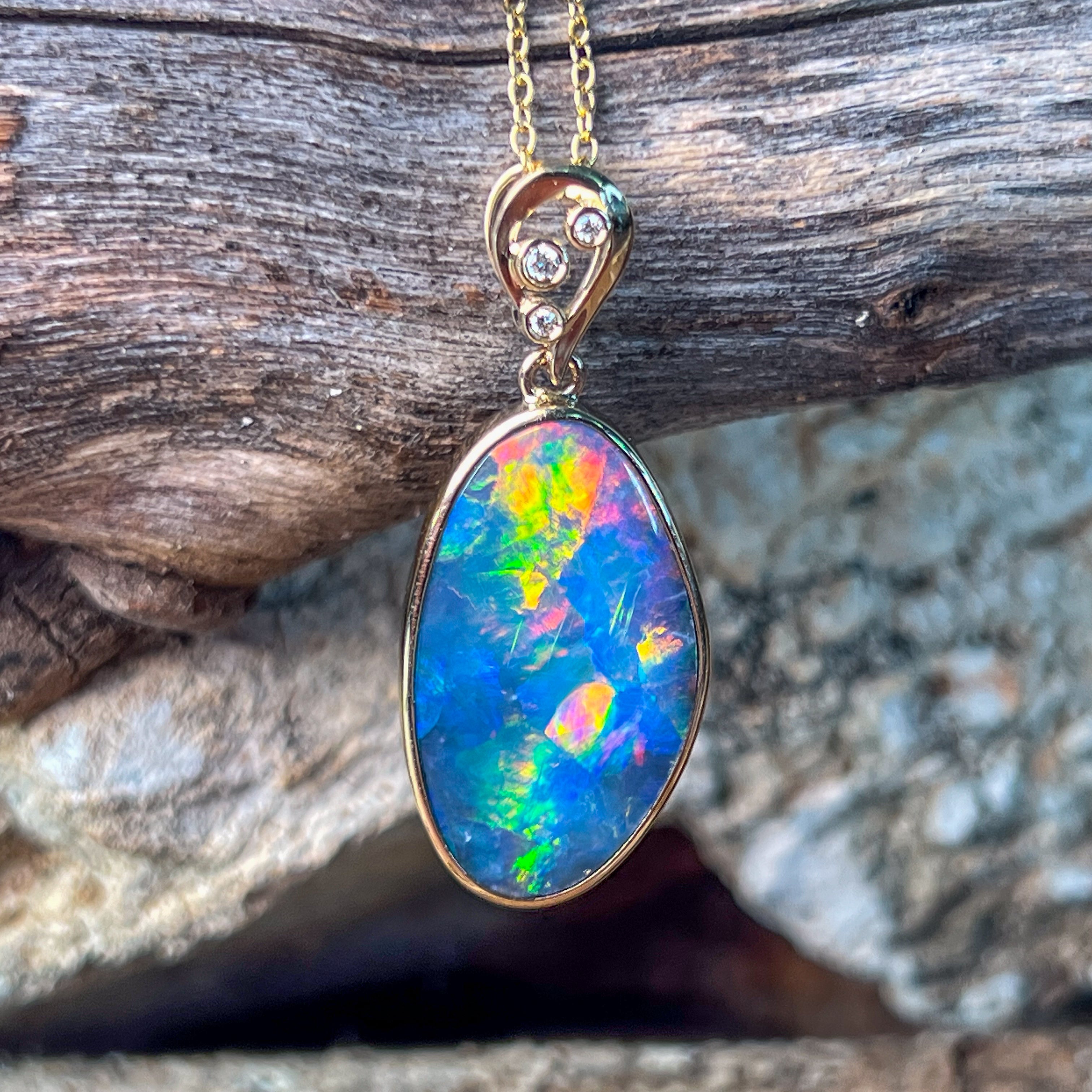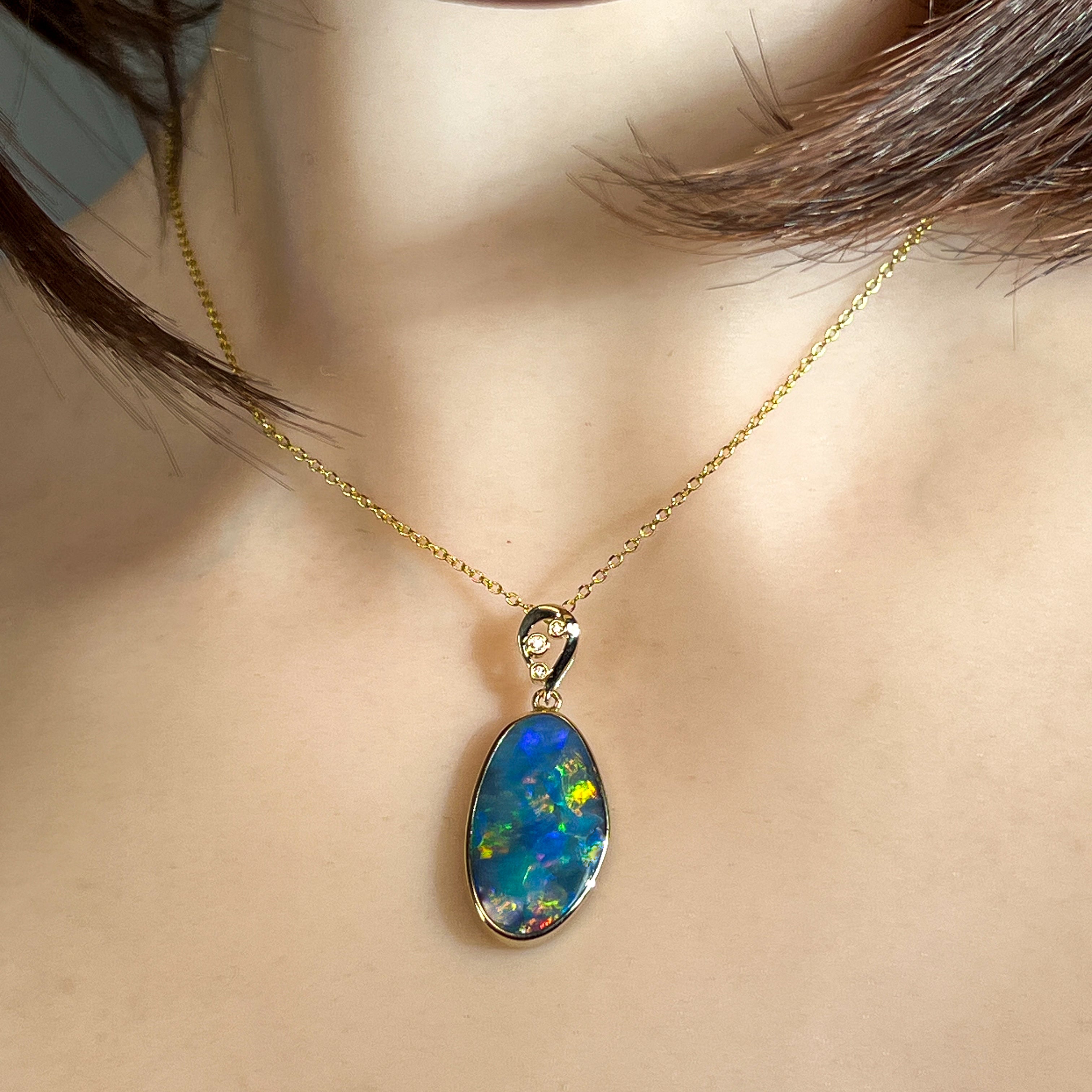 14kt Yellow Gold Opal doublet 8.5ct and diamond pendant