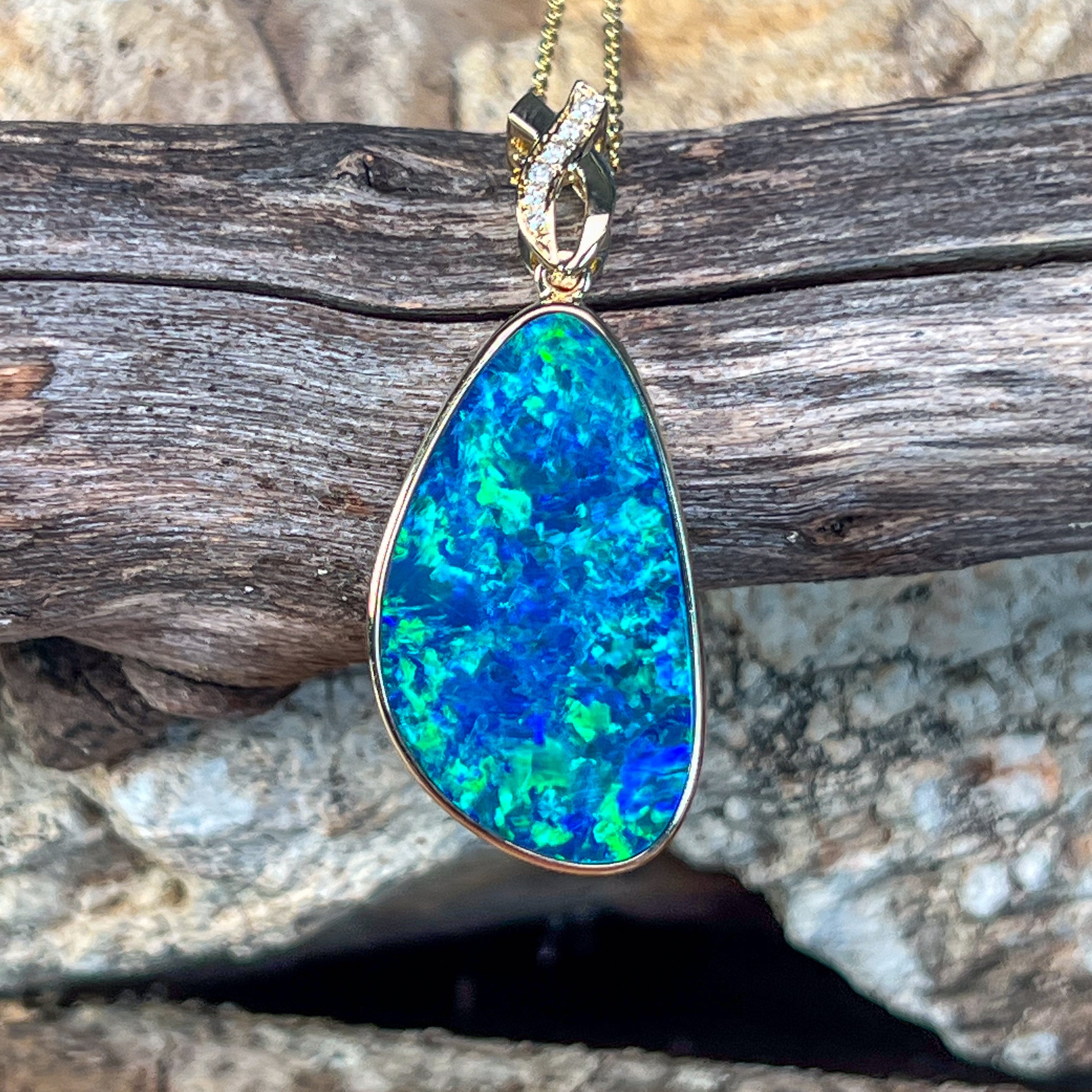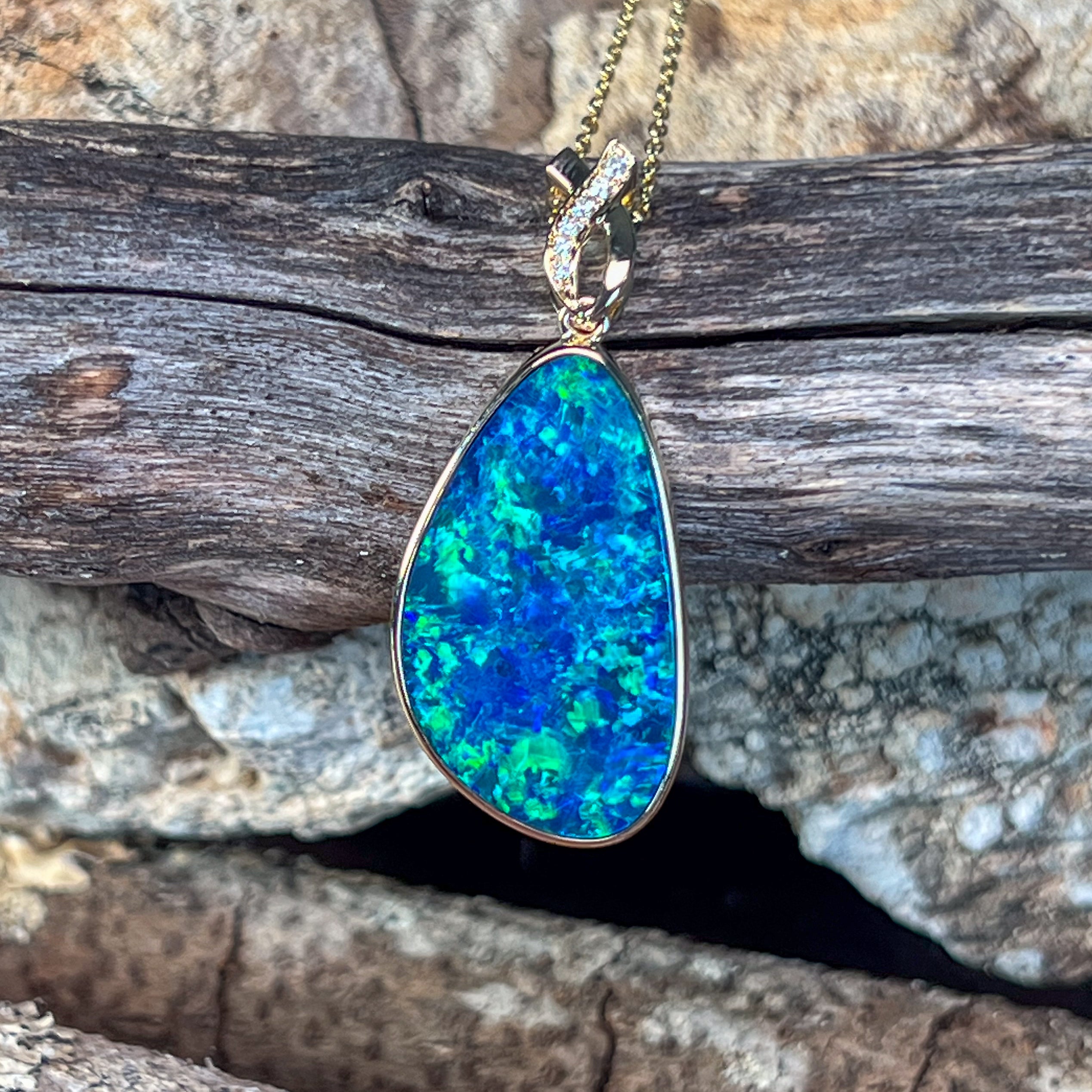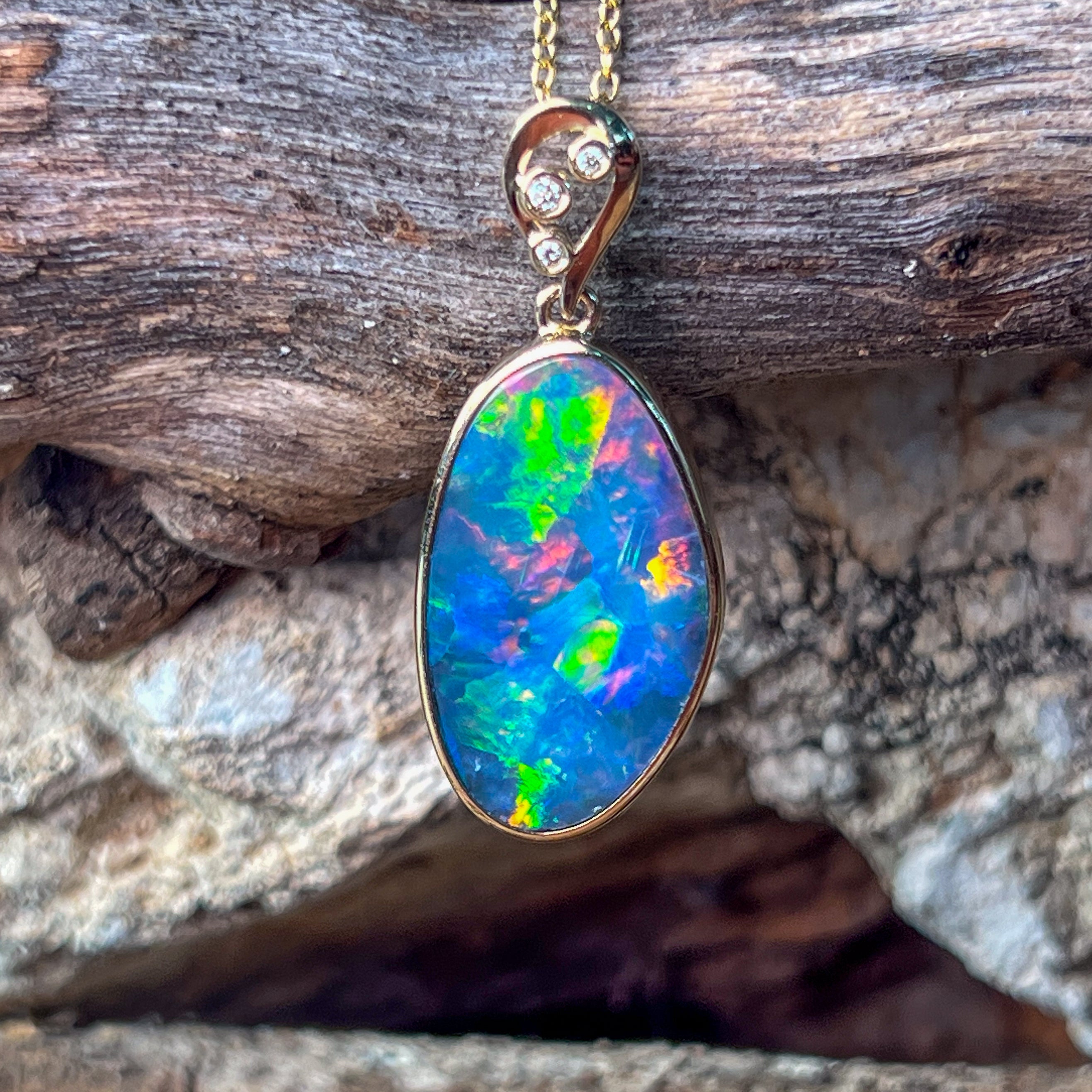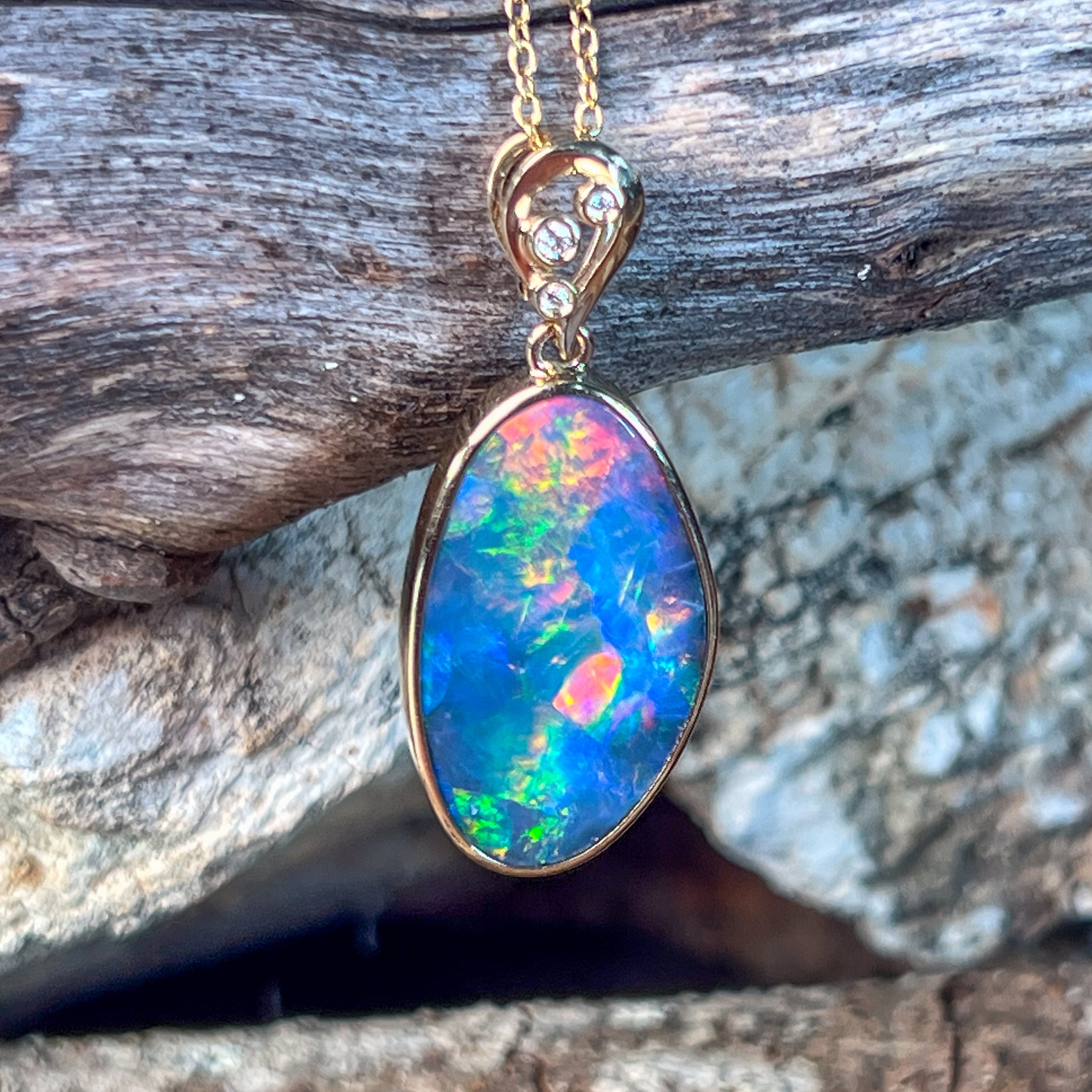 14kt Yellow Gold Opal doublet 8.5ct and diamond pendant