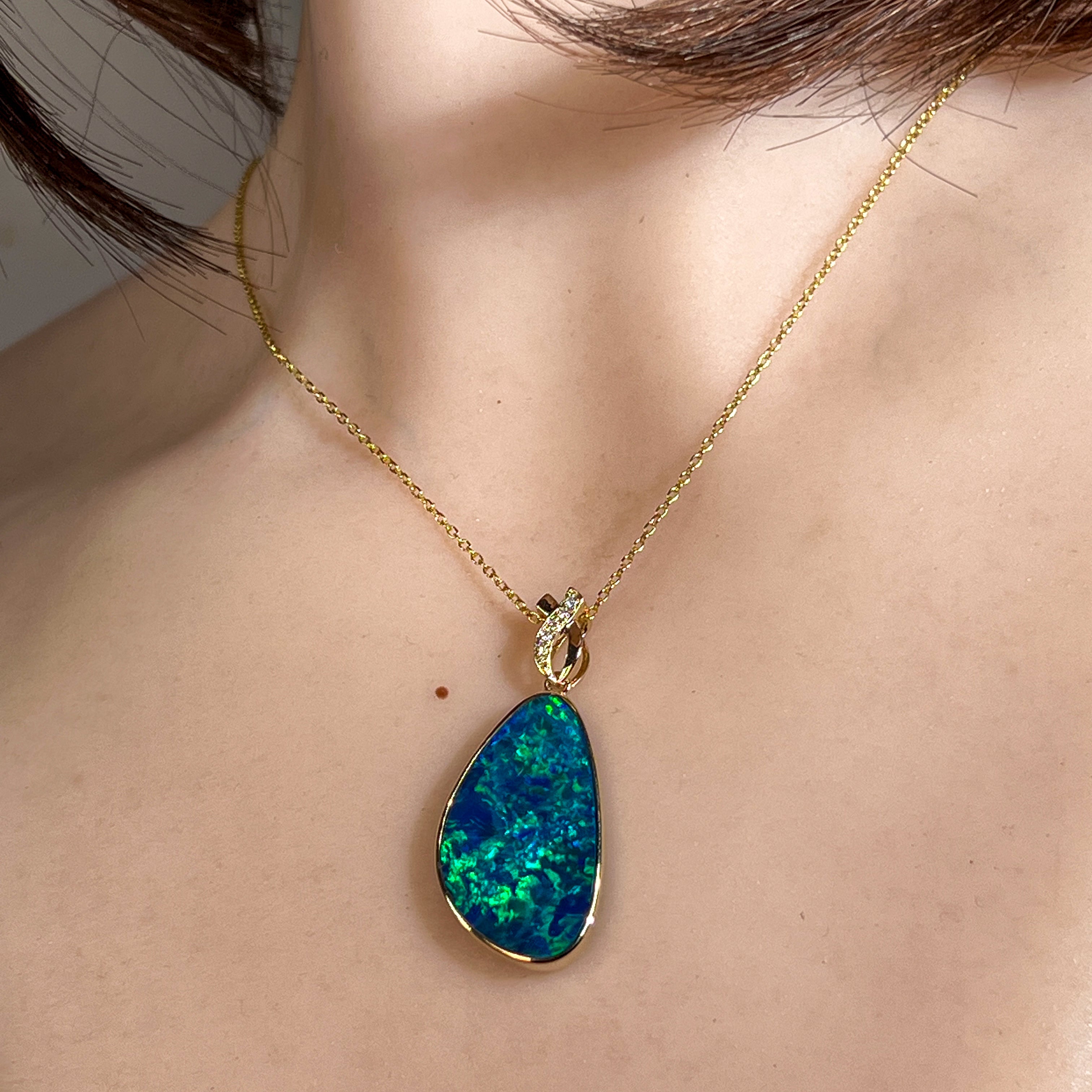 14kt Yellow Gold Opal doublet 7.35ct and diamond pendant