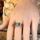 This stunning 14kt yellow gold eternity ring is where timeless elegance meets modern flair. The split band design creates an eye-catching silhouette, while a gorgeous opal takes centre stage surrounded by a rainbow of colourful gemstones. Perfect for those who refuse to choose between classic and bold, this designer piece celebrates individuality with every sparkle. A true masterpiece for the jewellery lover who wants their ring to do the talking.