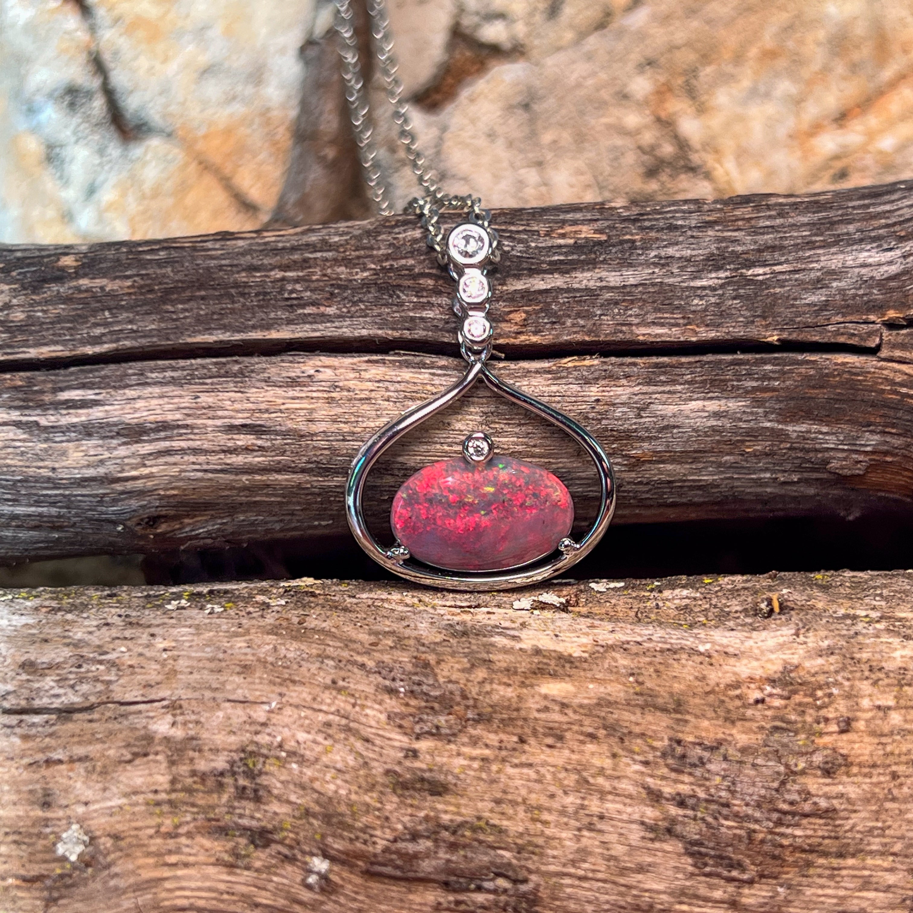 14kt White Gold Black Opal 2.68ct and Sapphire pendant
