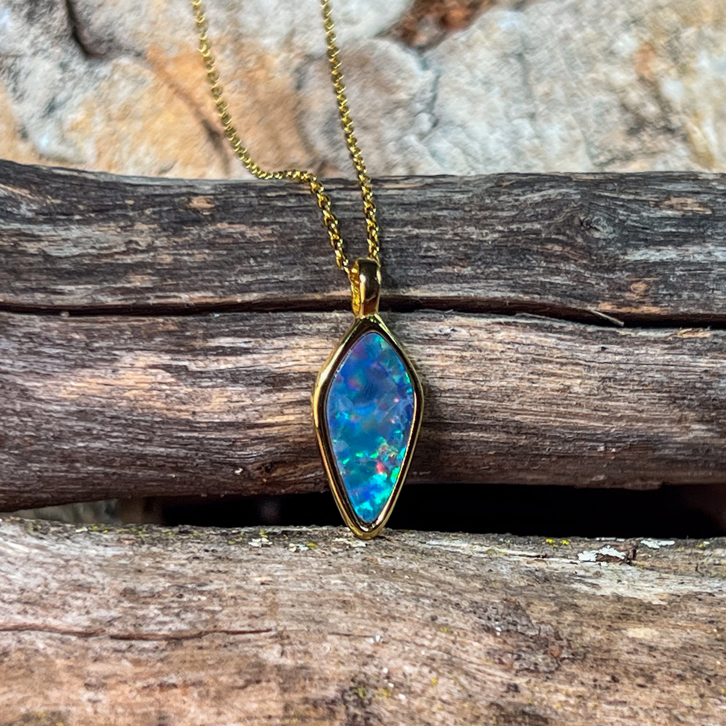 Gold Plated Silver kite shaped Opal doublet bezel set pendant