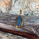 This exquisite opal doublet pendant showcases nature's most captivating colour play in a striking red-blue palette. Crafted from sterling silver with luxurious gold plating, the elongated design creates an elegant silhouette that catches light beautifully. The vibrant opal doublet displays those mesmerising colour shifts that make each piece uniquely yours. Perfect for adding sophistication to any jewellery collection, this pendant combines timeless craftsmanship with the raw beauty of genuine opal. A statement piece that transforms any outfit into something truly extraordinary.