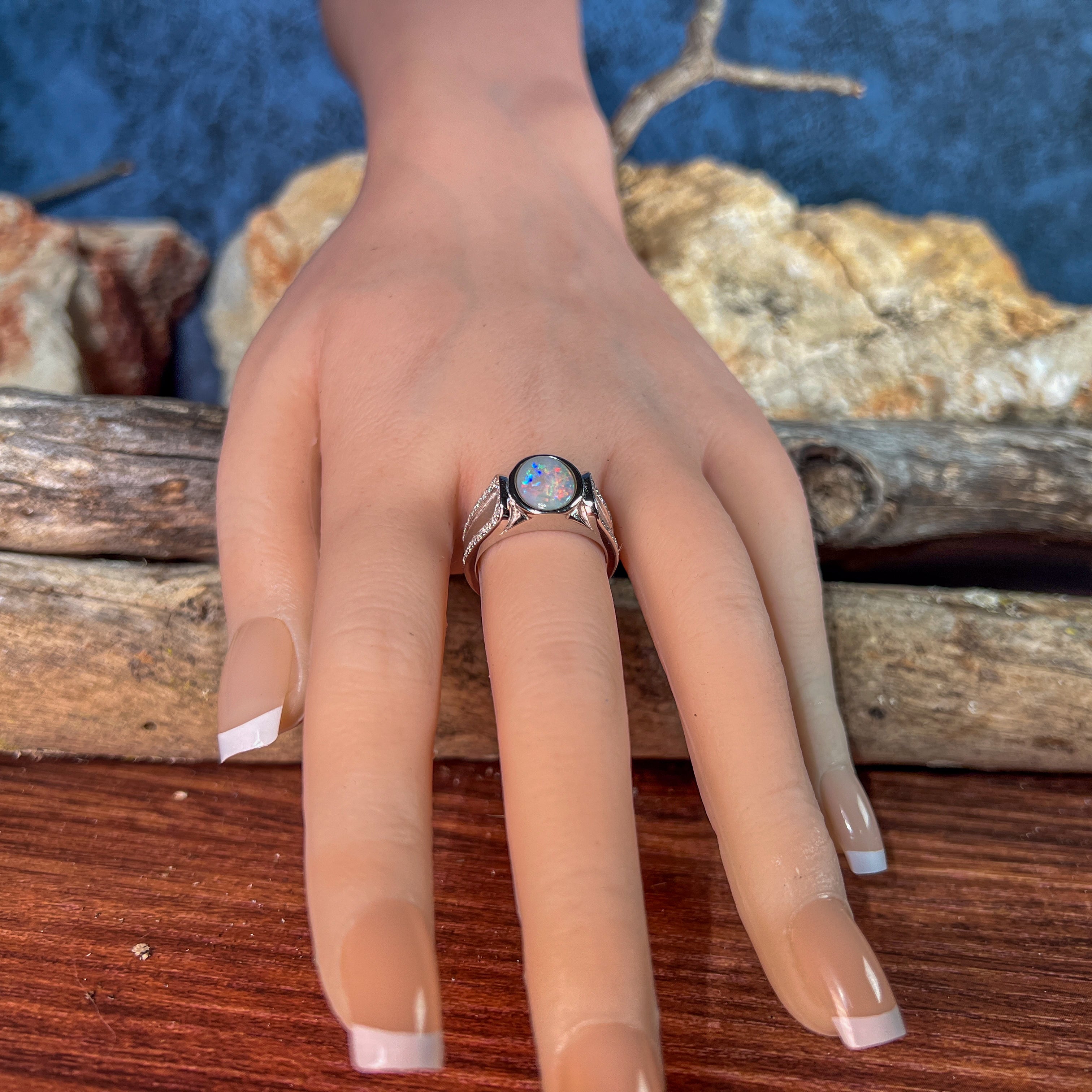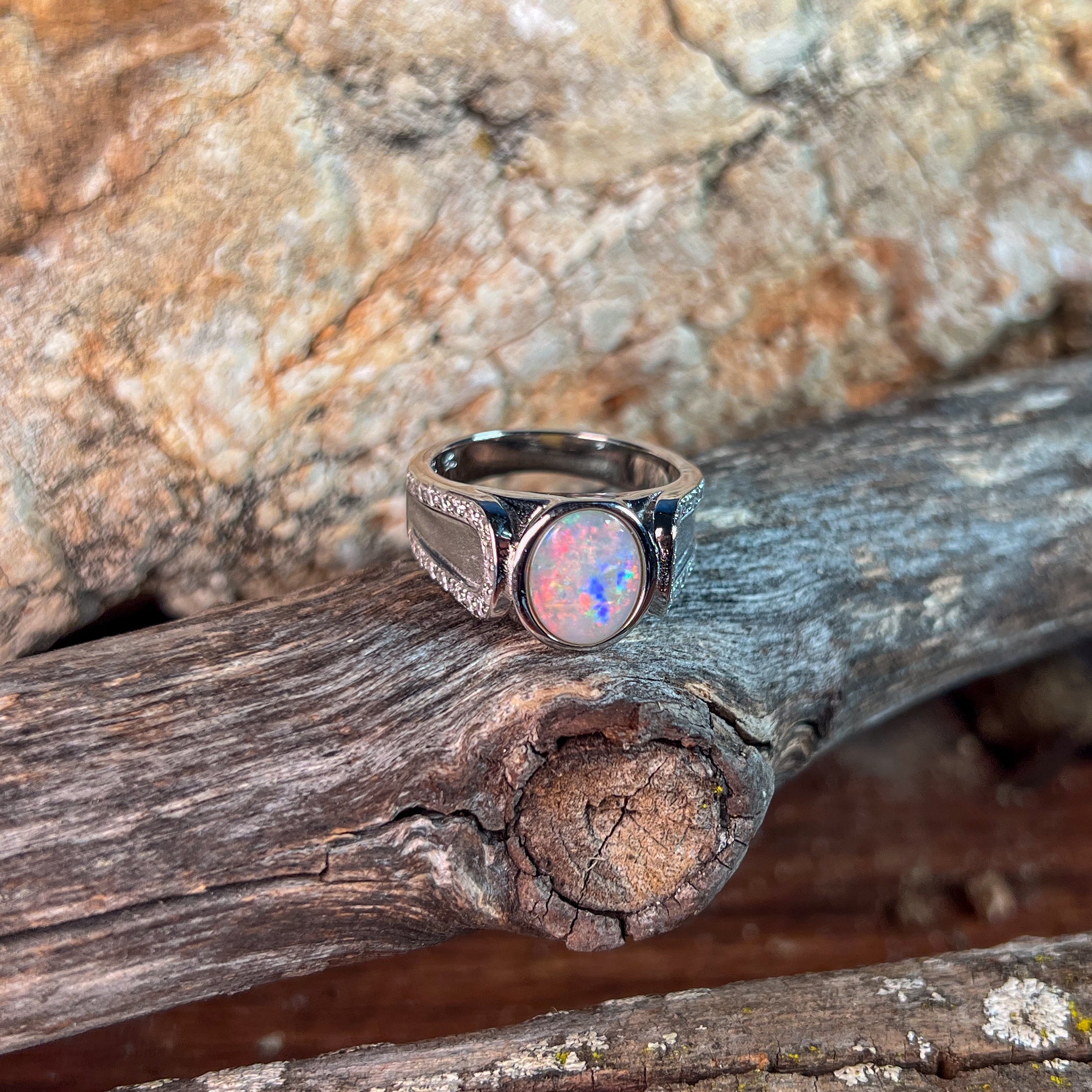 Elevate your style with this sterling silver ring featuring a luminous 10x8mm white opal. The matte finish adds a modern, sophisticated touch, making it perfect for both everyday wear and special occasions. Experience subtle elegance and timeless beauty in one exquisite piece.