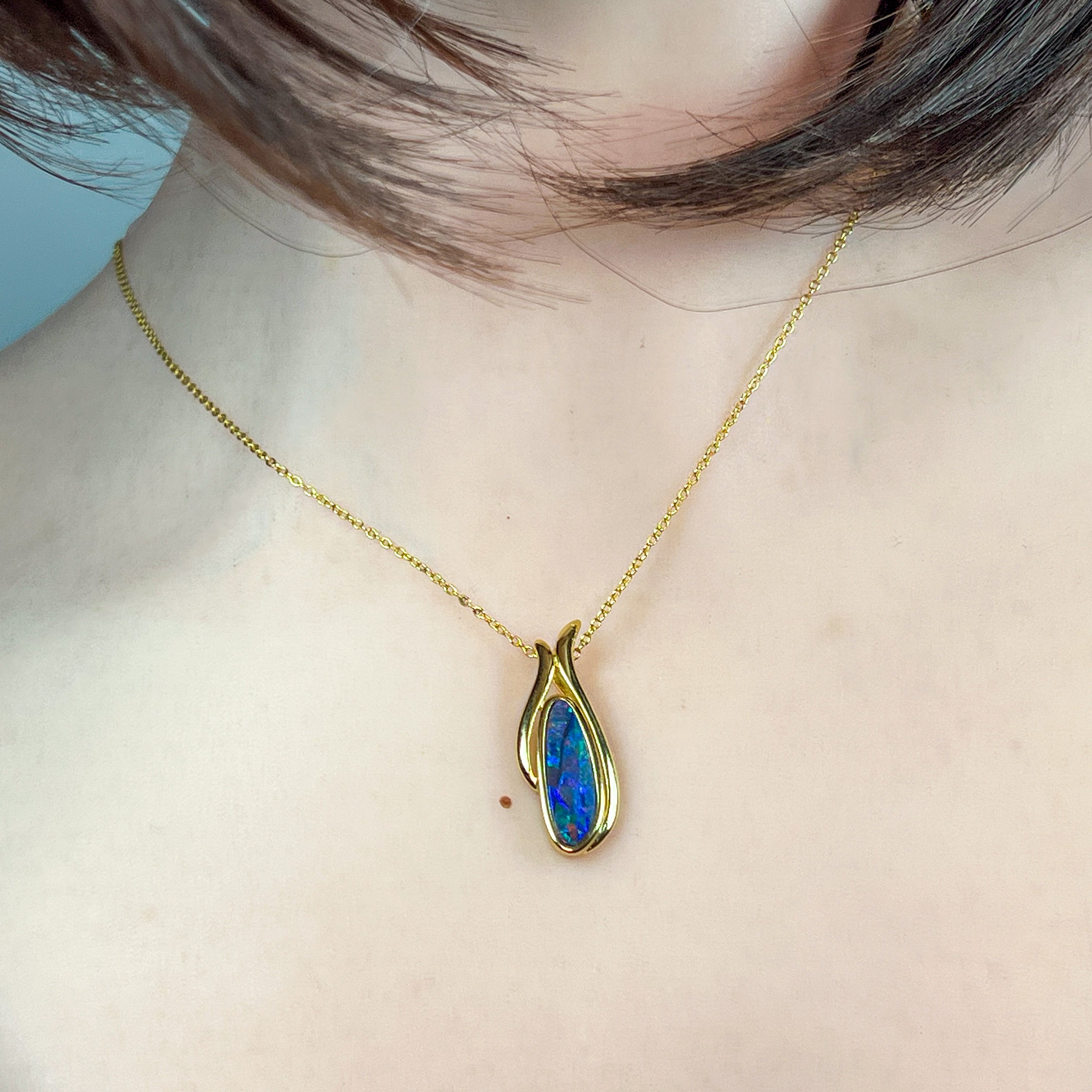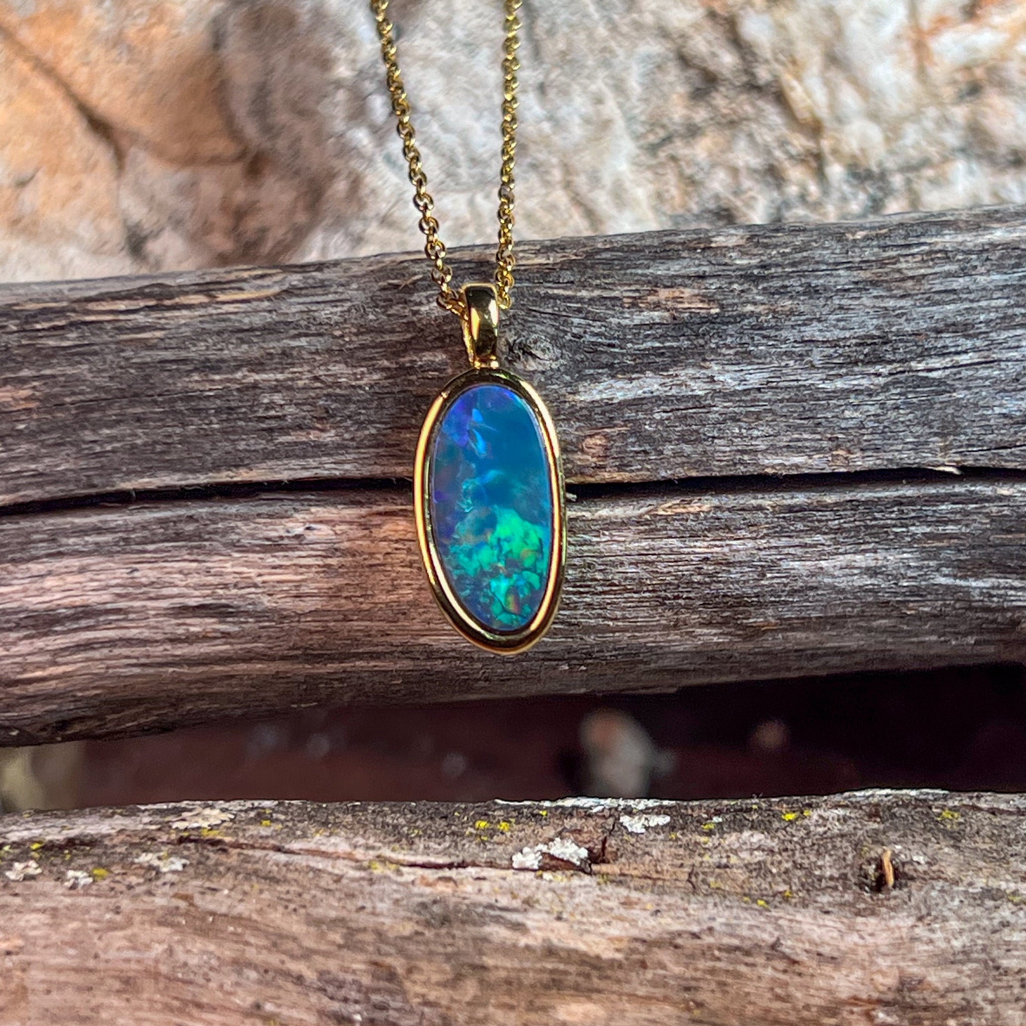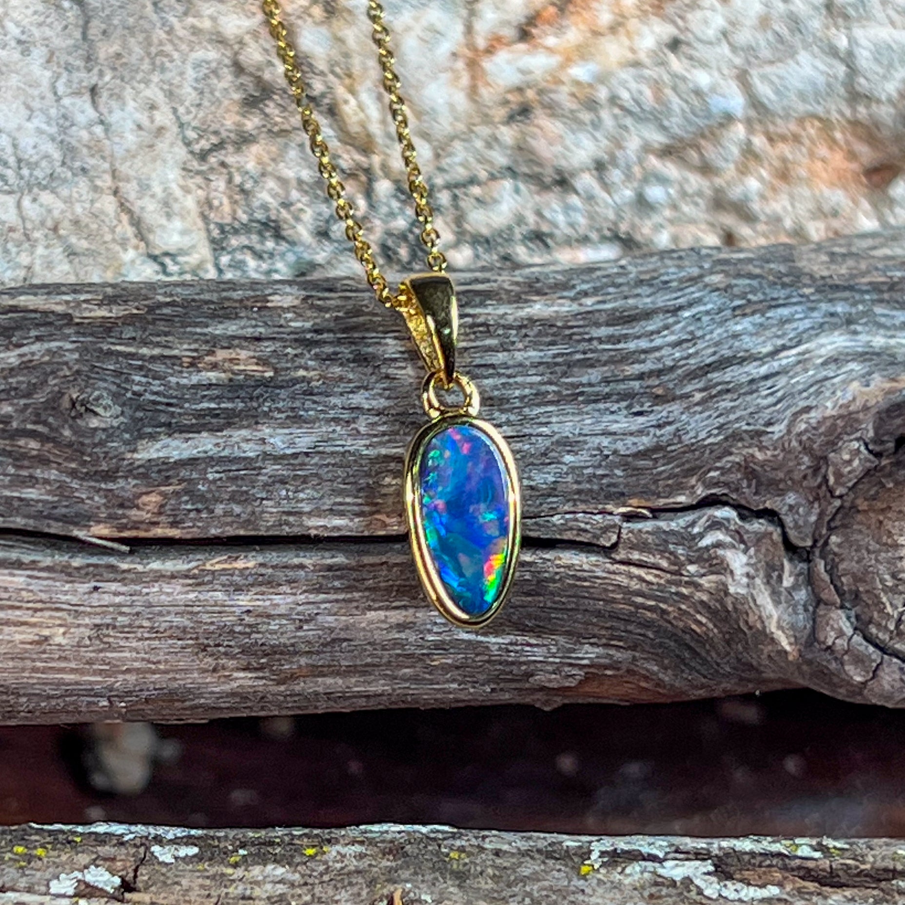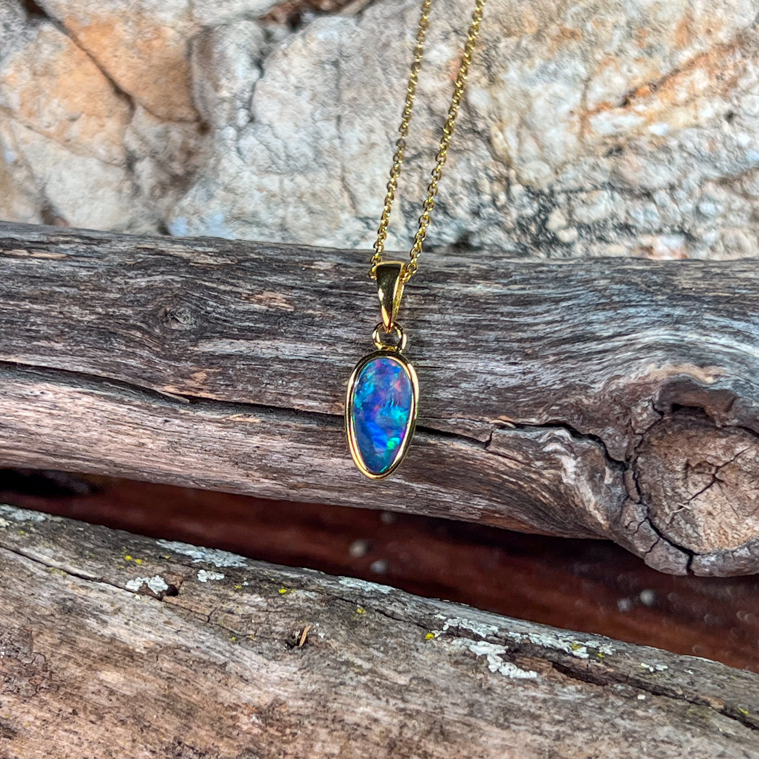 Gold Plated Silver freeform long shaped Opal doublet pendant