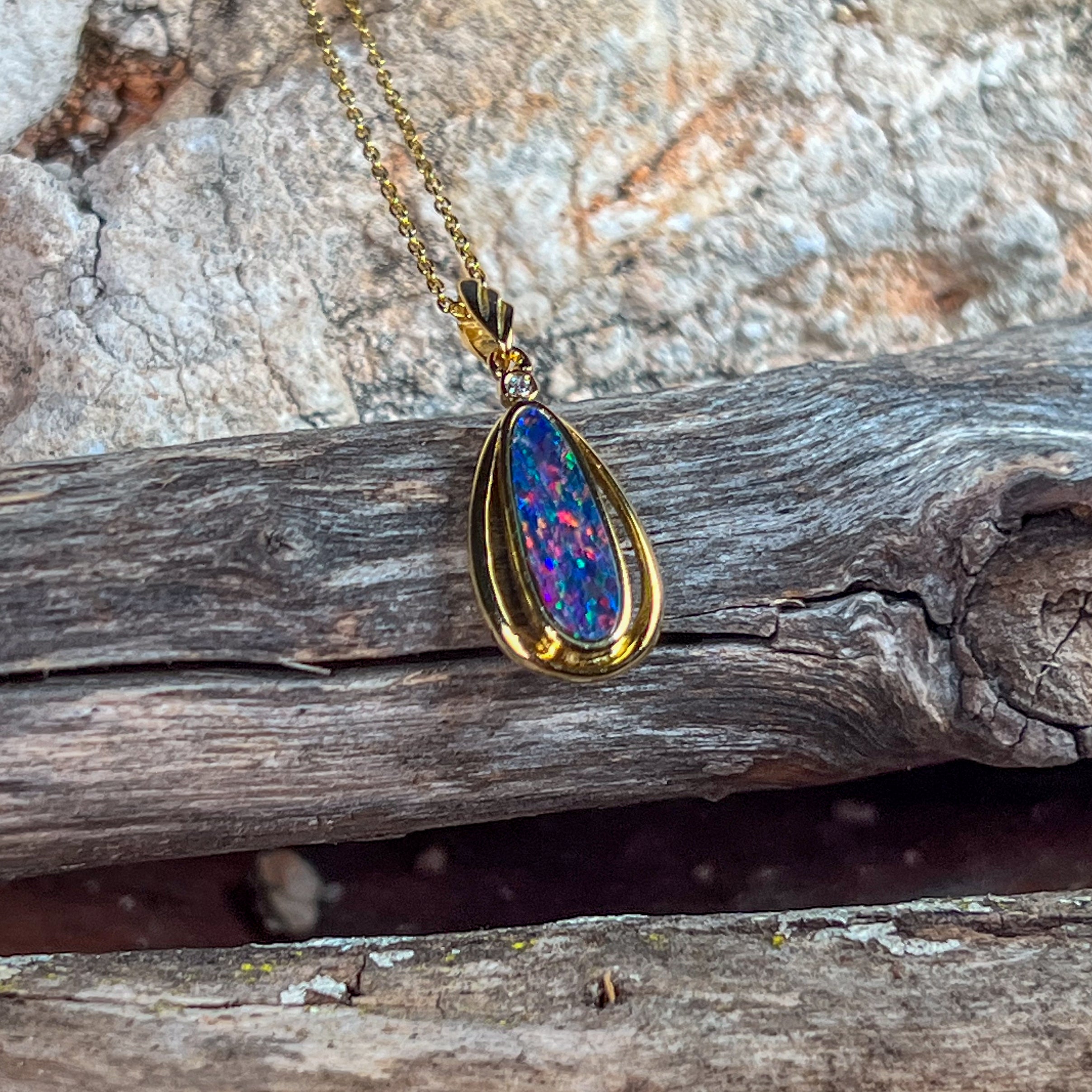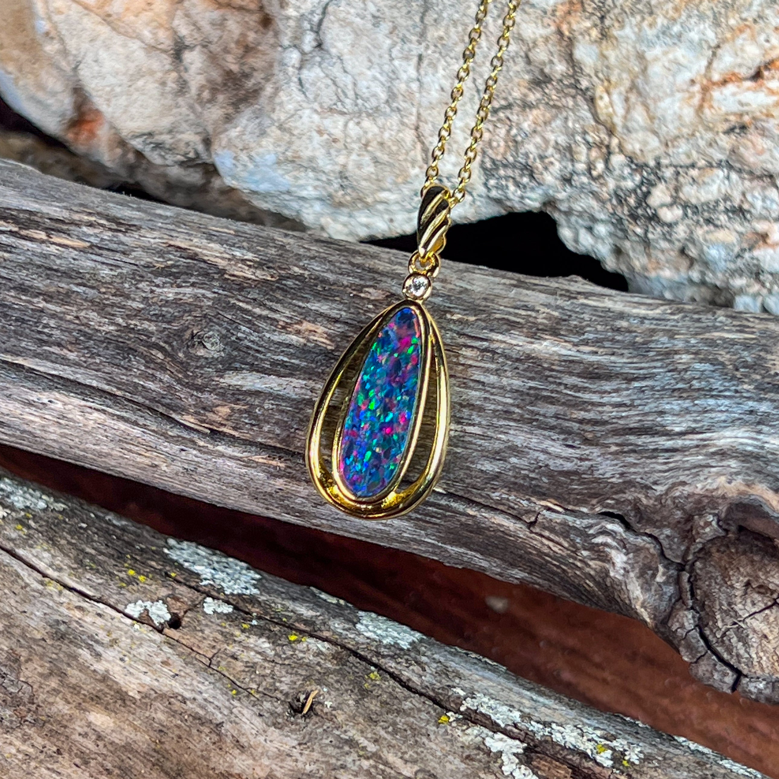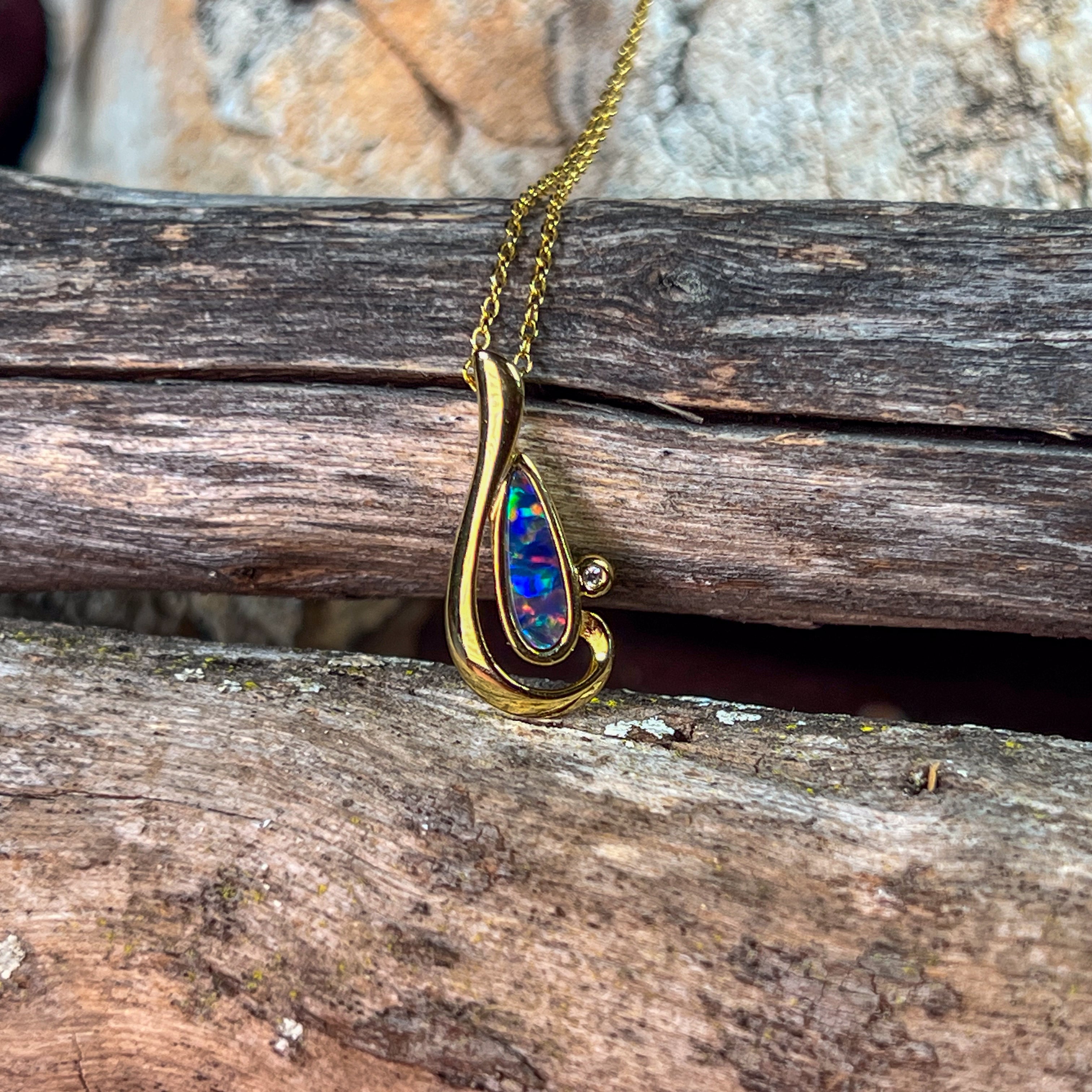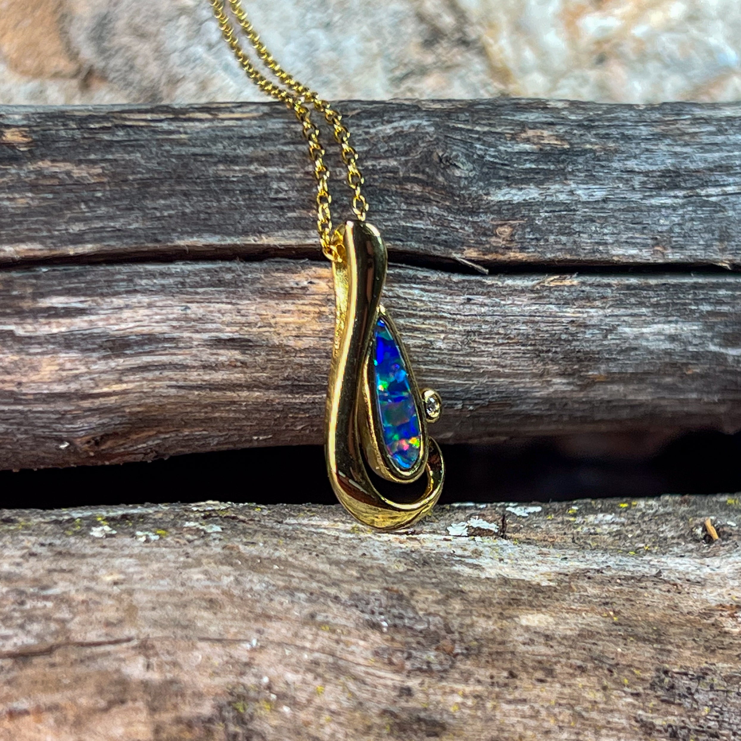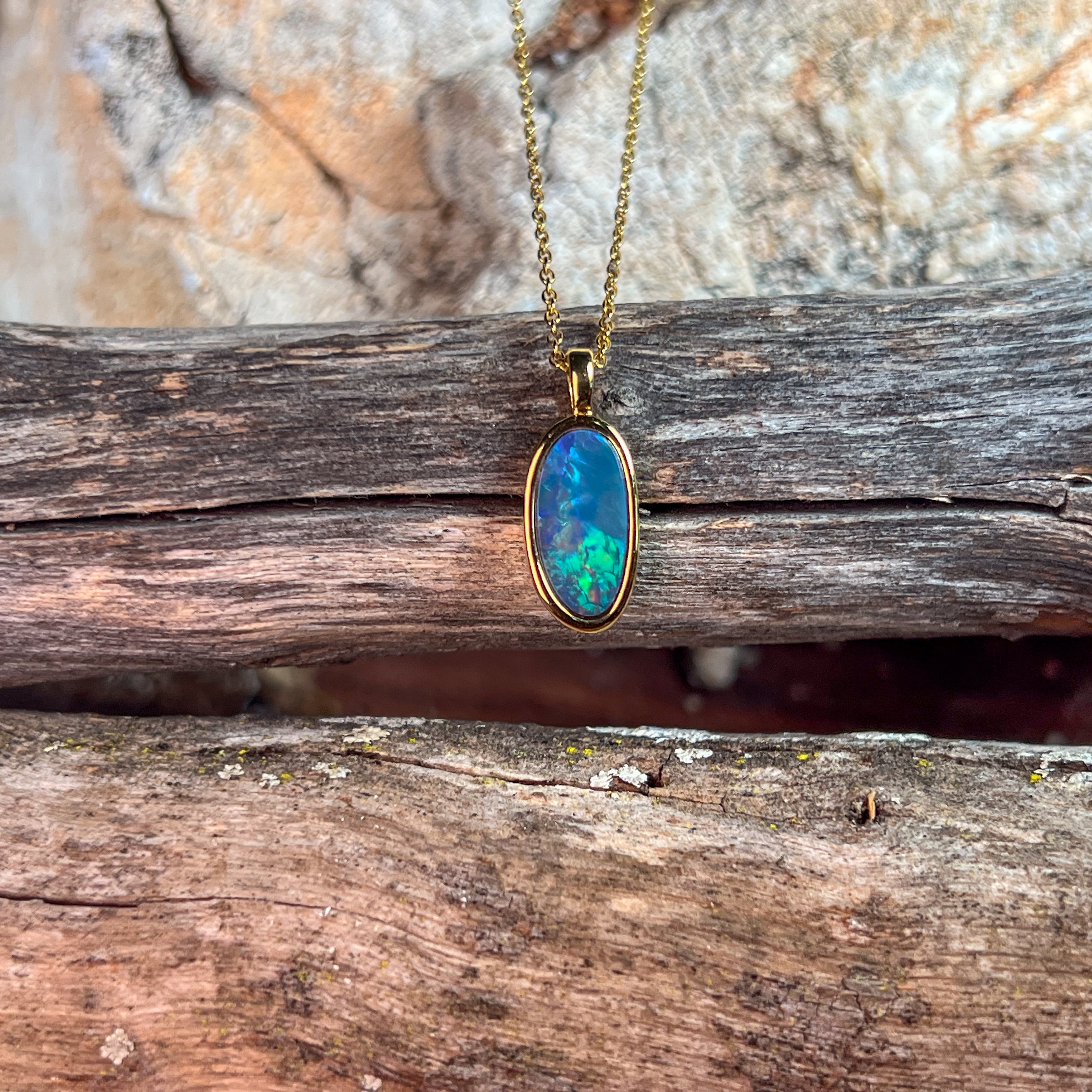 Gold Plated Silver freeform long shaped Opal doublet pendant