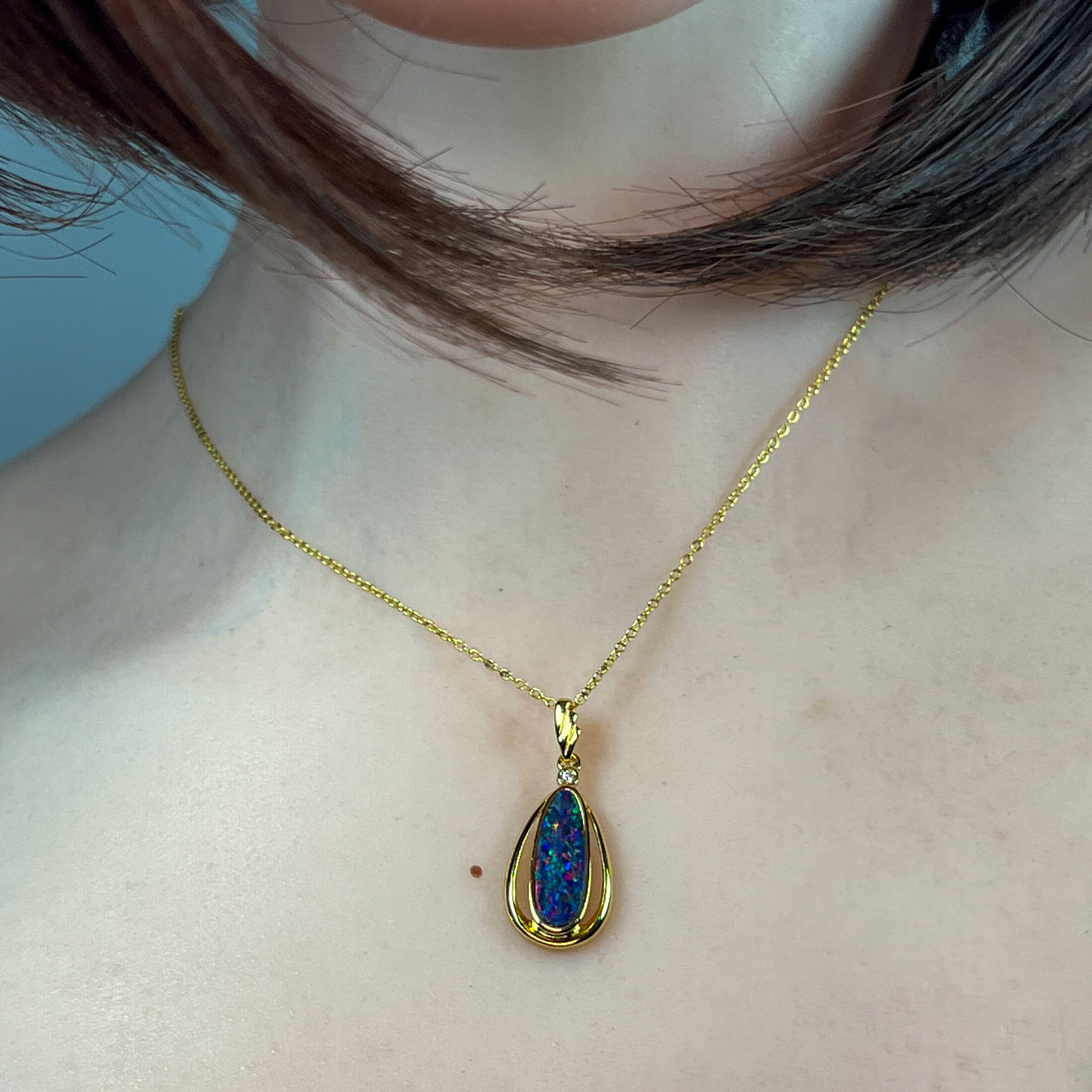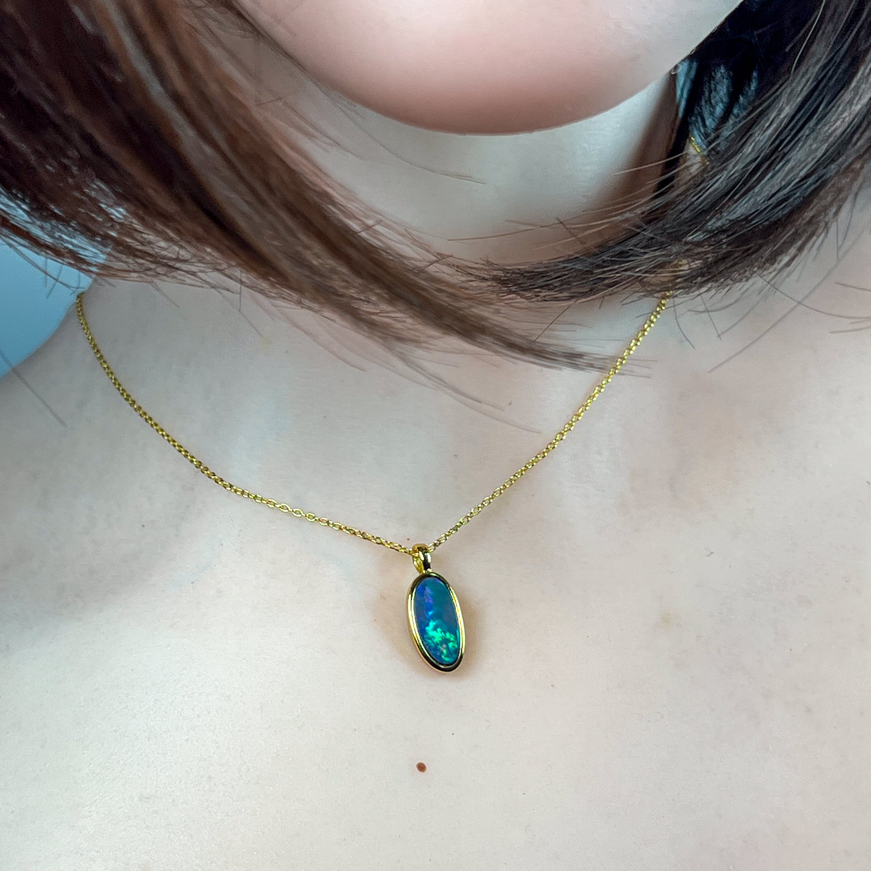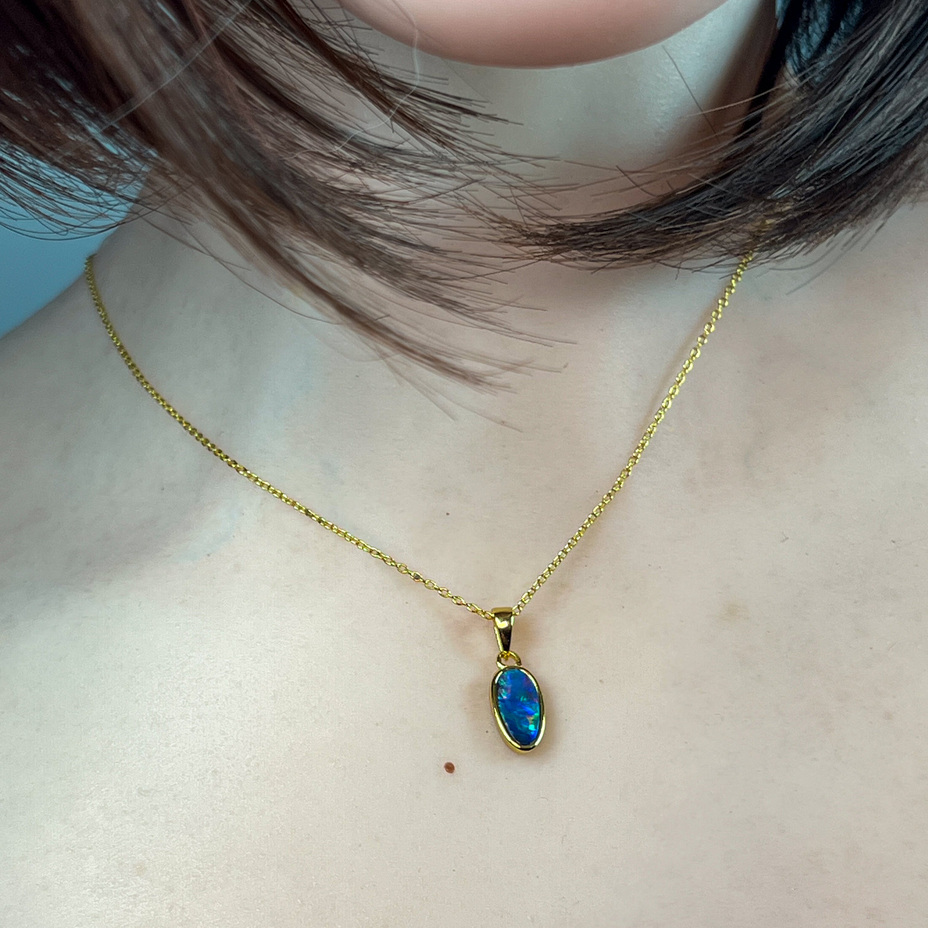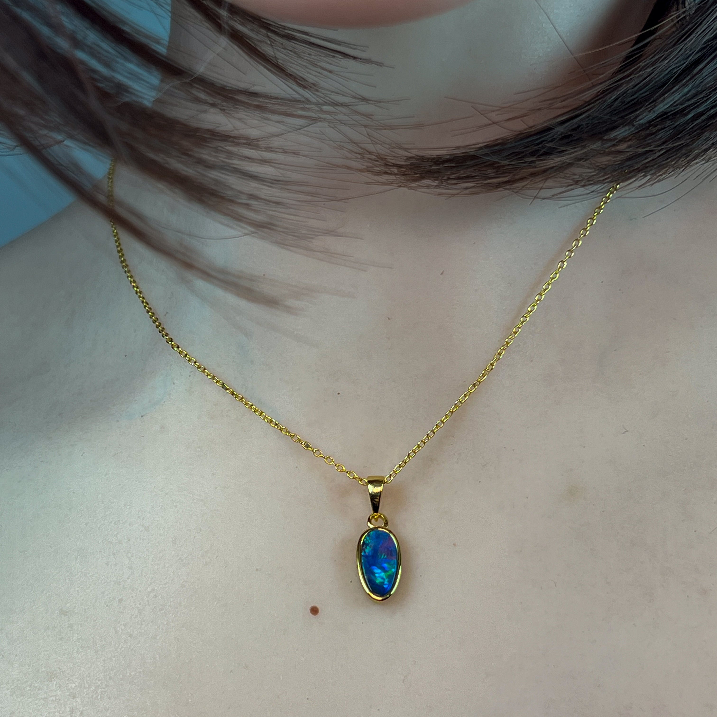 Gold Plated Sterling Silver Long shape Opal doublet pendant