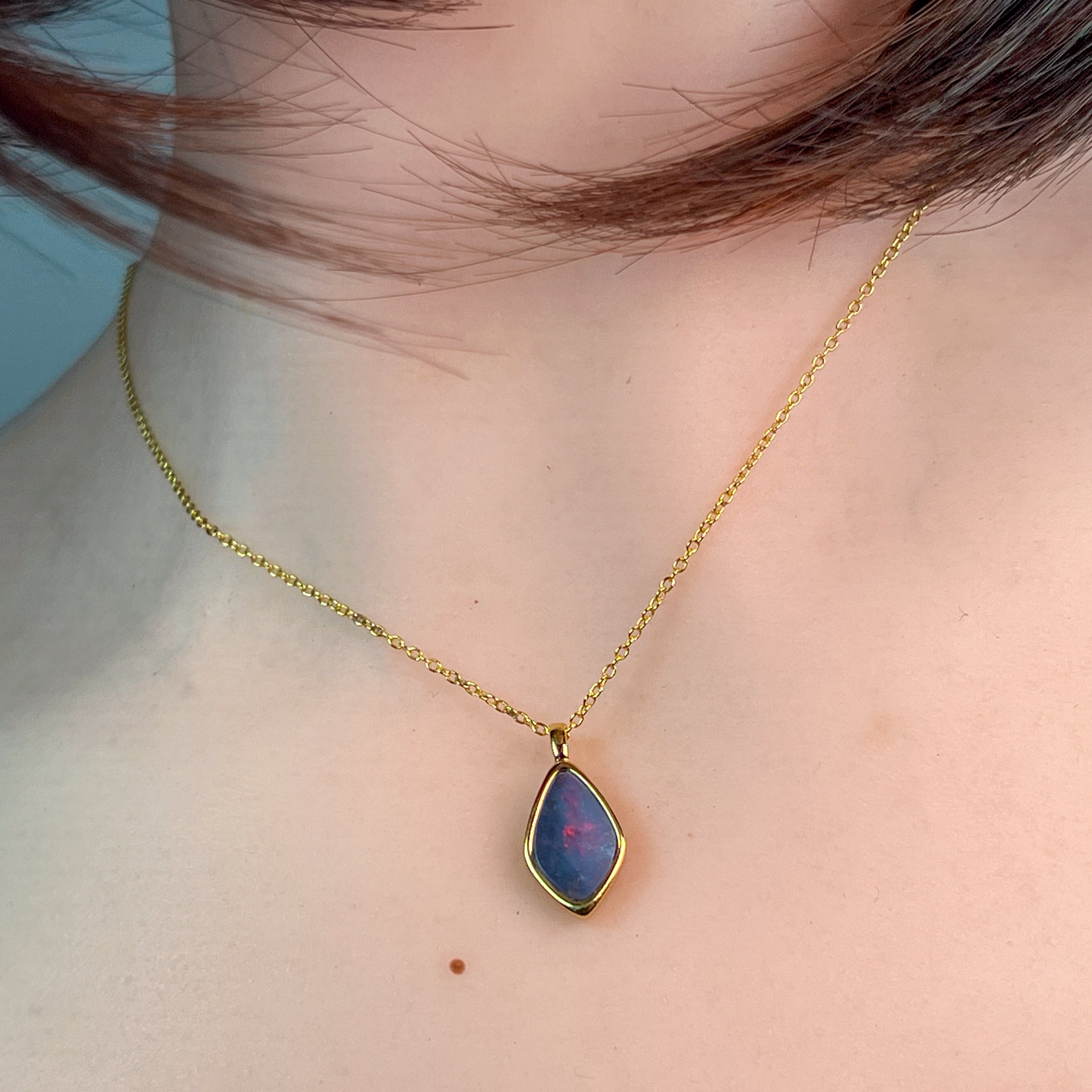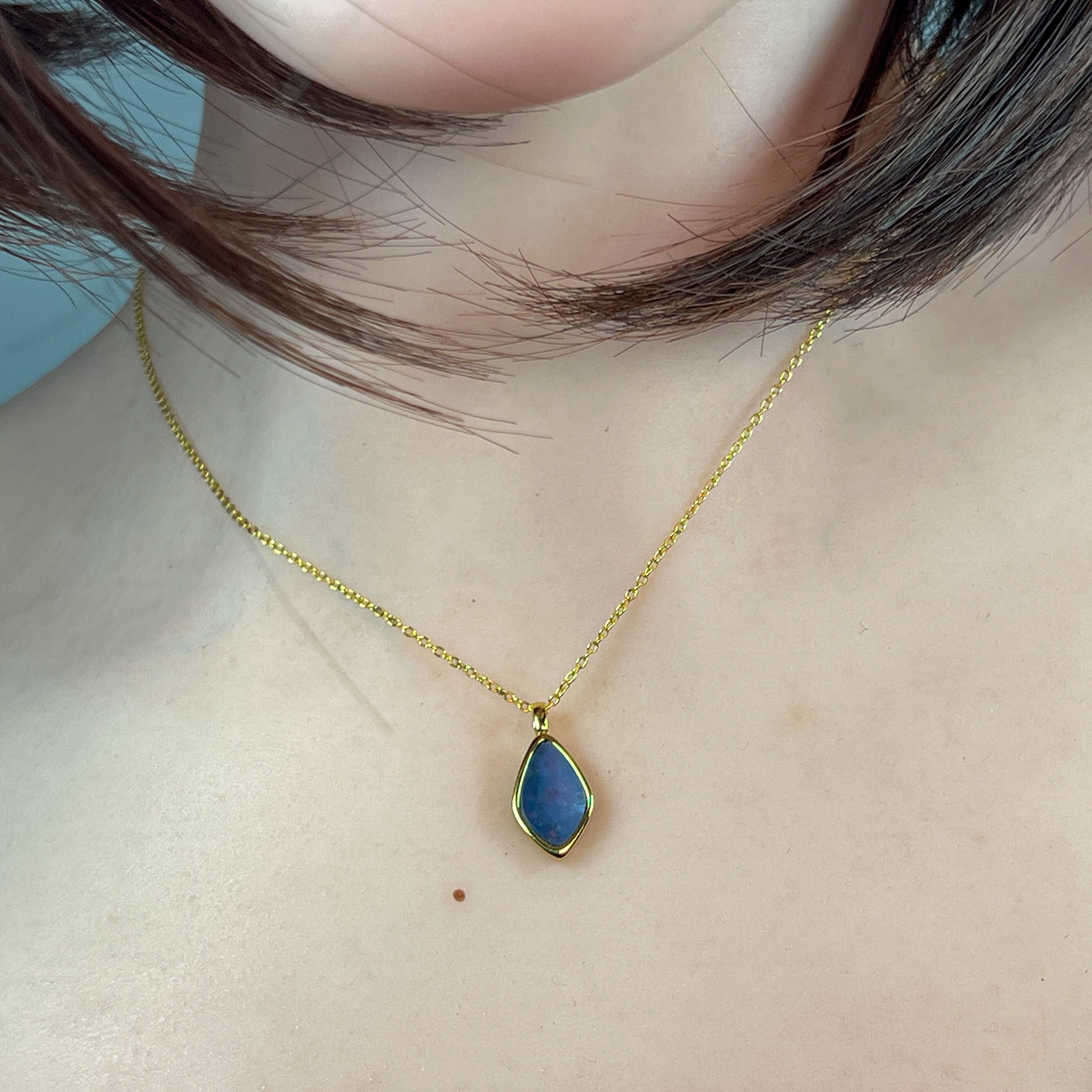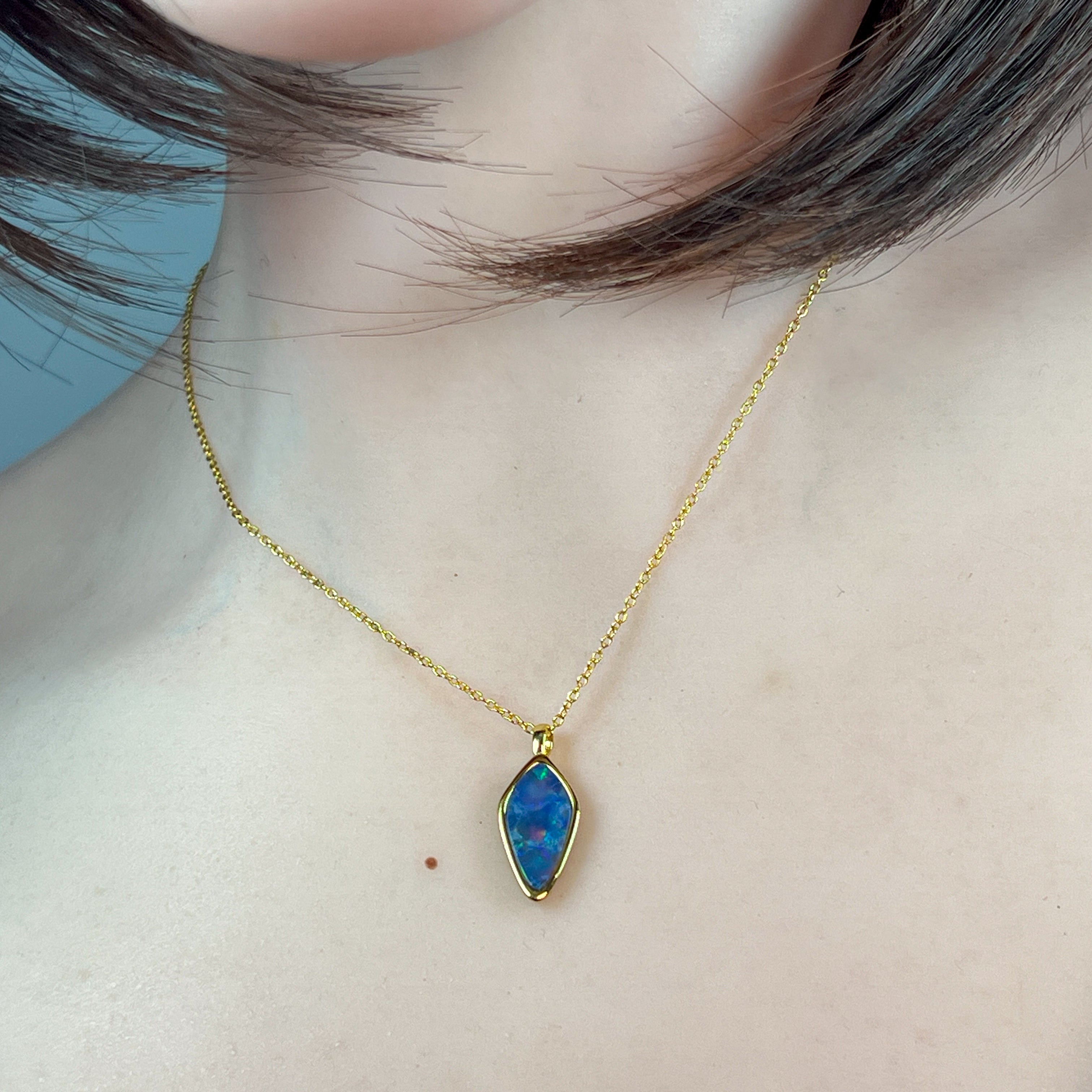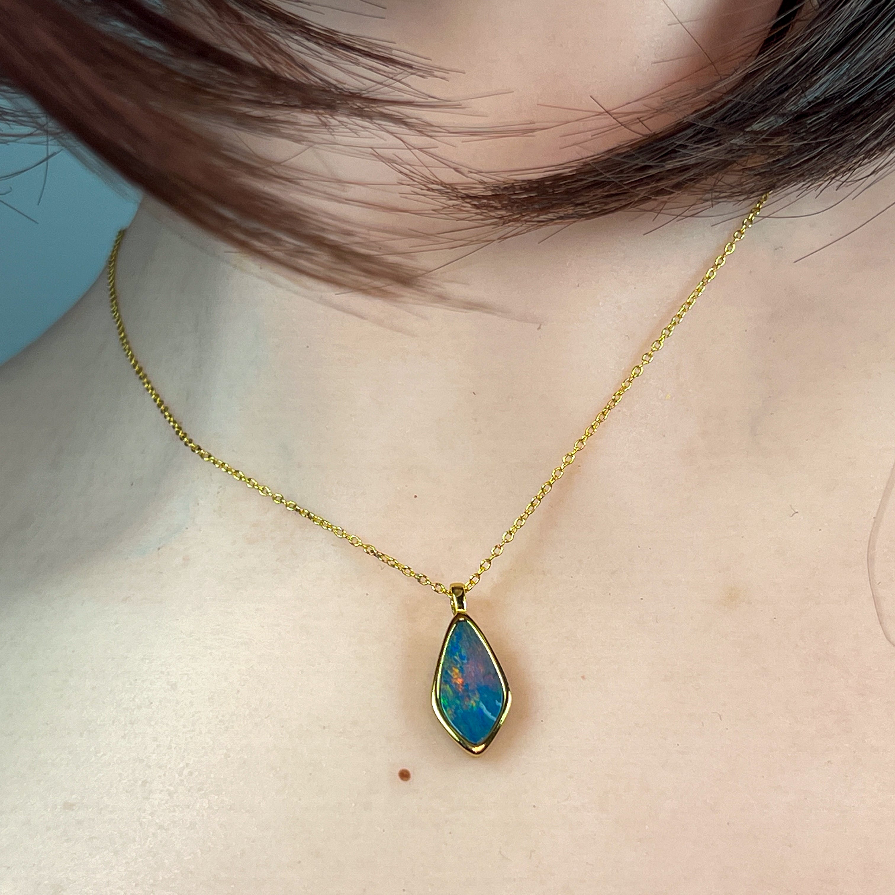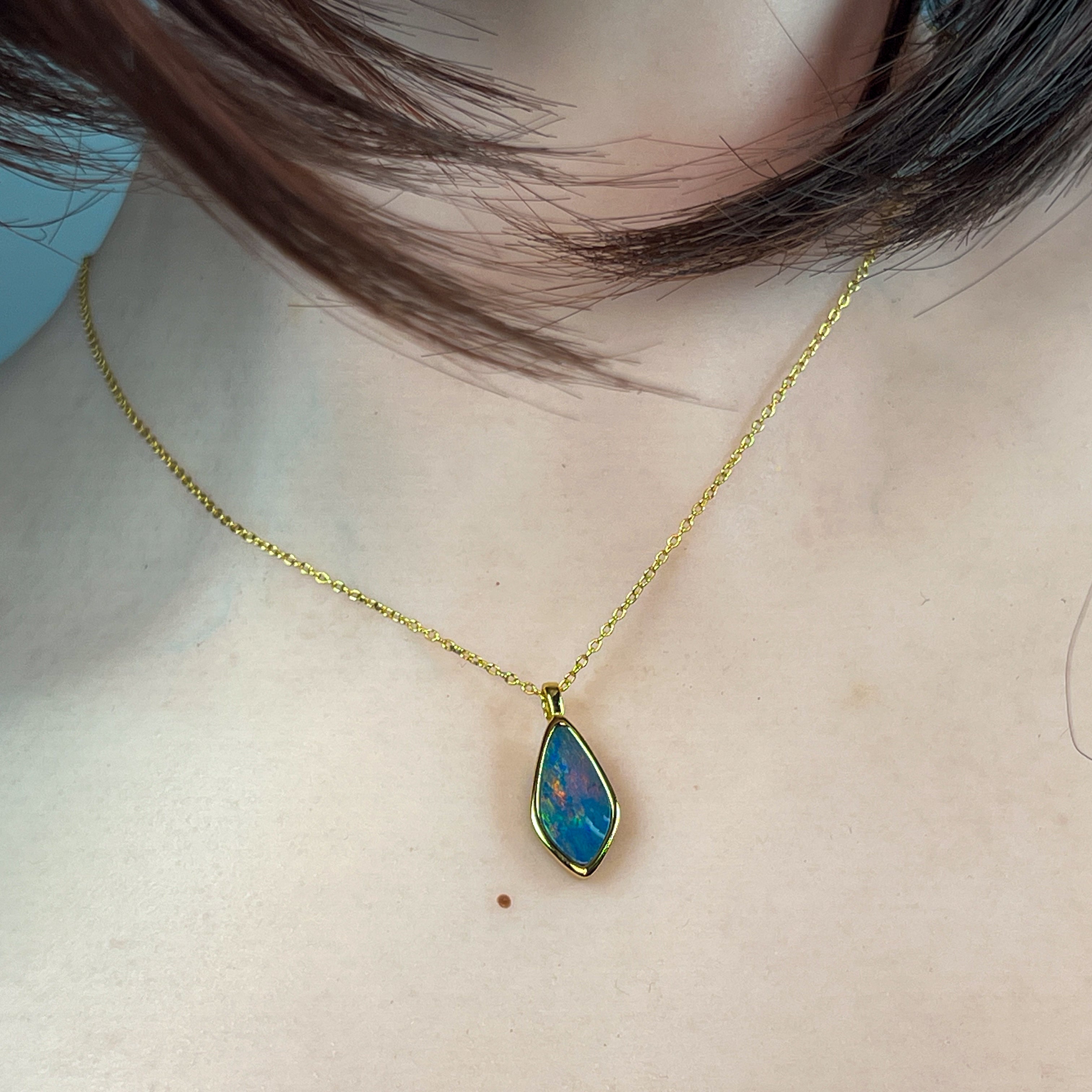 Gold Plated Sterling Silver kite shaped Opal doublet pendant