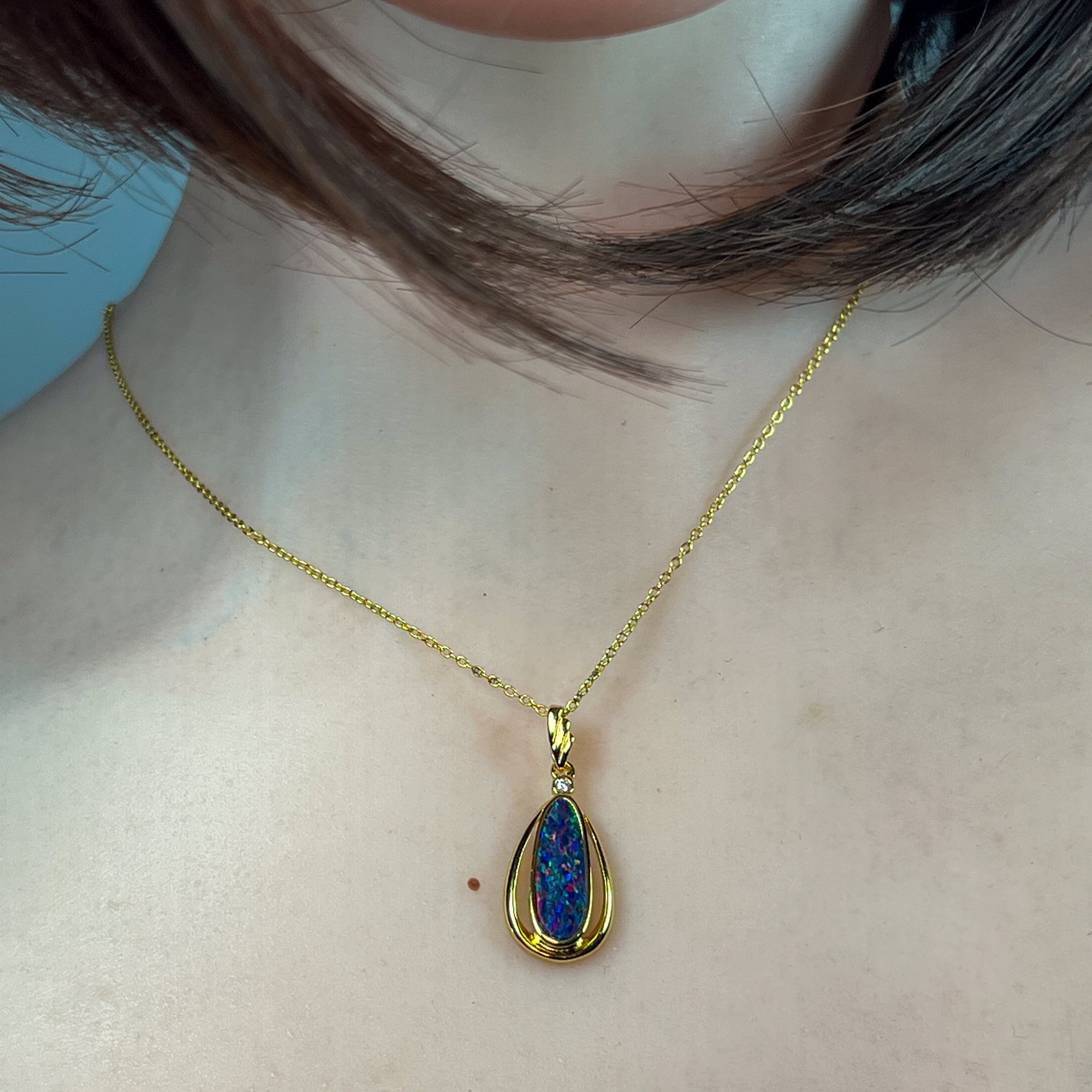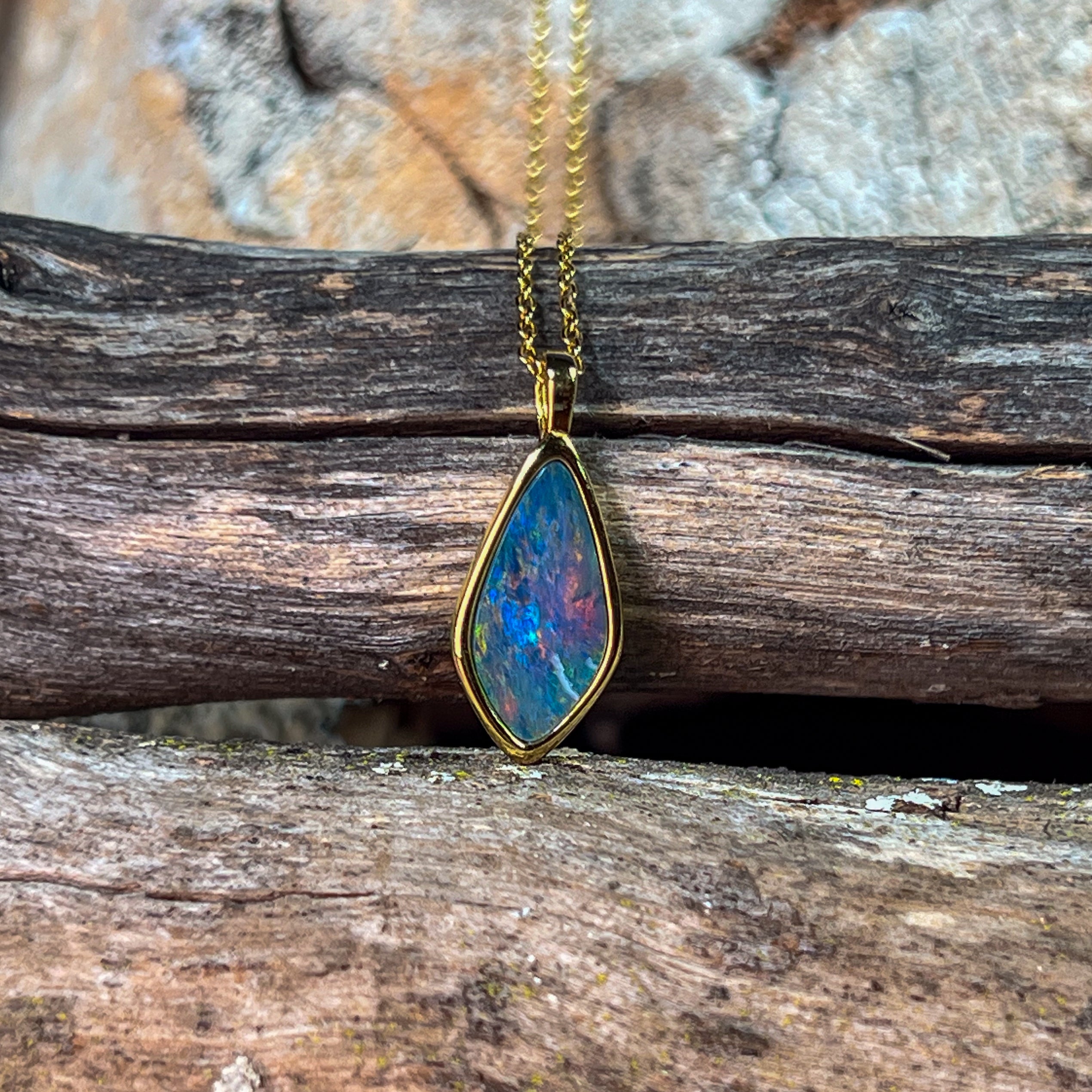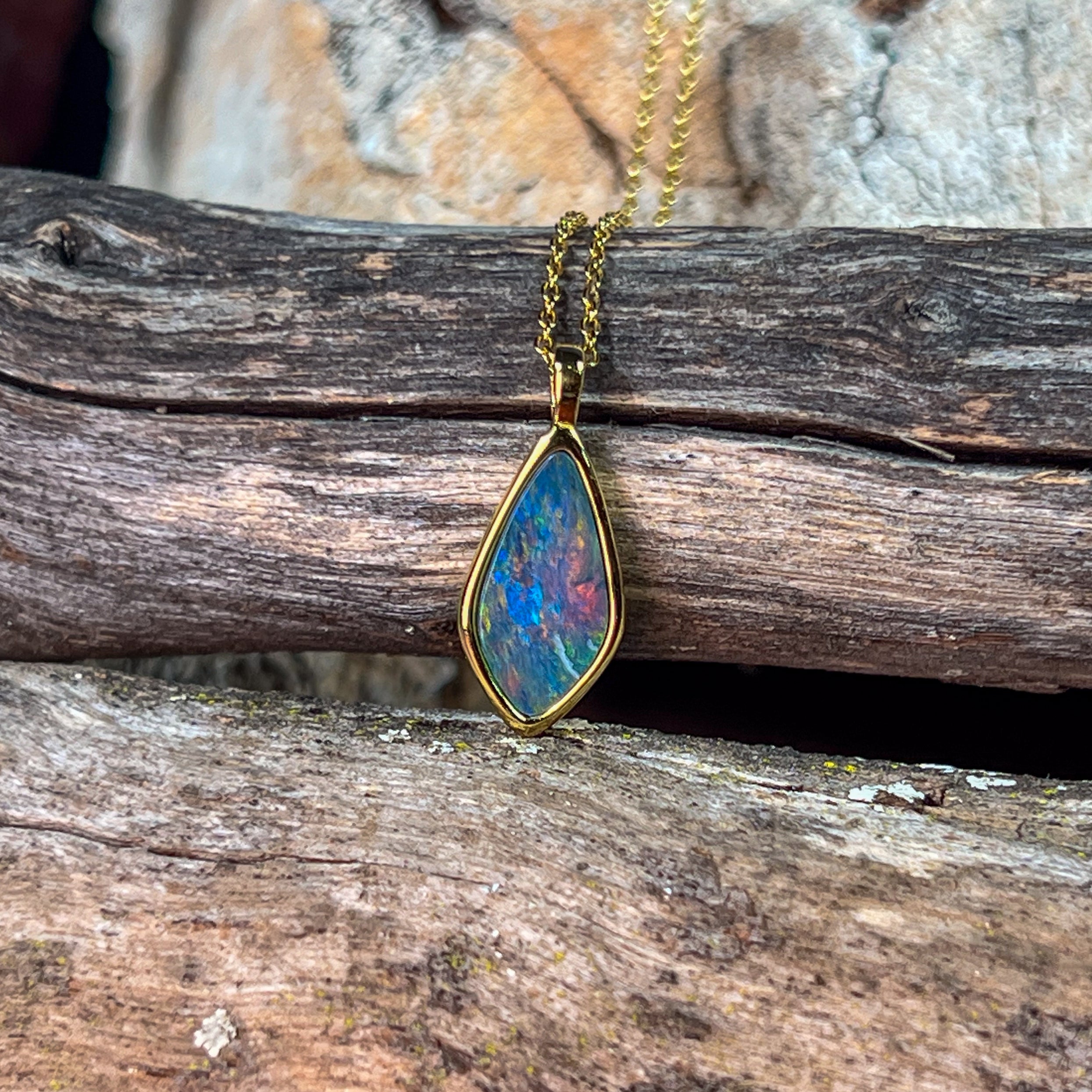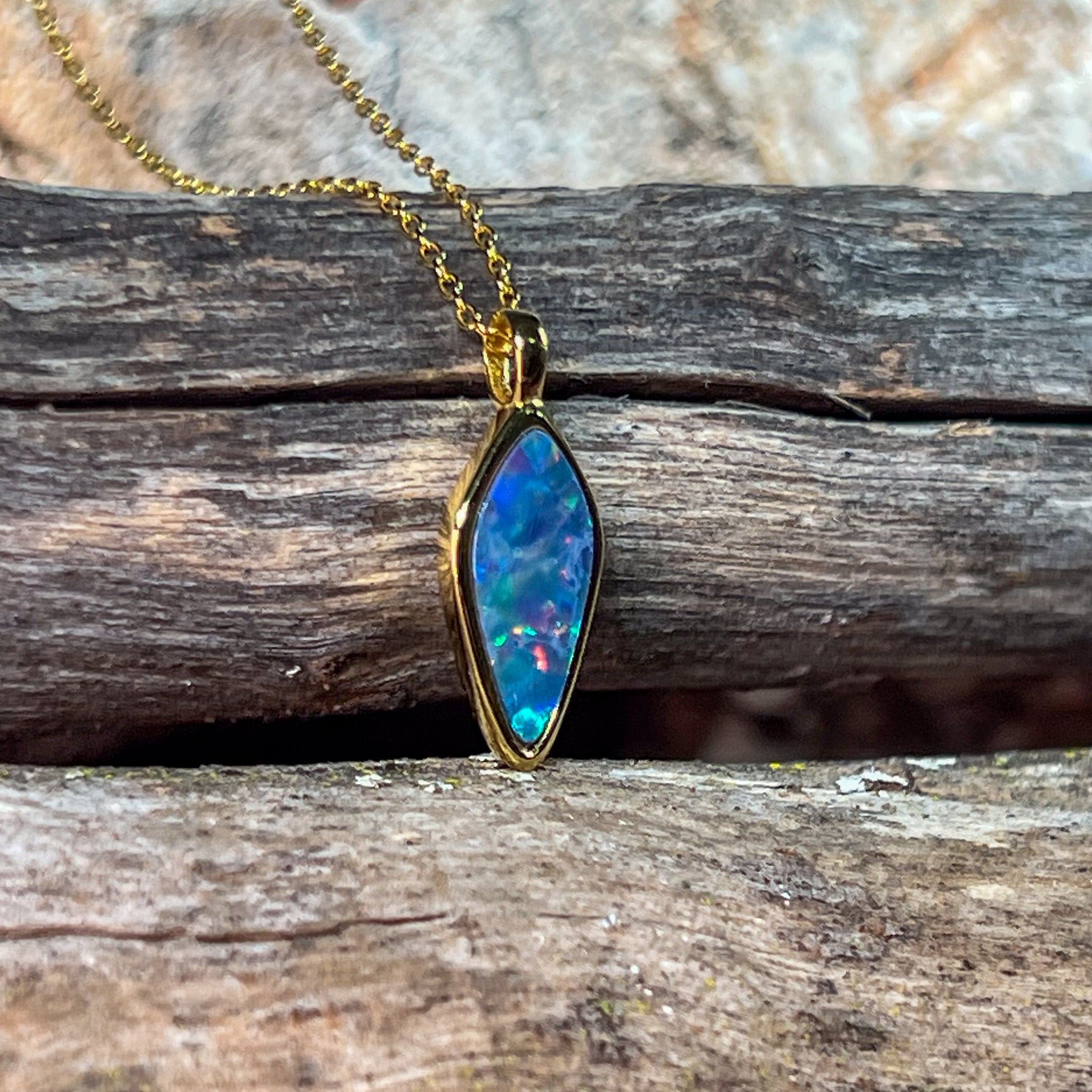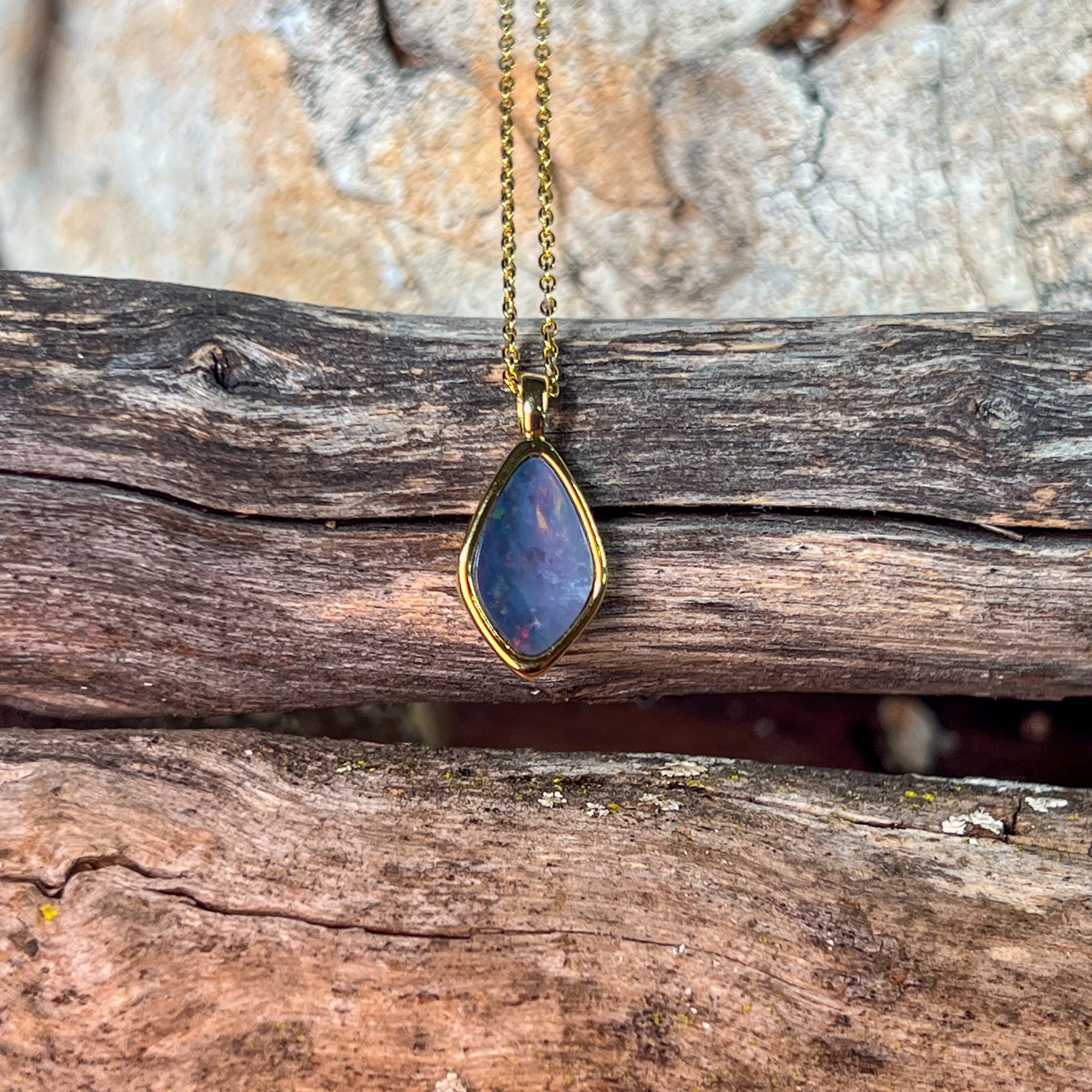 Gold Plated Sterling Silver kite shaped Opal doublet pendant