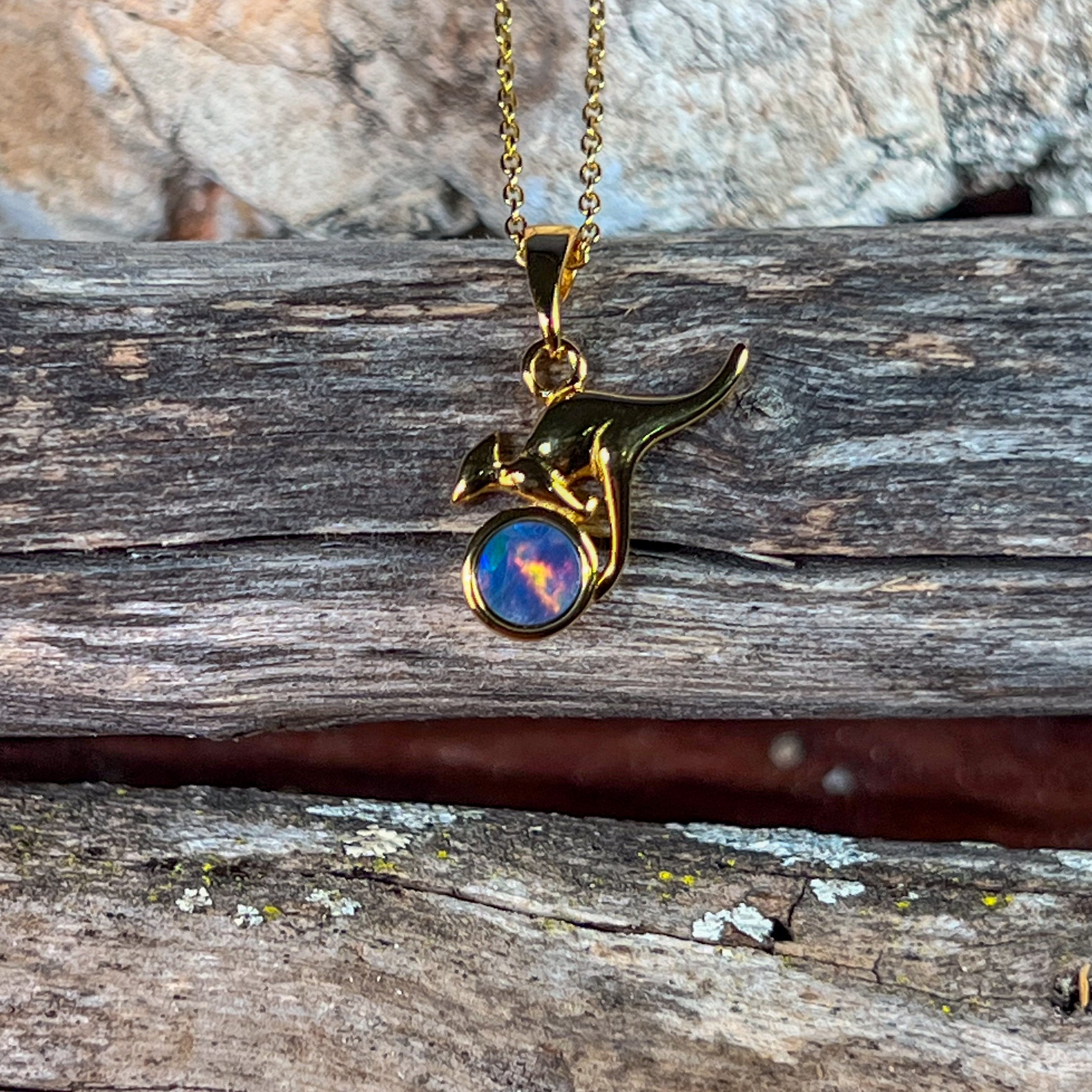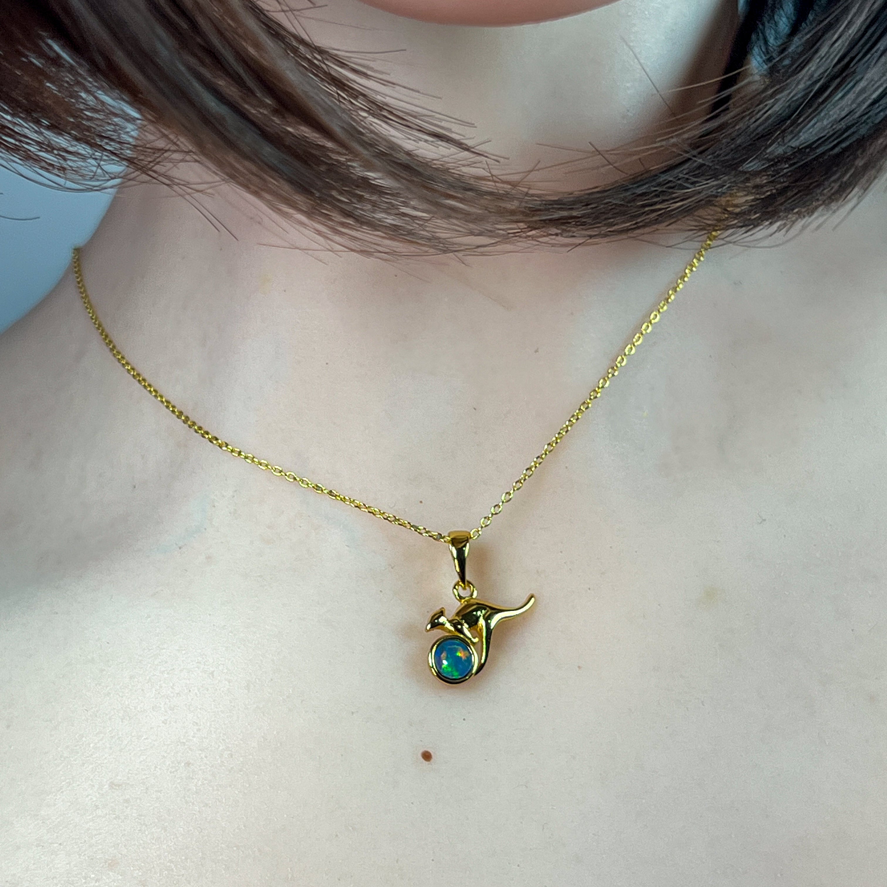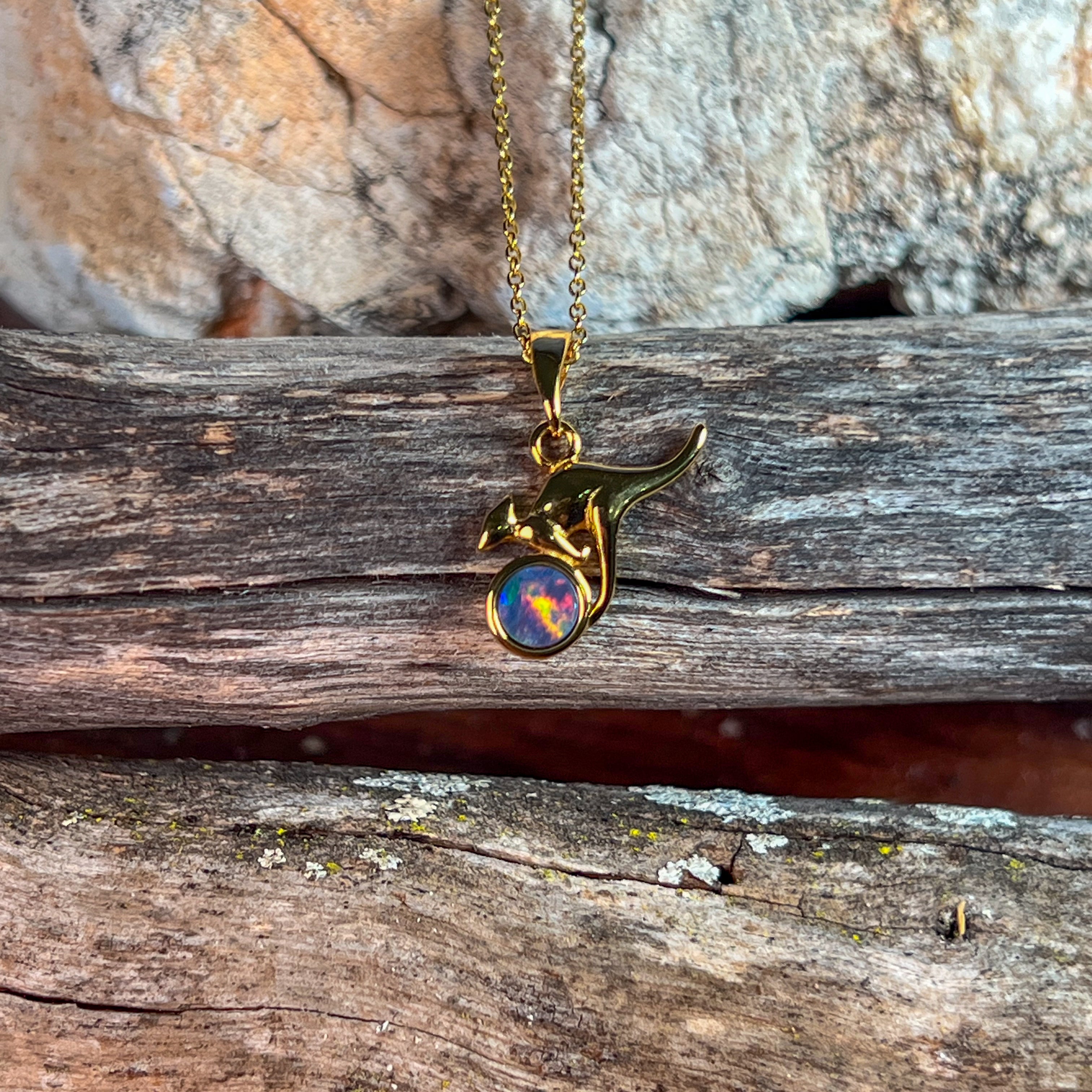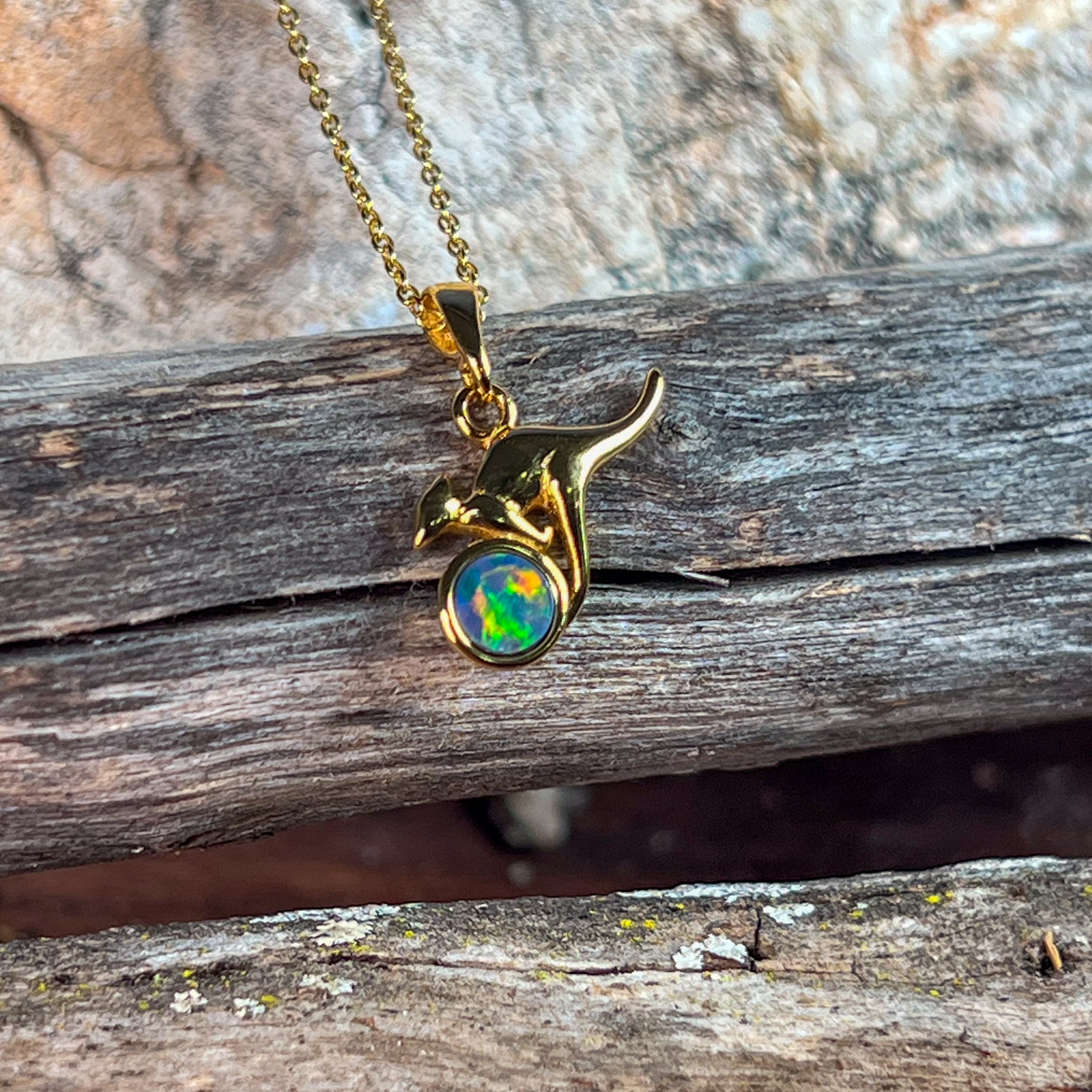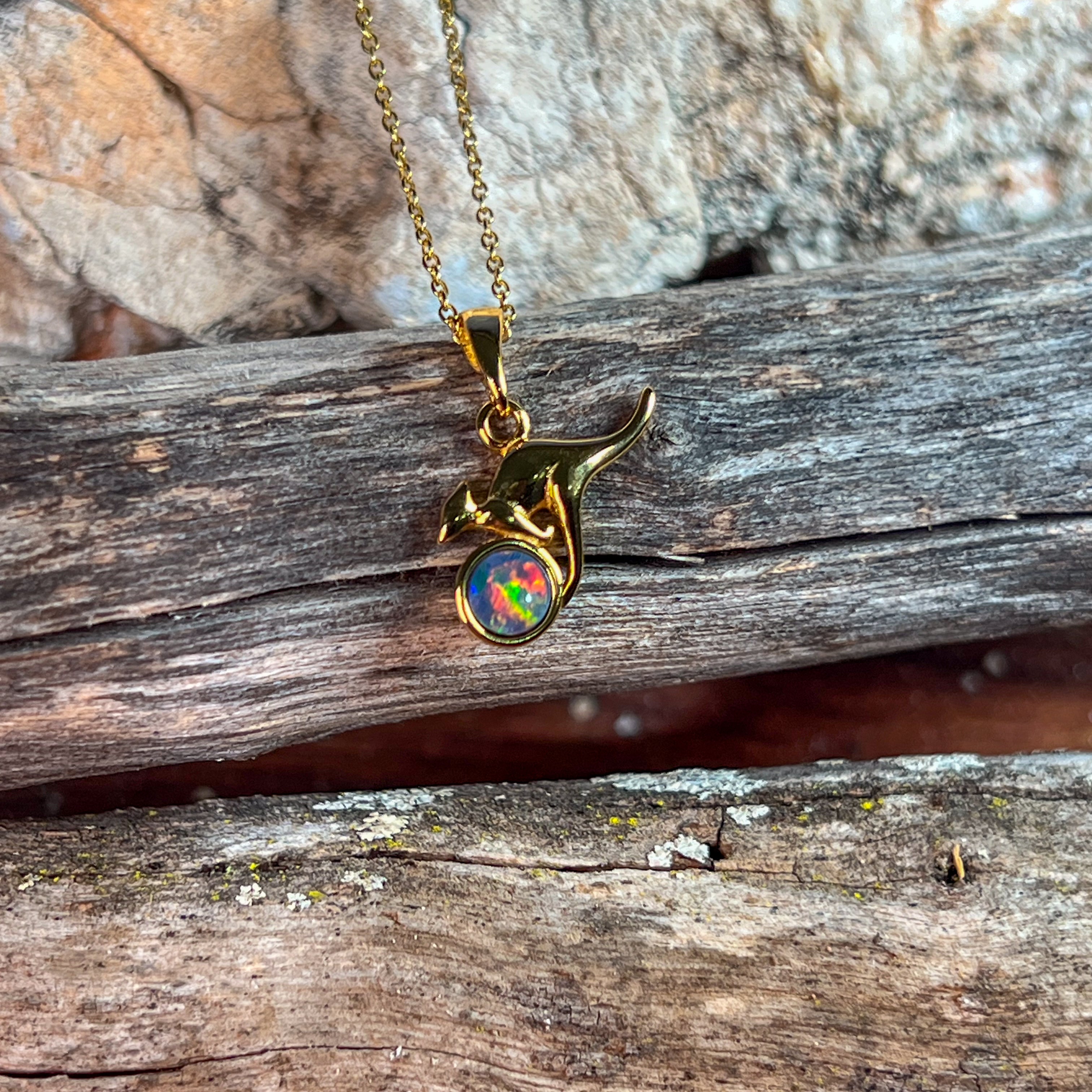 Gold Plated Silver kangaroo round 5mm Opal pendant