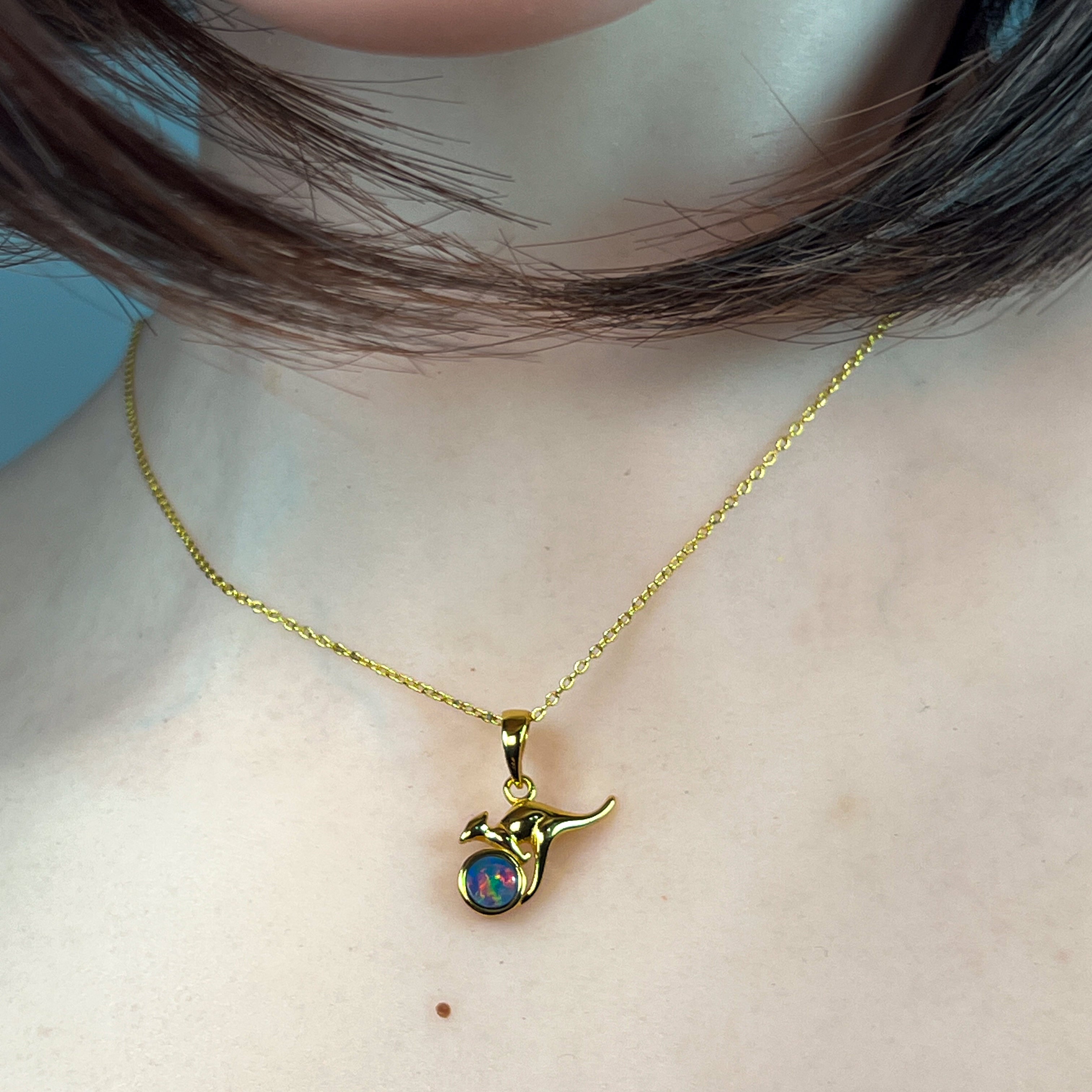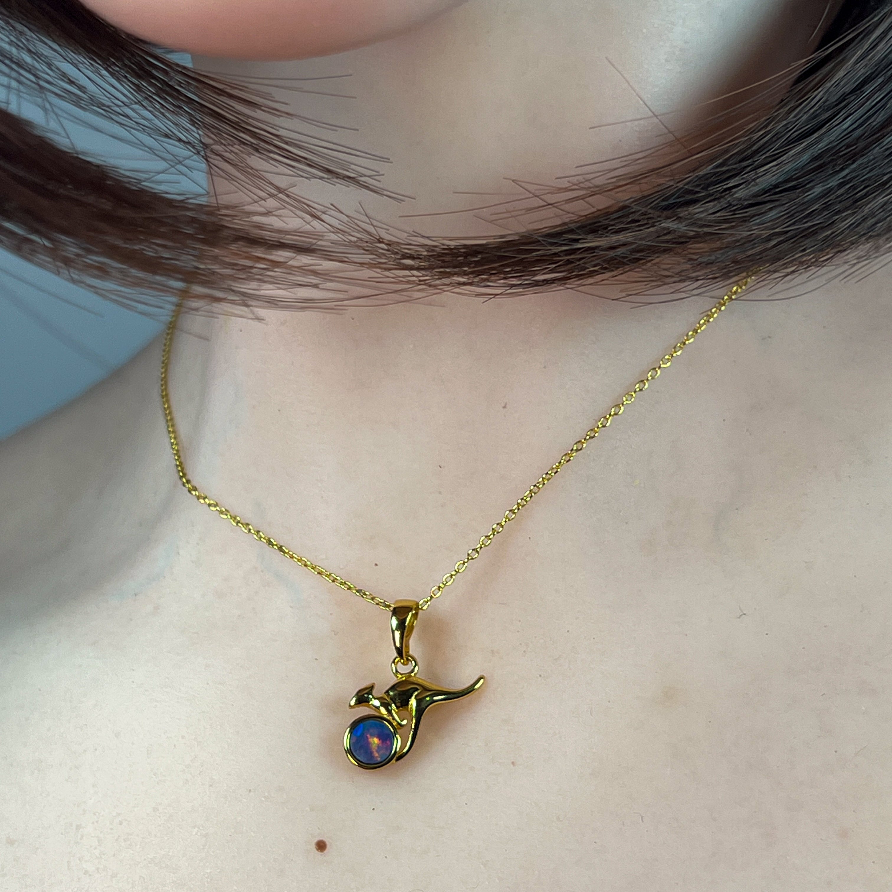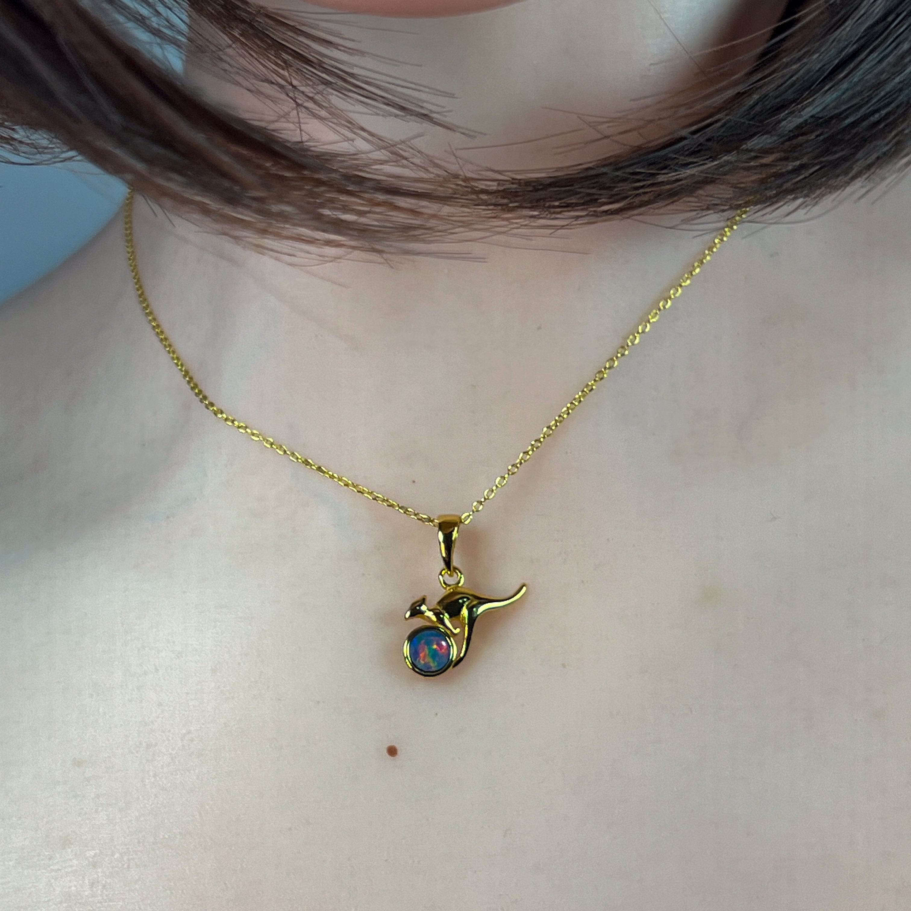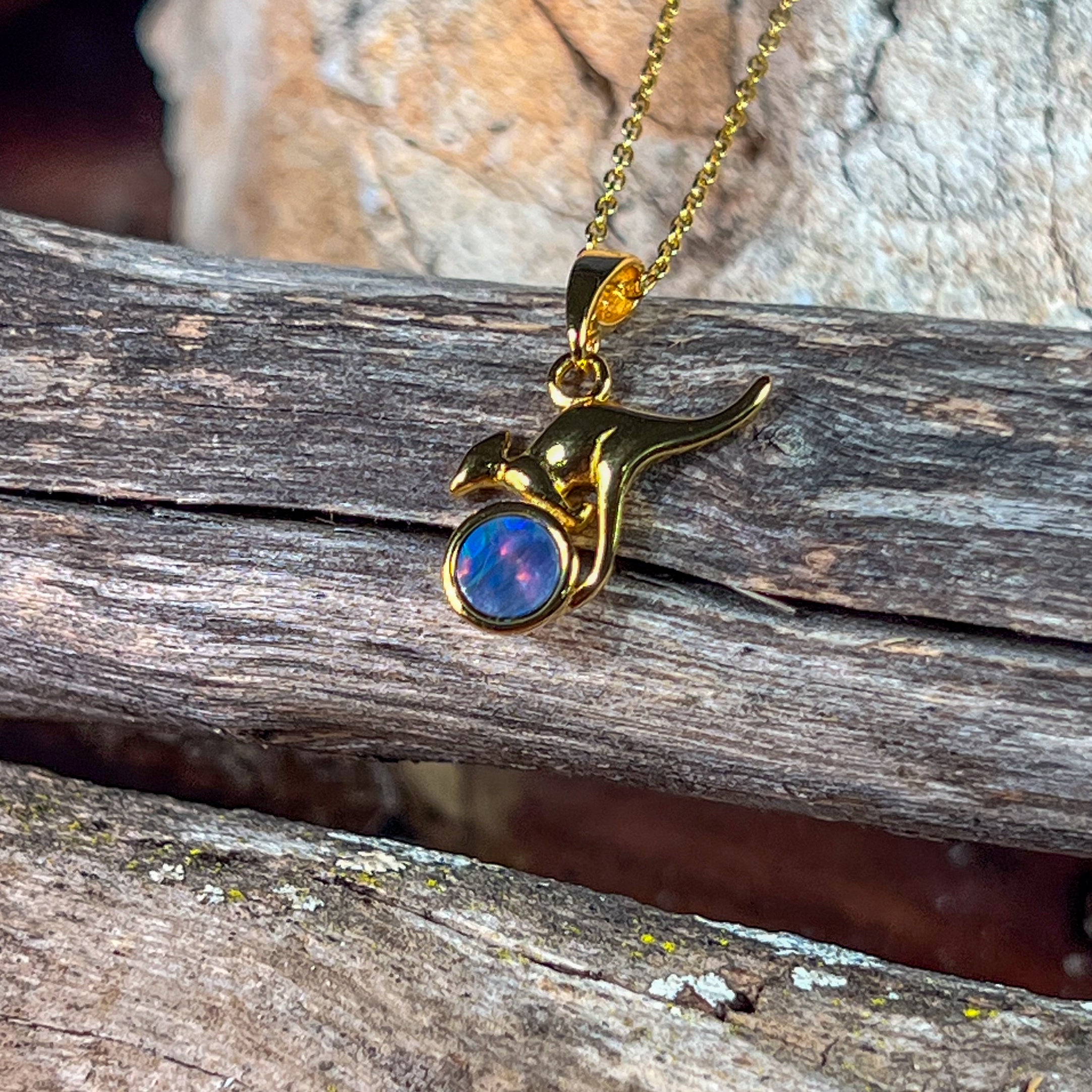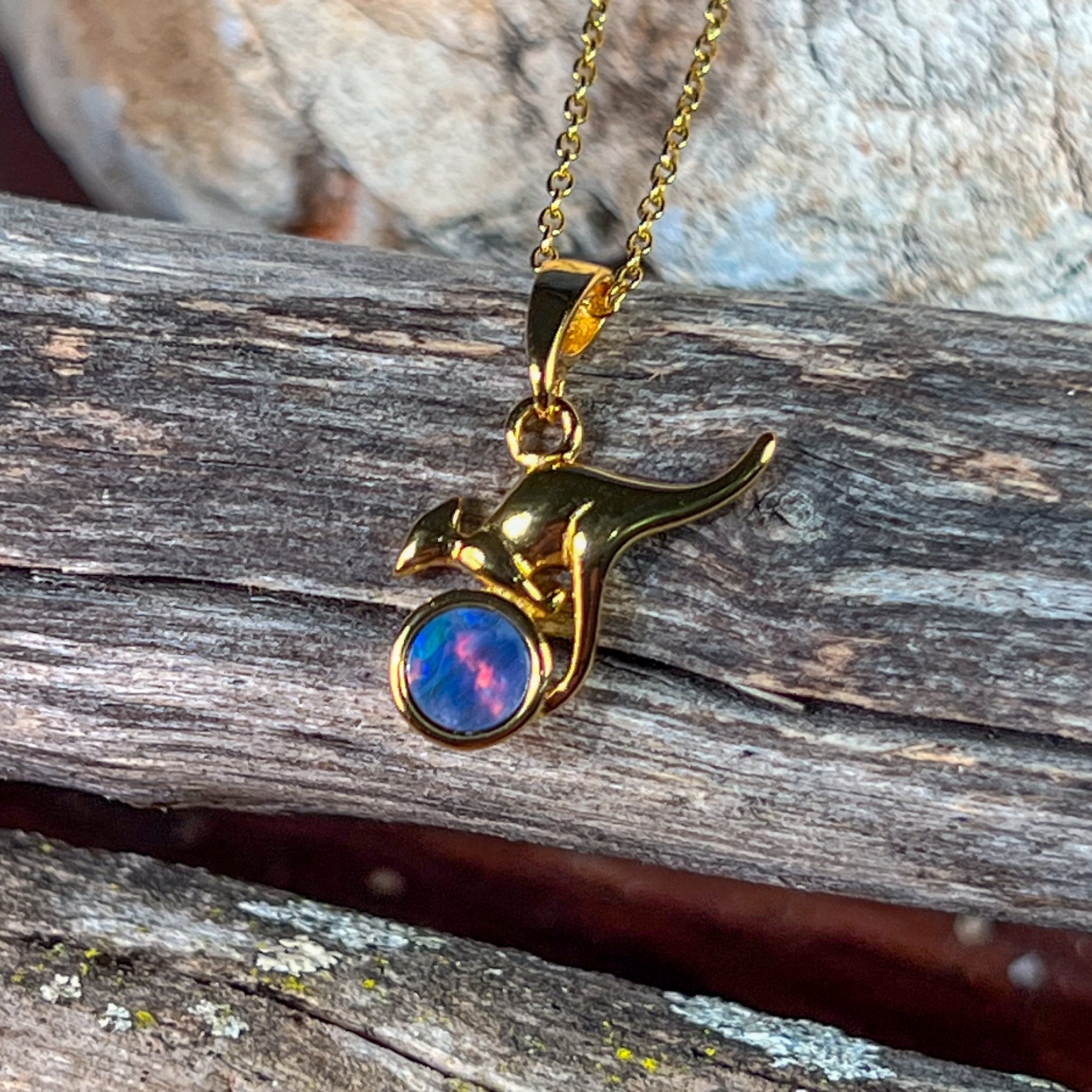 Gold Plated Silver kangaroo round 5mm Opal pendant