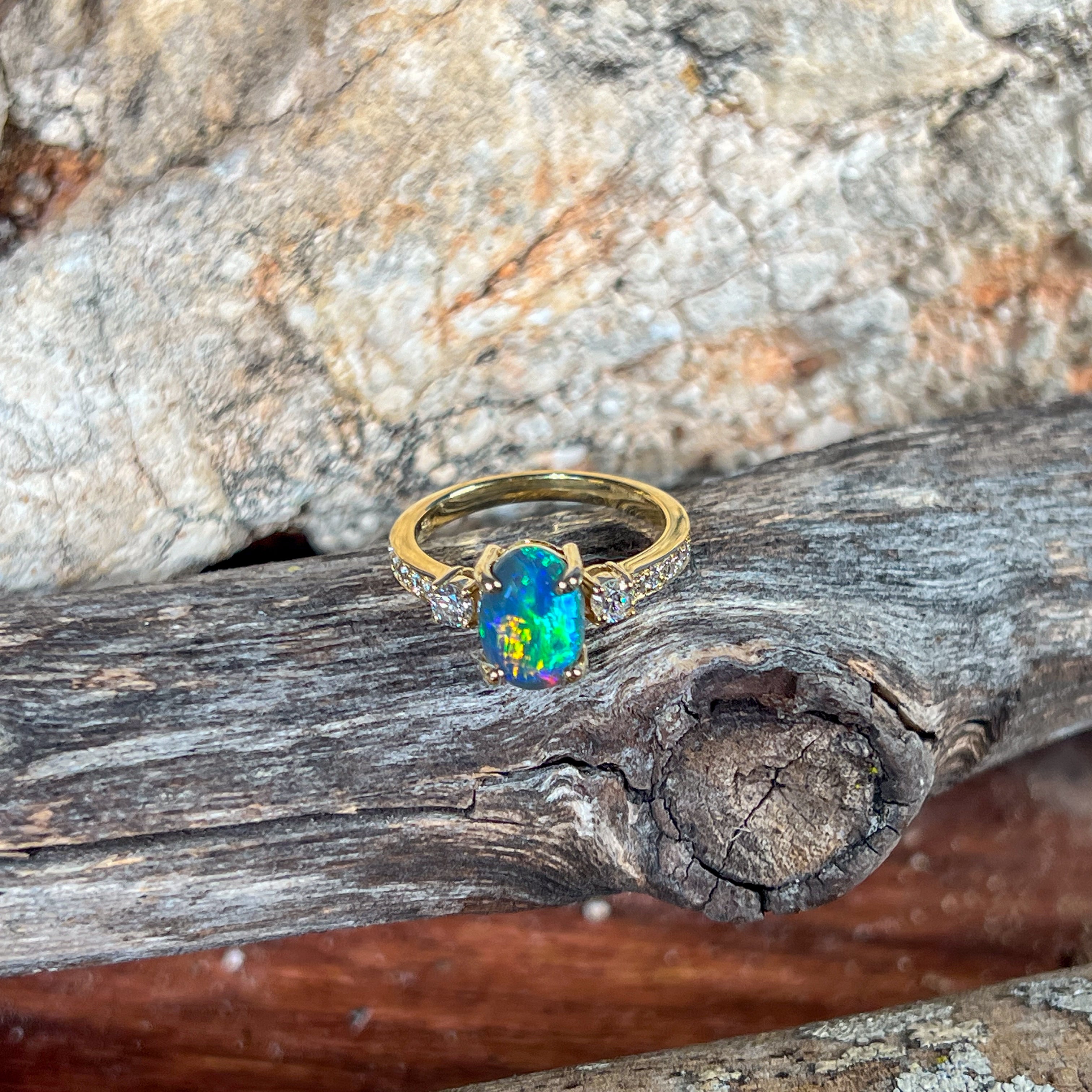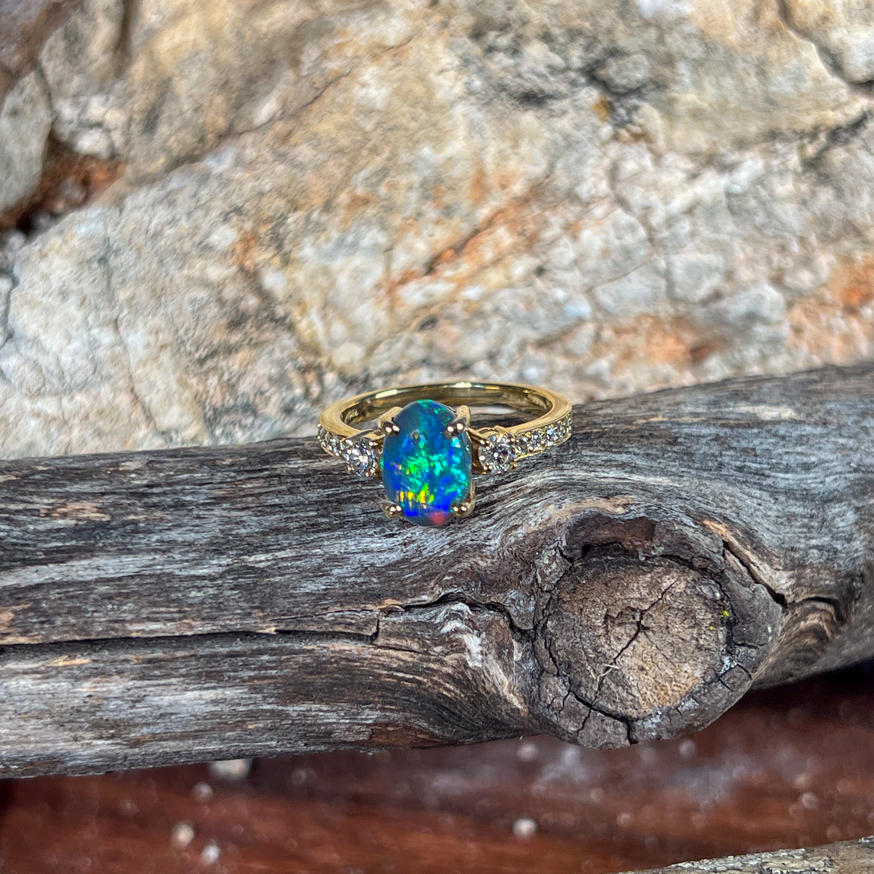 14kt Yellow Gold Opal doublet 1.33ct and diamond ring