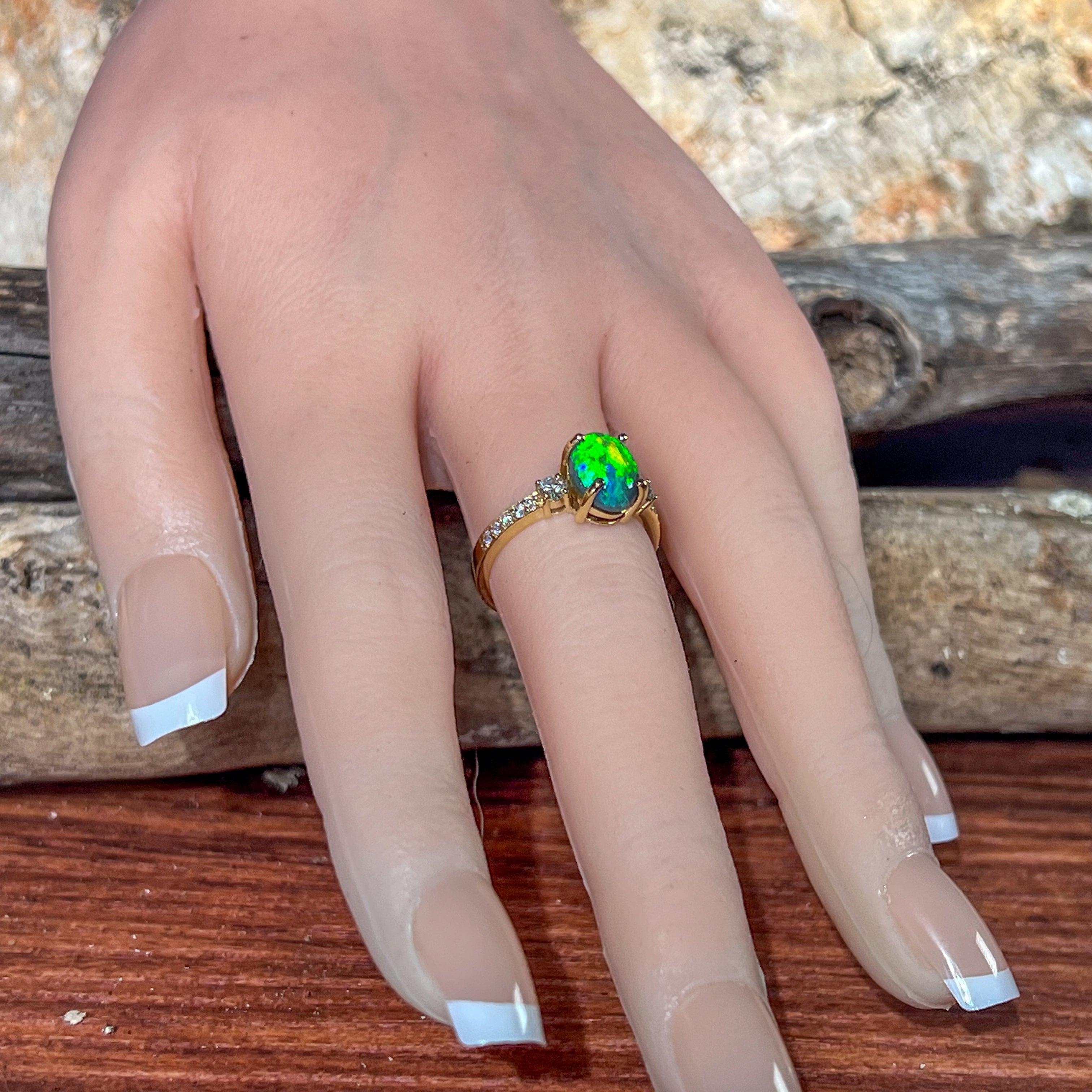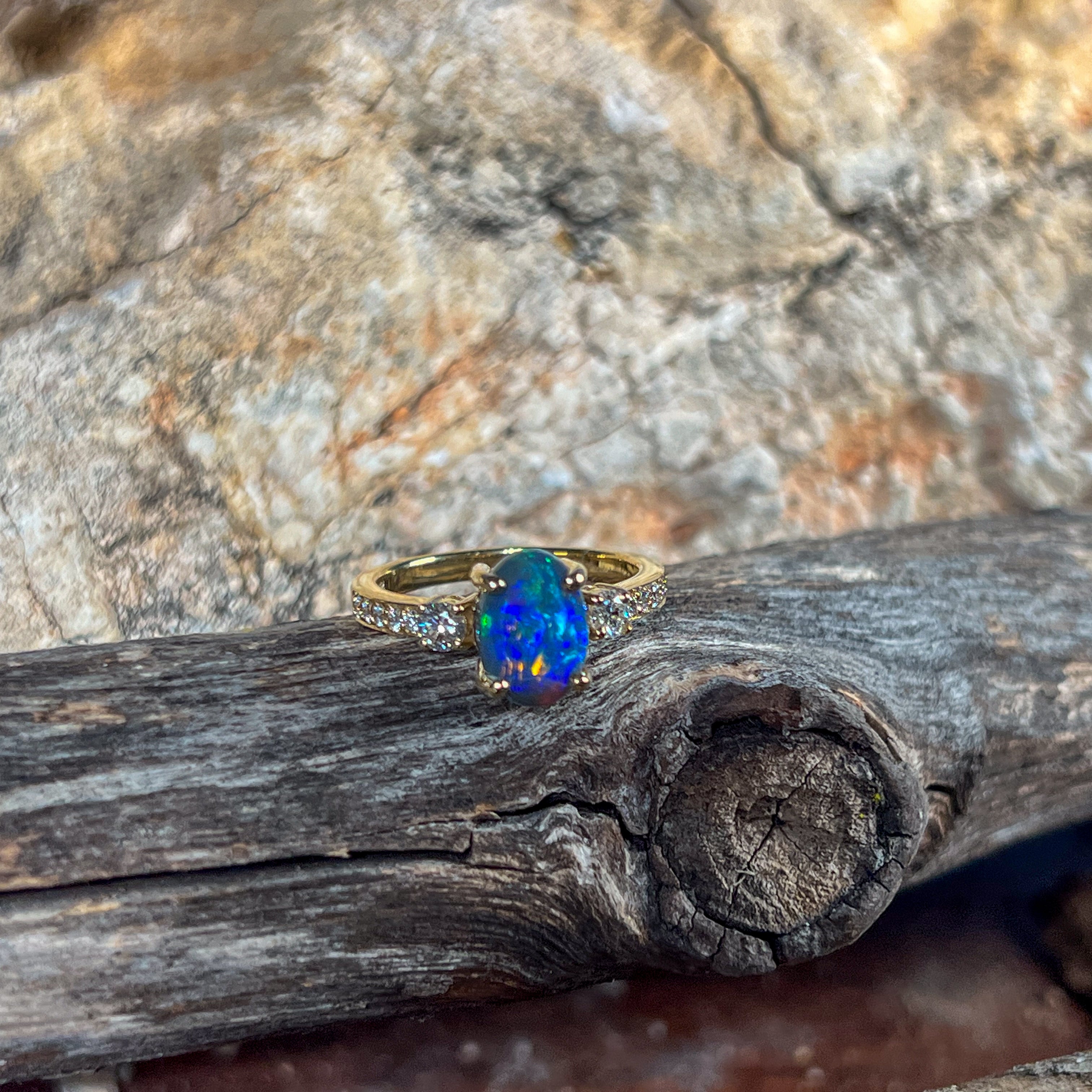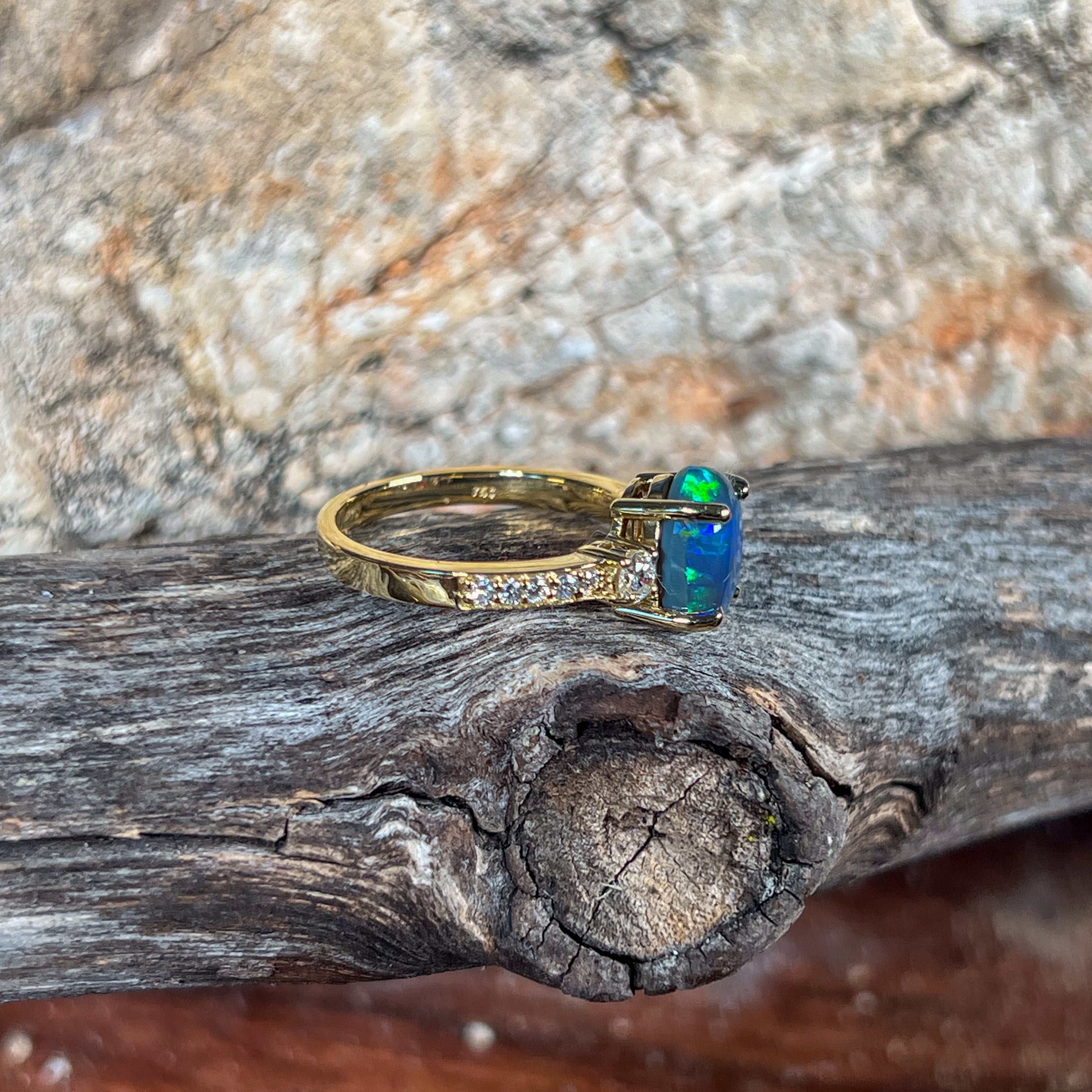 18kt Yellow Gold Black Opal 1.07ct and diamond ring
