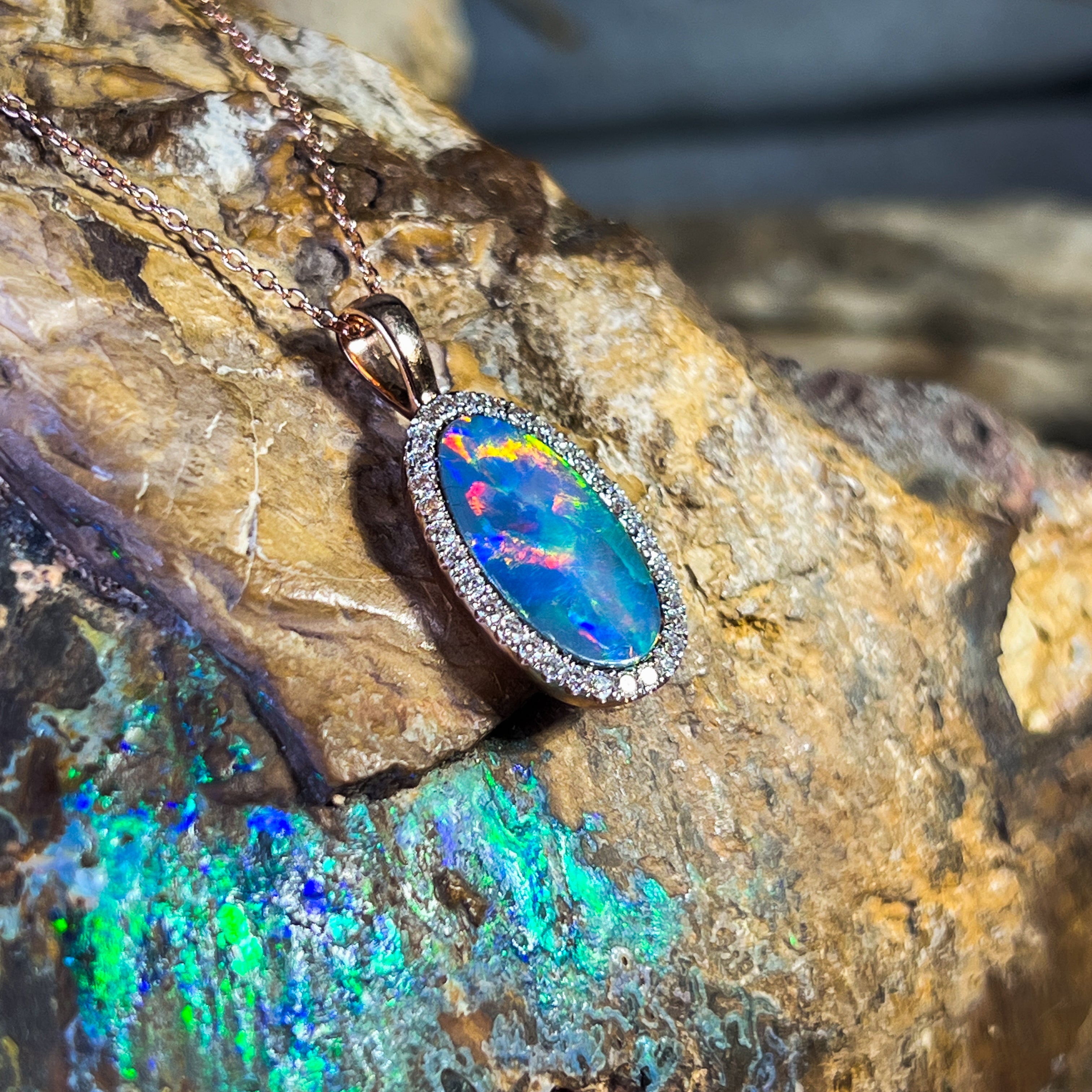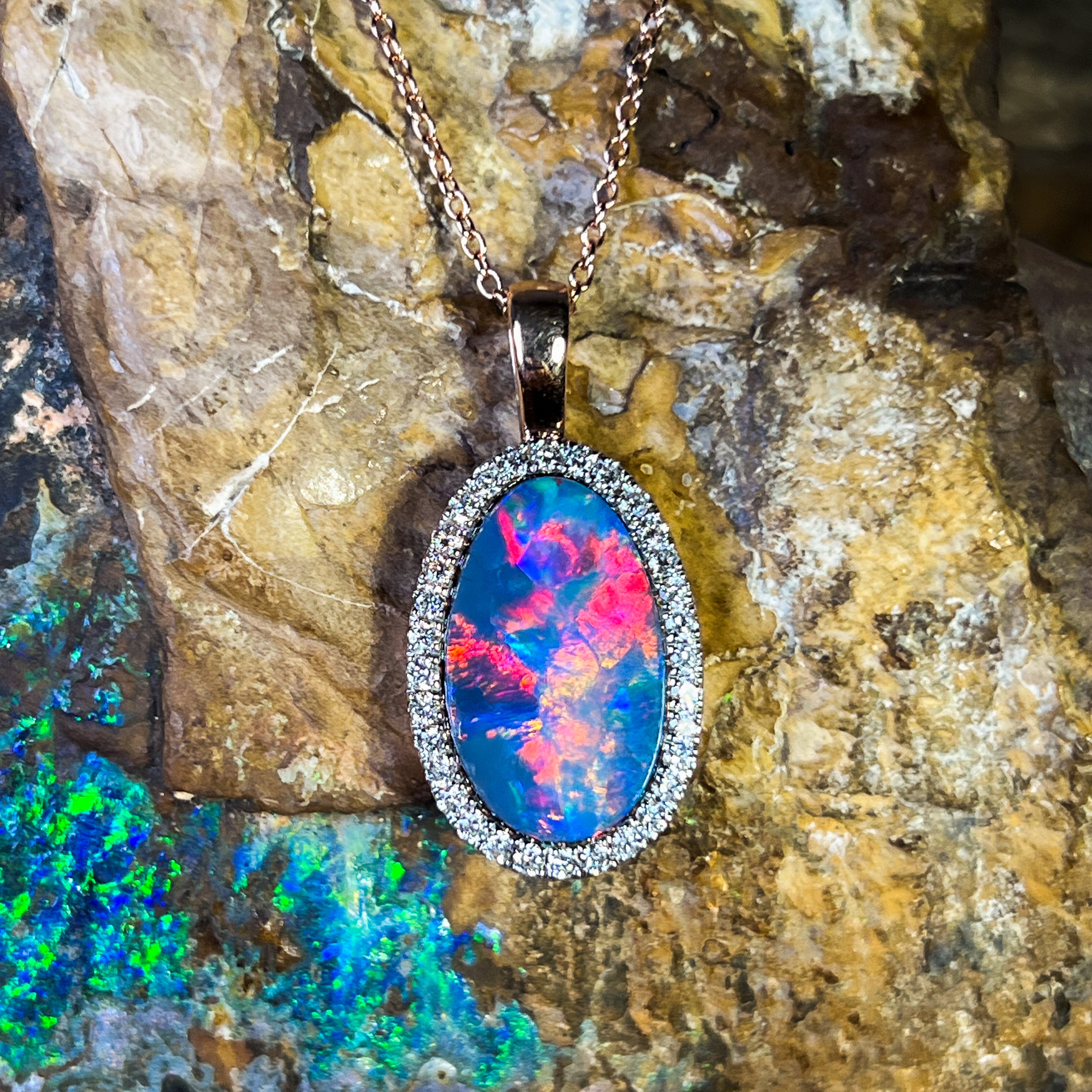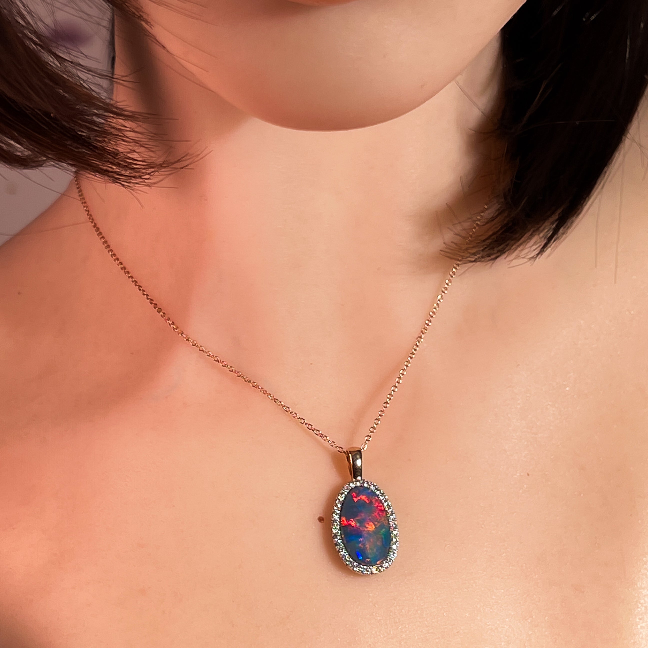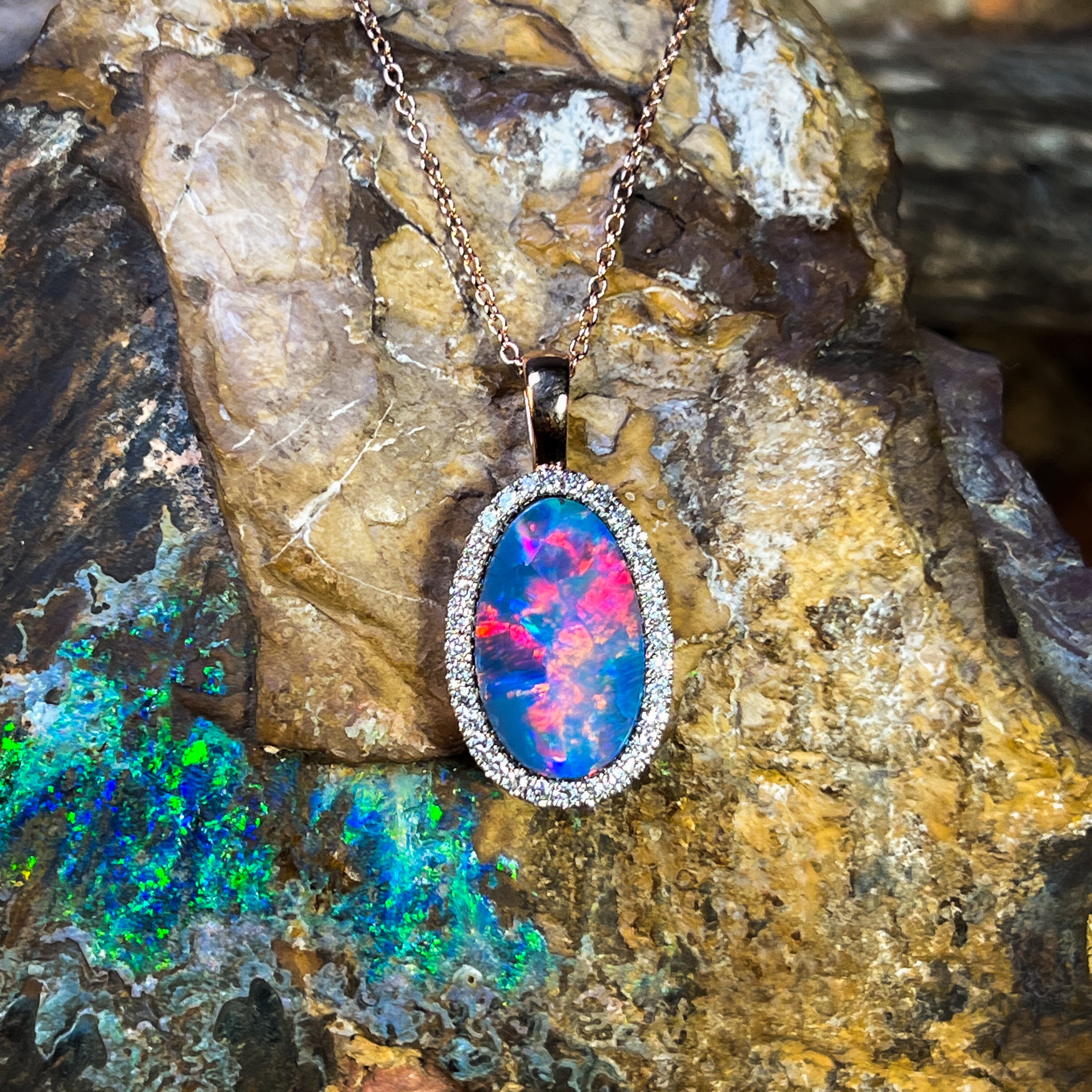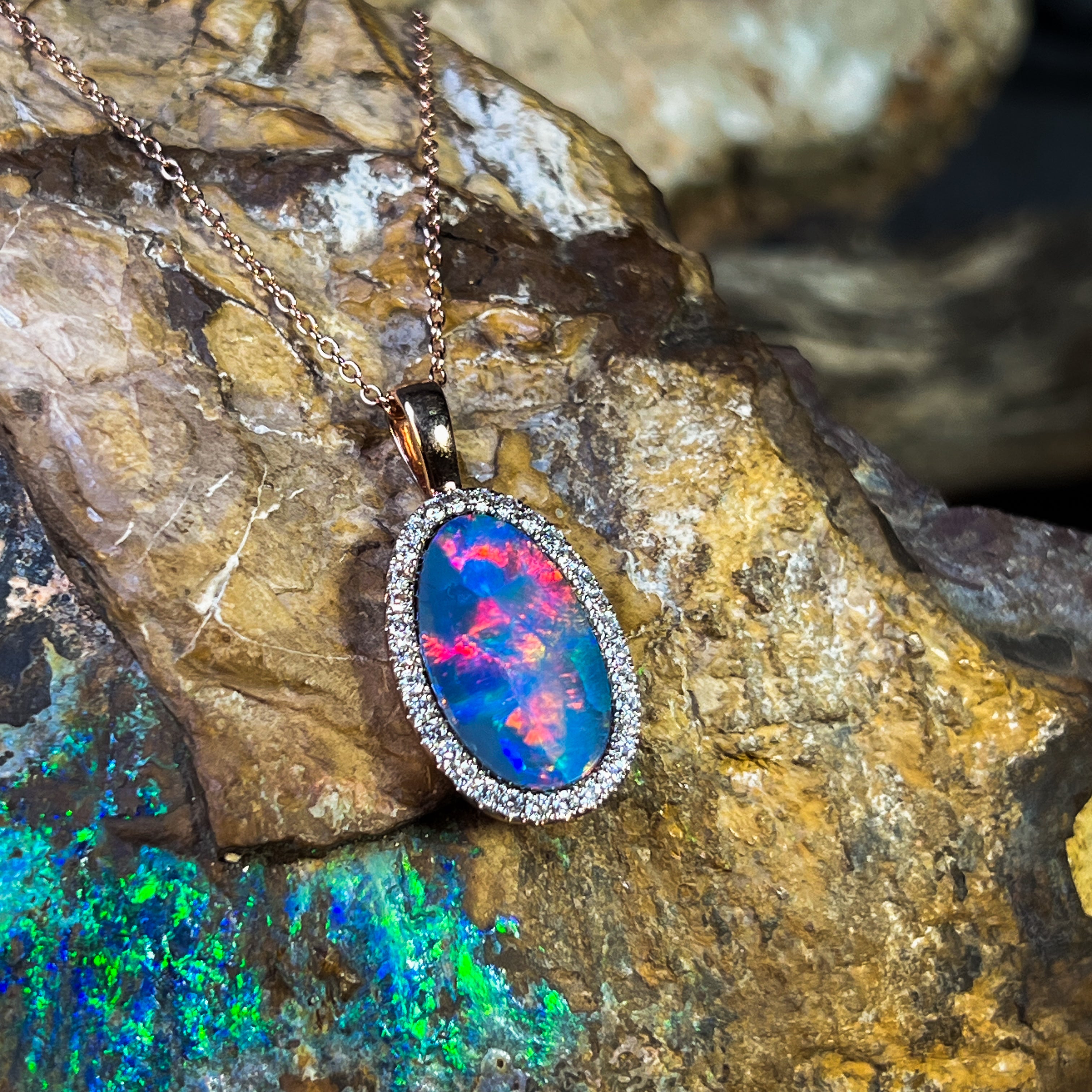 14kt Rose Gold Opal doublet 5.25ct and DIamond pendant