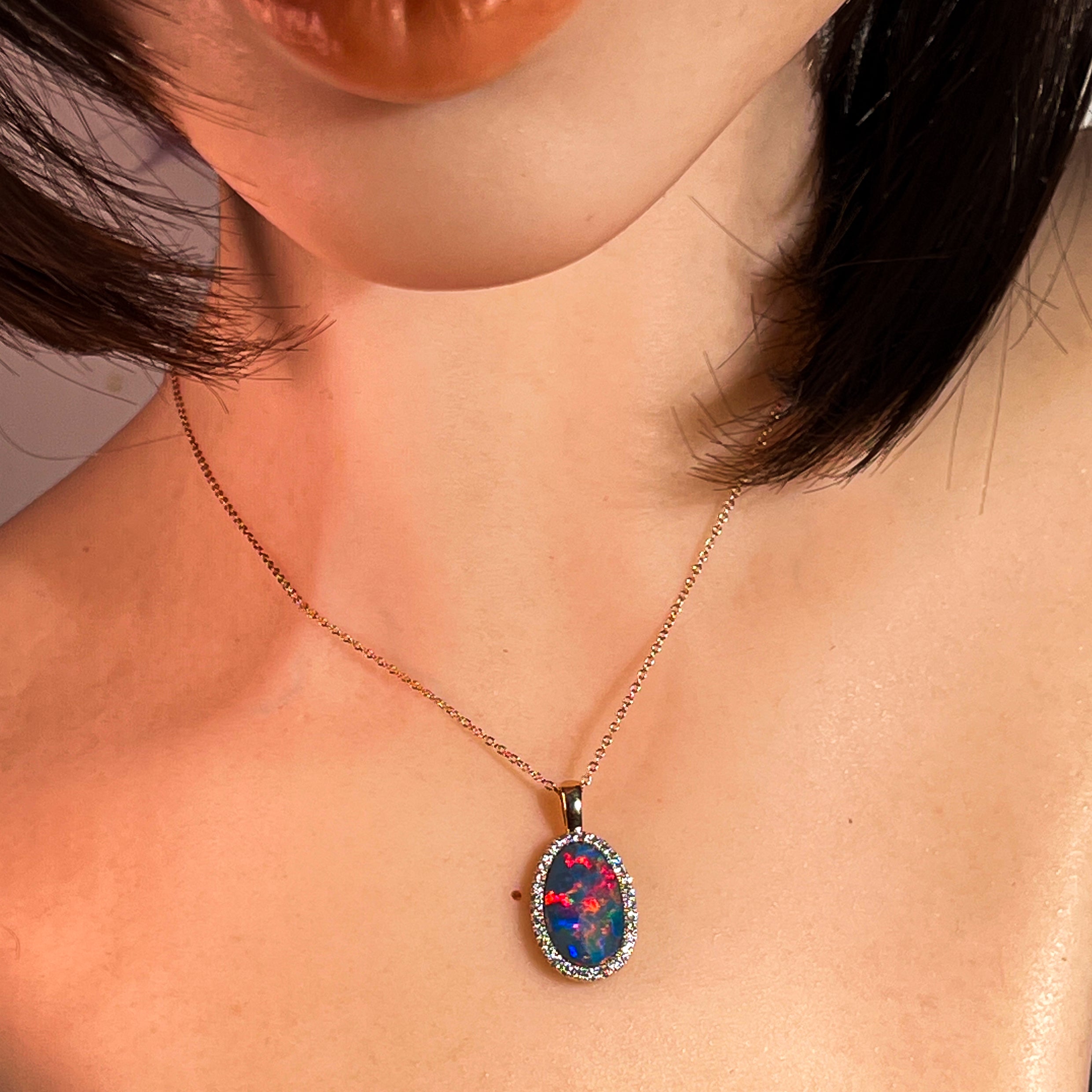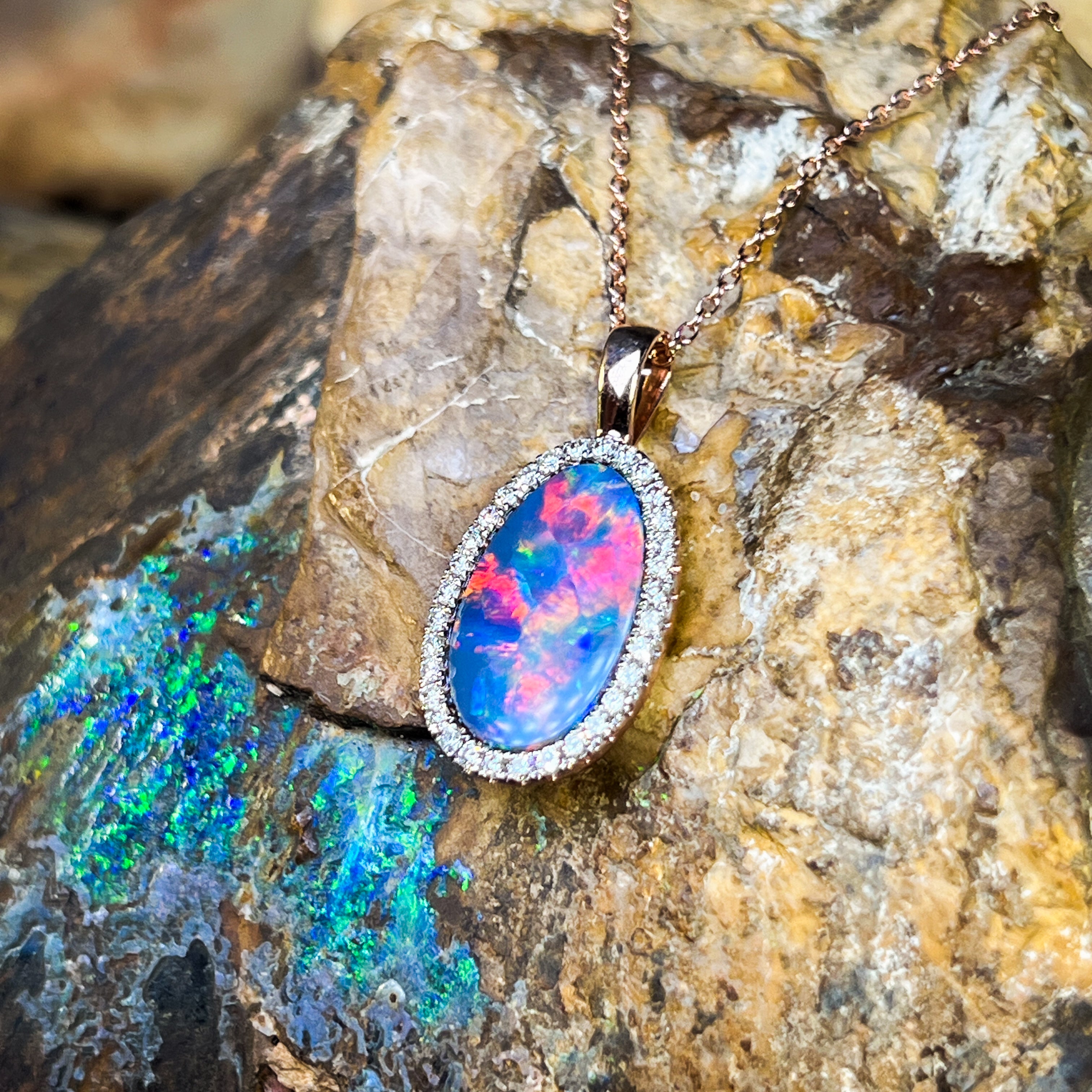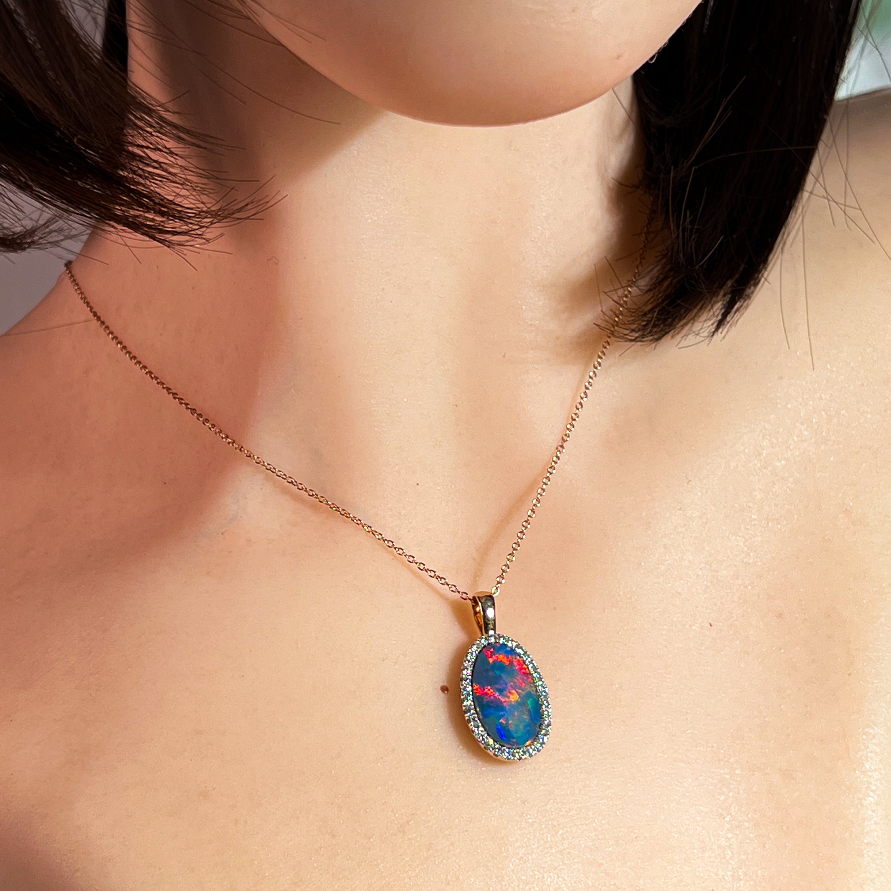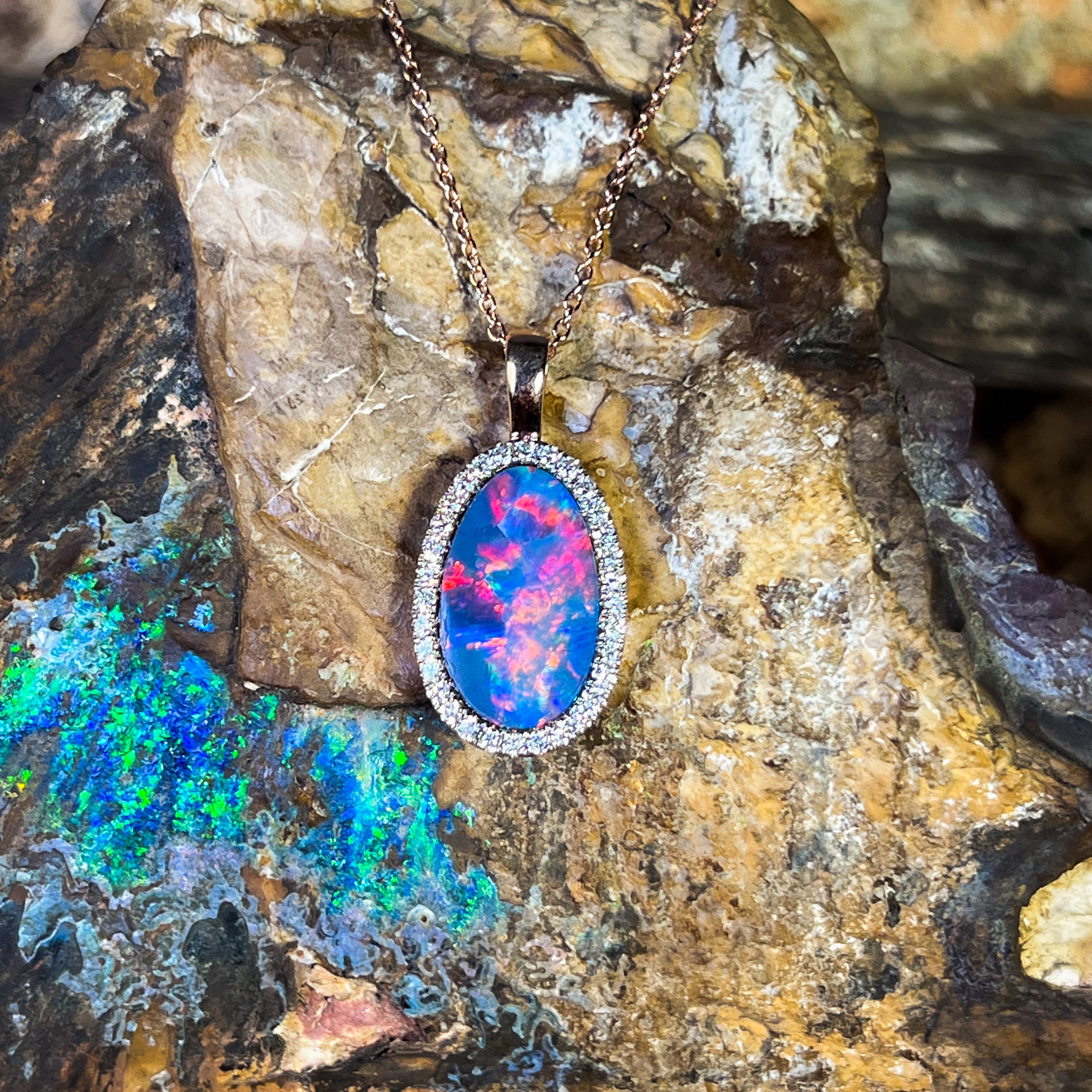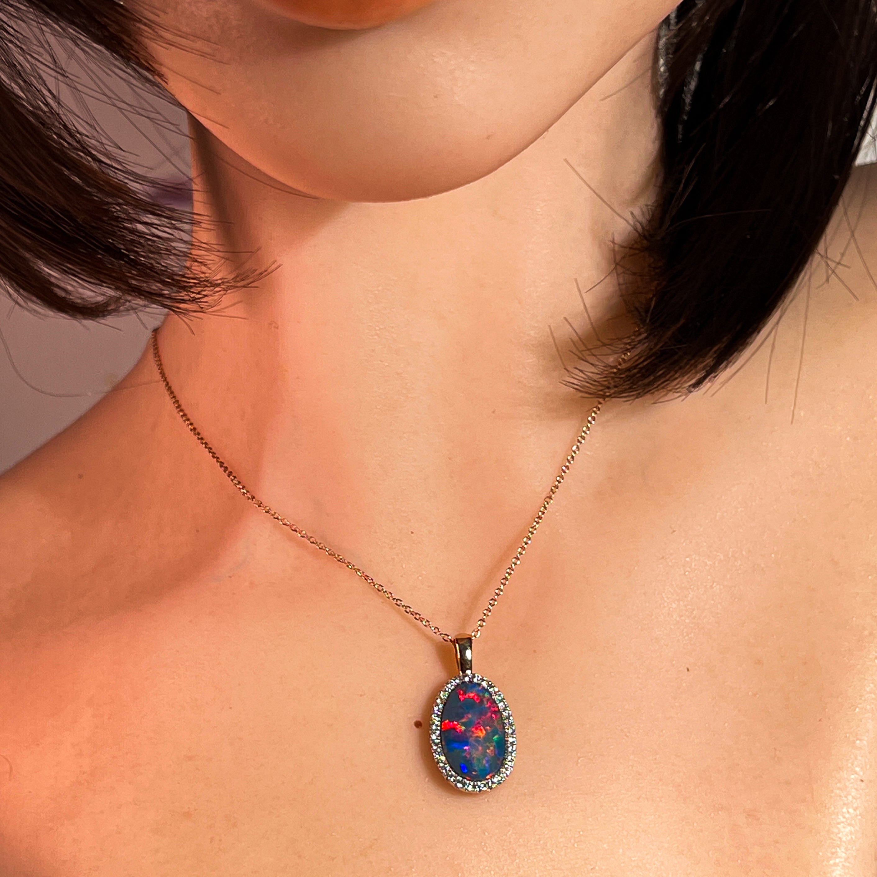 14kt Rose Gold Opal doublet 5.25ct and DIamond pendant
