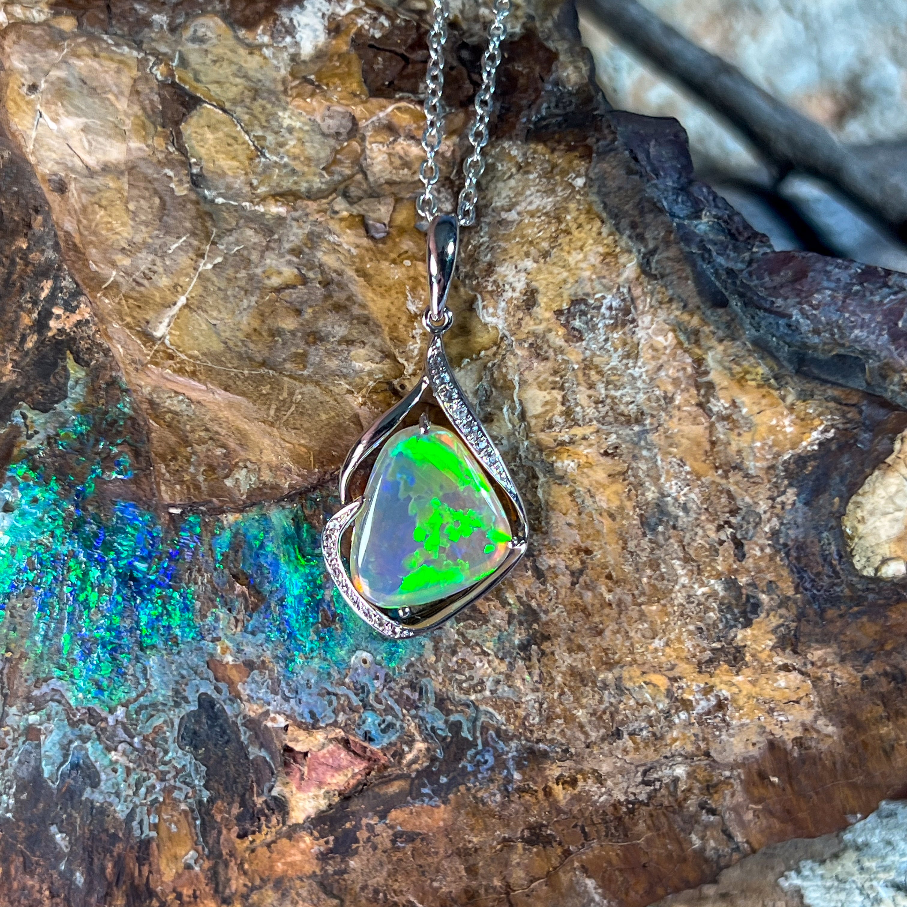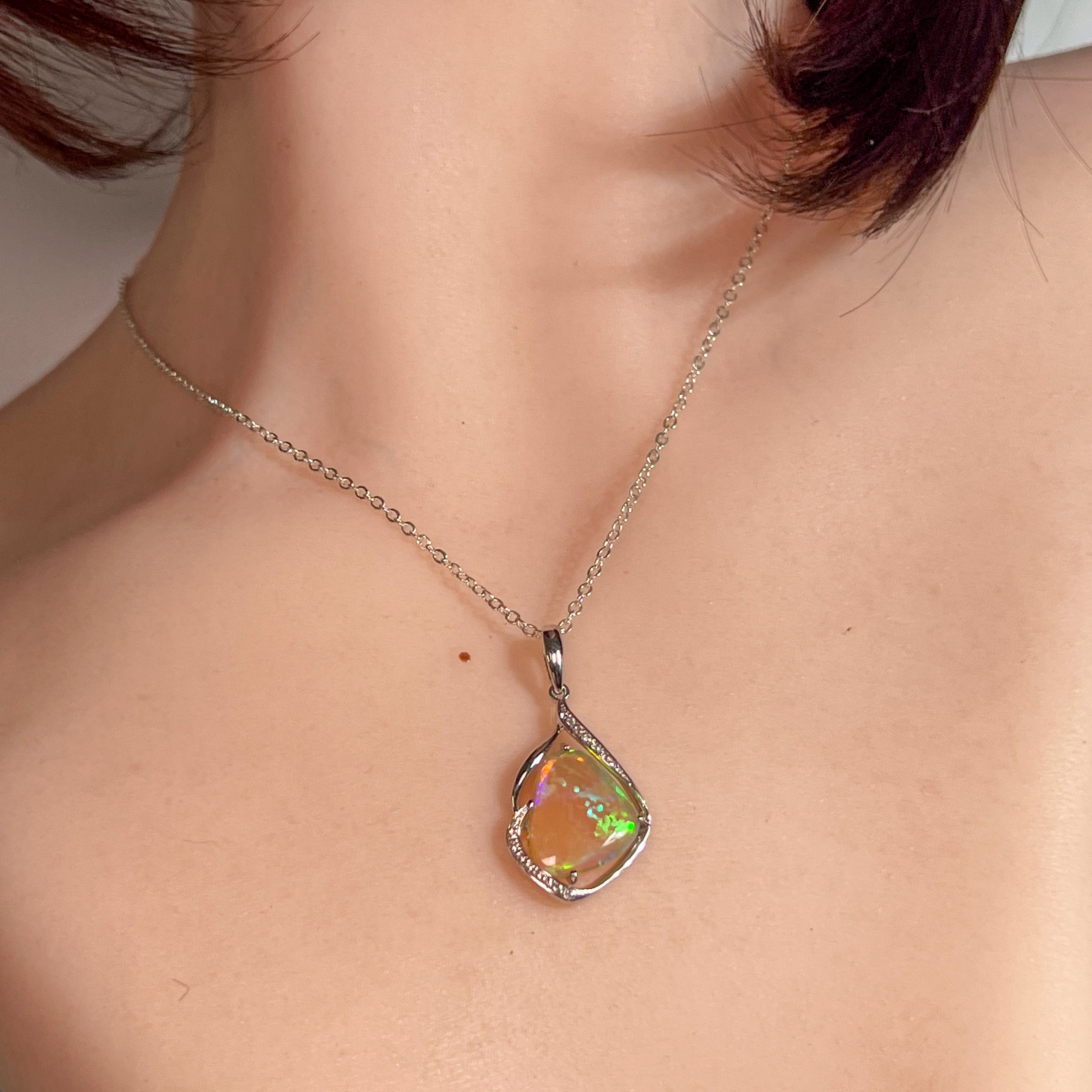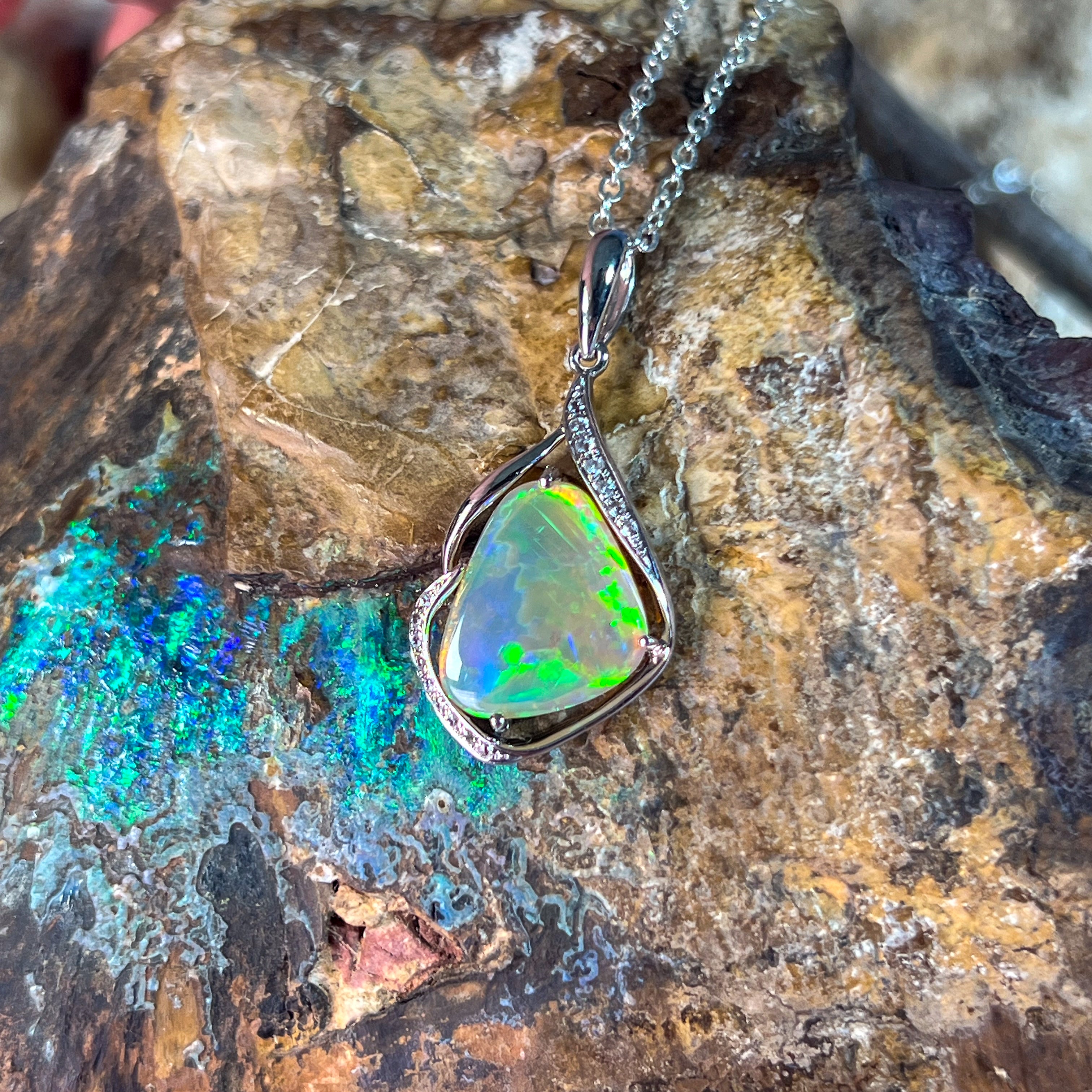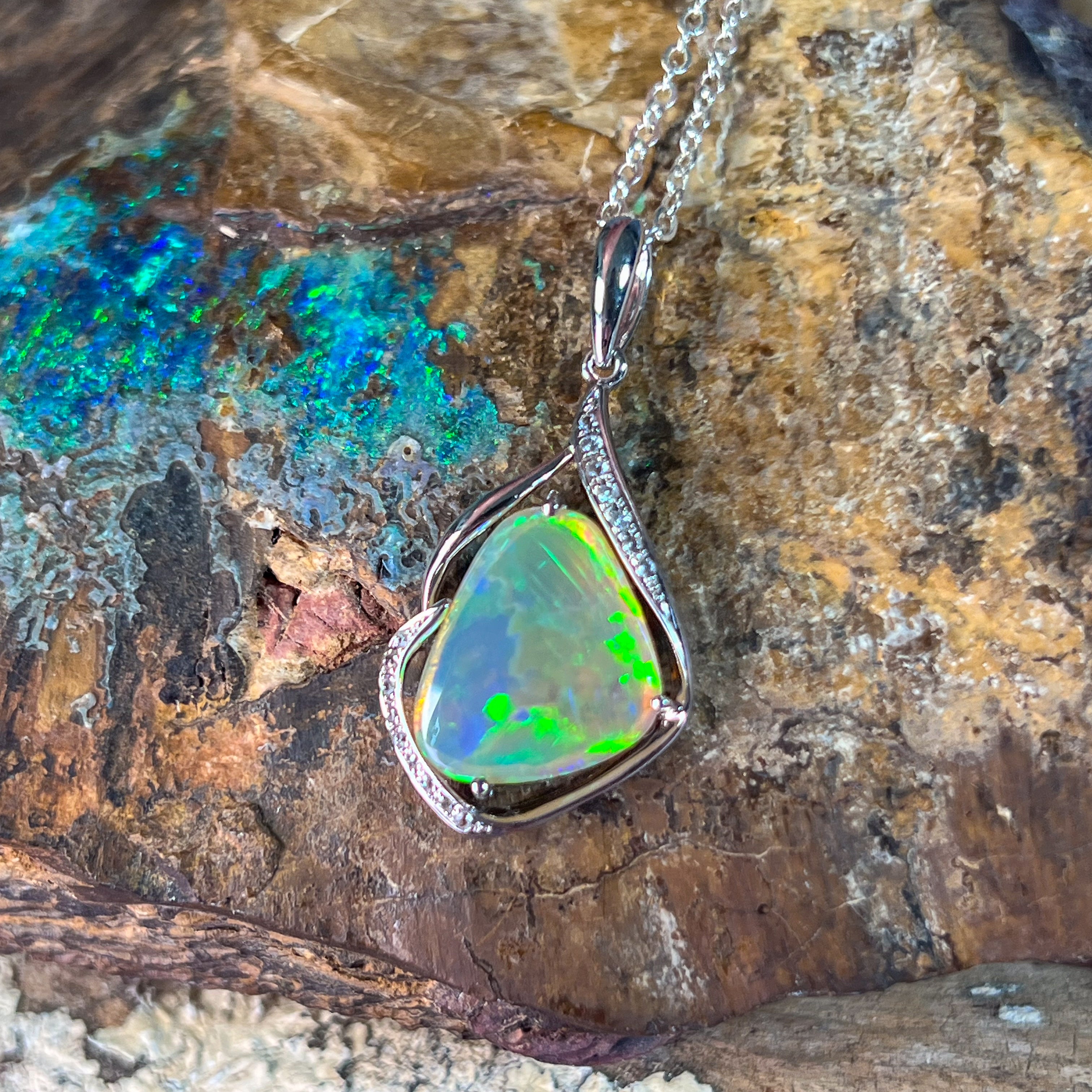 14kt White Gold Crystal Opal 2.77ct and White Sapphires 0.10ct pendant